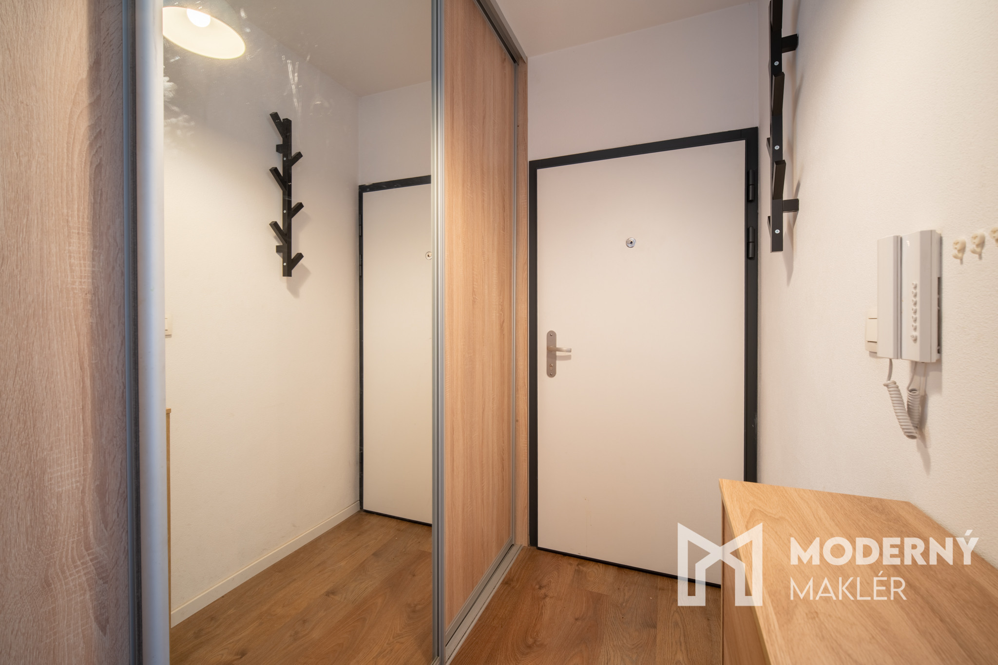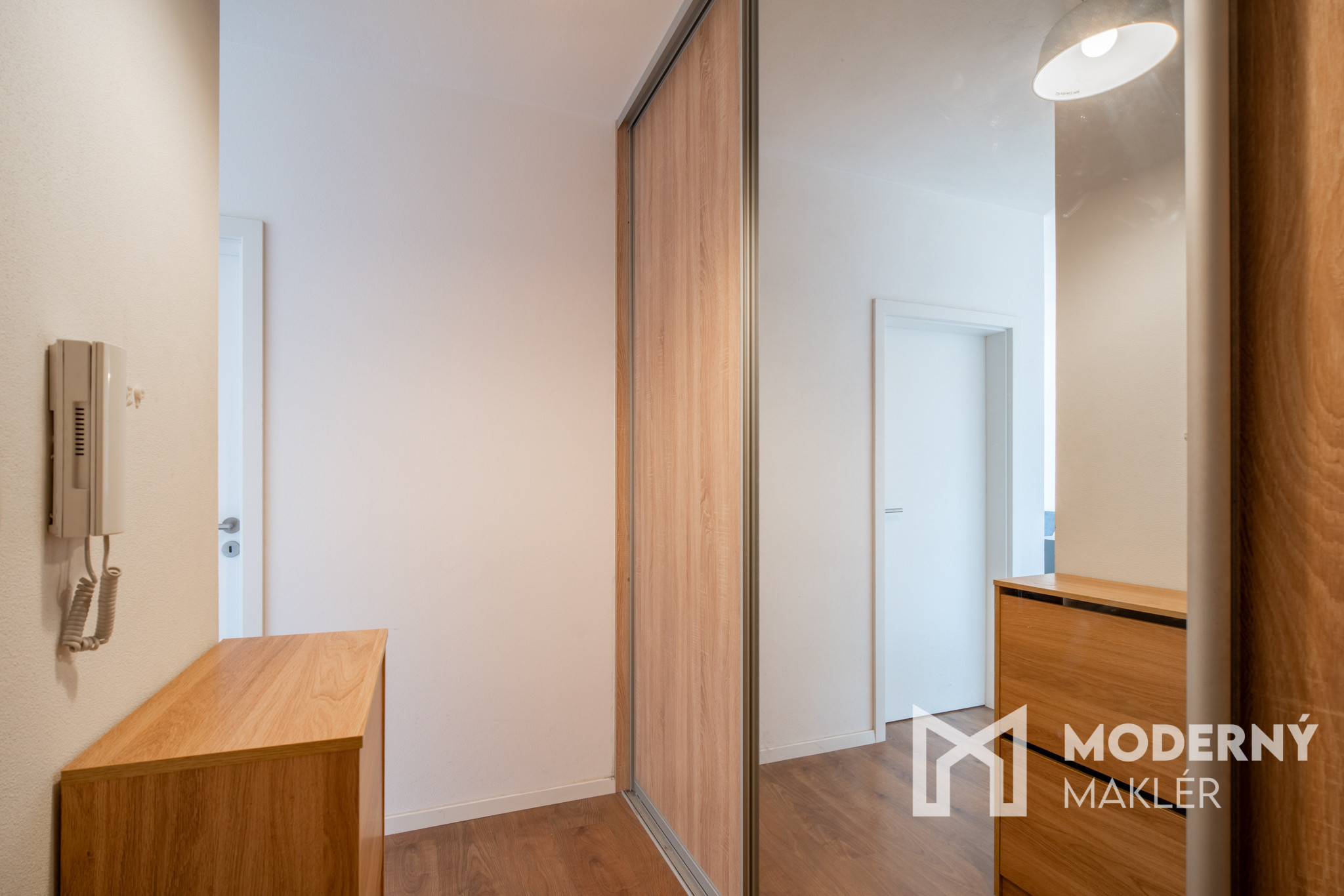 Byt pozostáva z priestrannej vstupnej chodby, ktorá vedie do obývacej miestnosti. Obývacia miestnosť a kuchyňa, orientovaná na juhozápad, poskytuje príjemný priestor na oddych s výstupom na balkón, ktorý ponúka pekný výhľad na okolie. Spálňa má vlastný balkón, ideálny na rannú kávu alebo relax po náročnom dni. Byt dopĺňa praktická kúpeľňa s práčkou, spojená s WC. Rozloženie priestorov vytvára funkčný celok ideálny pre pohodlné bývanie. Bytový dom disponuje výťahom.