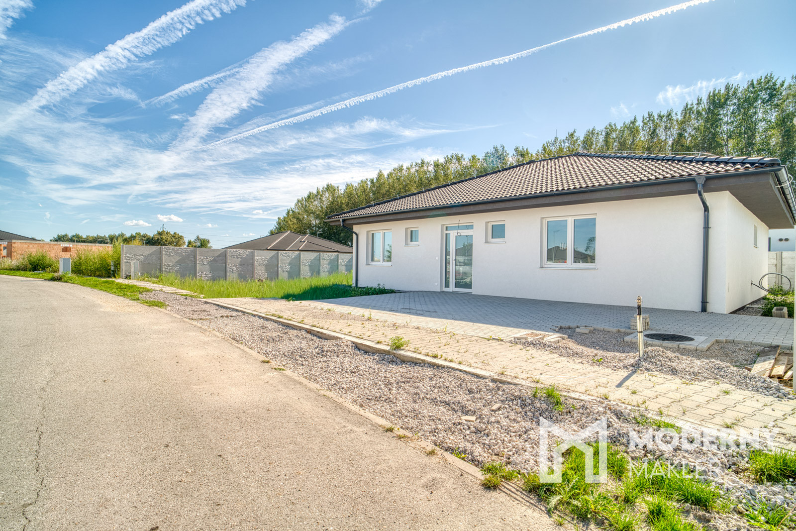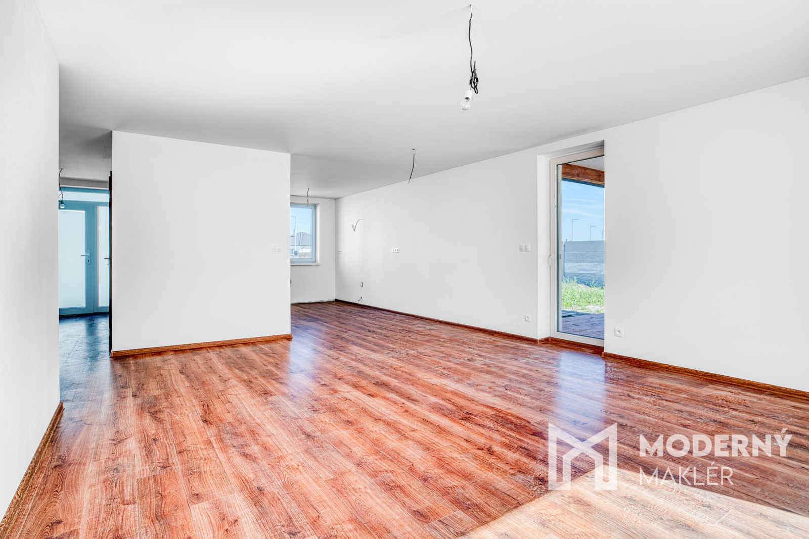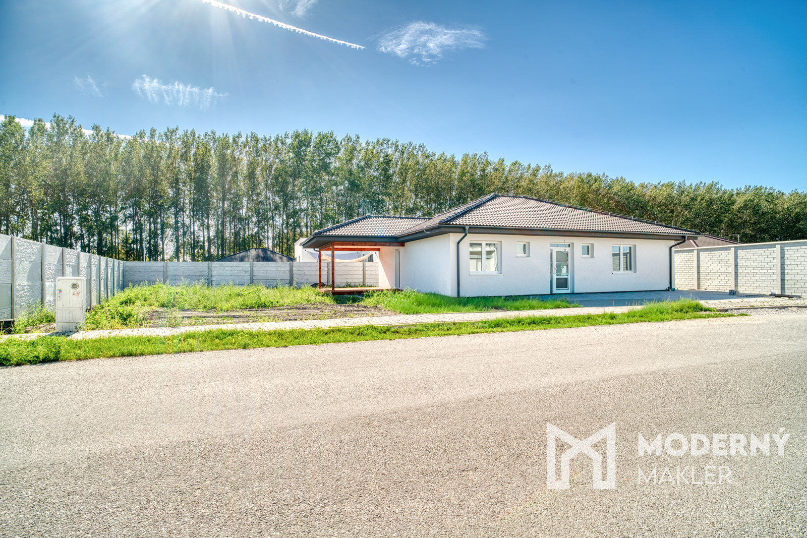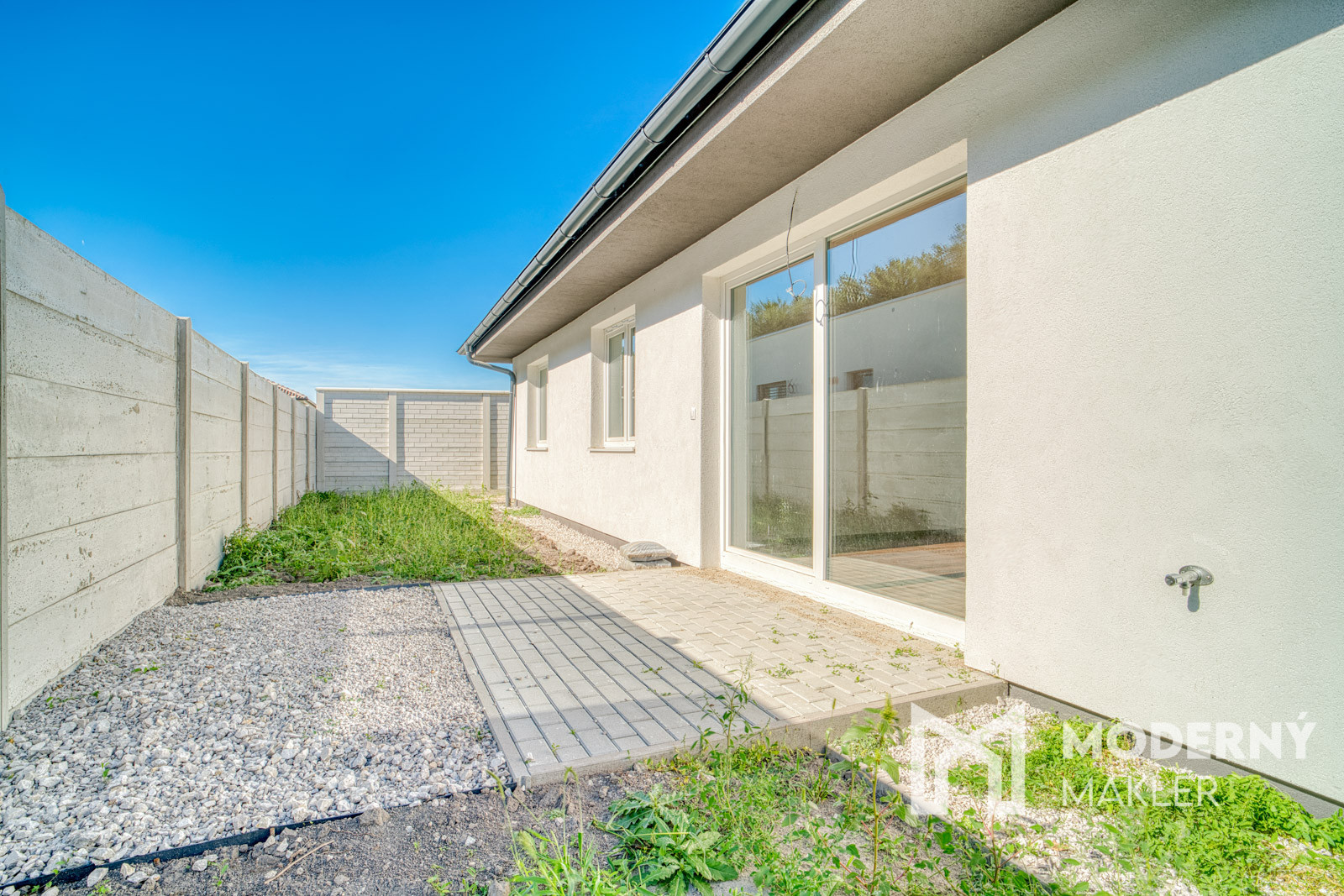 Jedná sa o modernú novostavbu rodinného domu z roku 2025, ktorý sa predáva dokončená v štandarte a ponúka úsporné technické riešenia pre maximálny komfort bývania. Dom je postavený z murovaných tehál s hrúbkou 30 cm a kompletne zateplený 15 cm polystyrénom, čo zabezpečuje vynikajúce tepelno-izolačné vlastnosti a výrazne znižuje prevádzkové náklady. Vykurovanie je riešené moderným tepelným čerpadlom v kombinácii s podlahovým vykurovaním a systémom ohrevu teplej vody, čo garantuje energeticky úspornú prevádzku a nízke náklady na energie. V celom dome sú osadené kvalitné plastové okná s výbornými izolačnými vlastnosťami, ktoré poskytujú dostatočný prísun prirodzeného svetla a zabezpečujú tepelný komfort. Podlahové krytiny sú riešené prakticky a moderne - v kúpeľni je položená dlažba, ktorá sa ľahko udržiava, zatiaľ čo v izbách a ostatných miestnostiach sa nachádza elegantná plávajúca podlaha, ktorá dodáva interiéru moderný a štýlový vzhľad. Dom disponuje aj užitočnou pochôdznou povalou, ktorá slúži ako dodatočný odkladací priestor. Pozemok je oplotený z bočných strán betónovým plotom, pričom z uličnej časti si budúci majiteľ môže vybrať typ oplotenia podľa vlastného vkusu a predstáv. K nehnuteľnosti prislúcha priestranná záhrada s obrovským potenciálom na realizáciu rôznych nápadov, či už ide o oddychovú zónu s terasou a bazénom, detské ihrisko alebo úžitkovú záhradu, a veľkou výhodou je možnosť parkovania pre dva automobily.