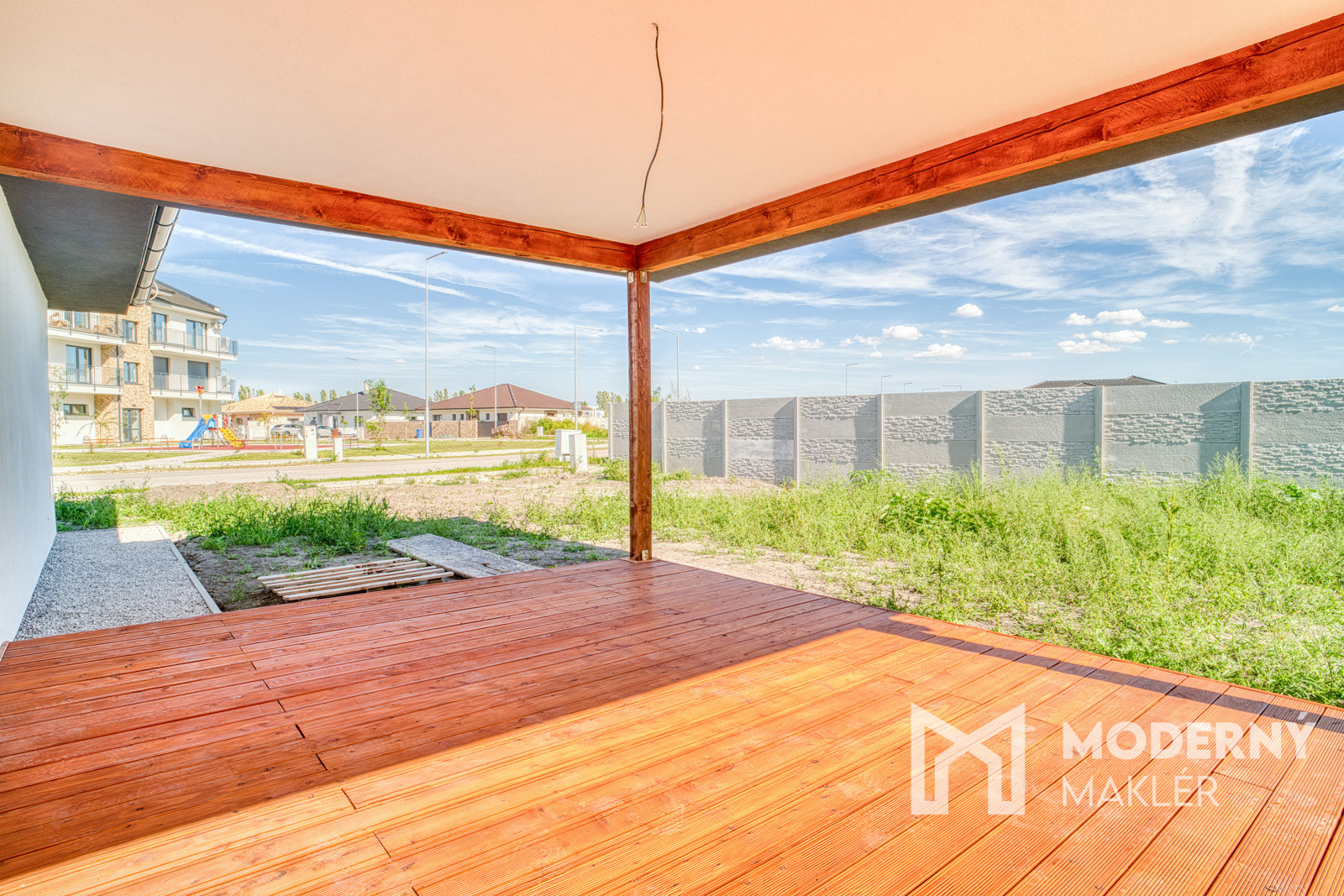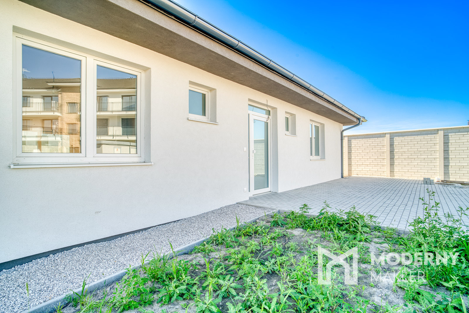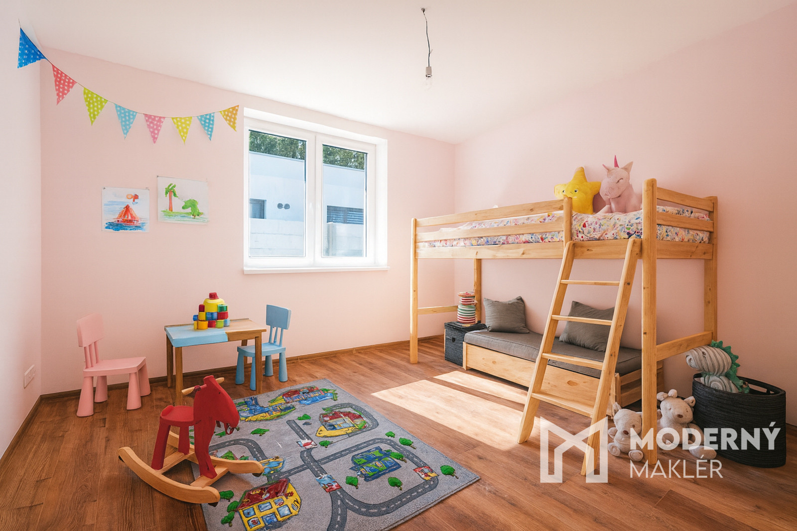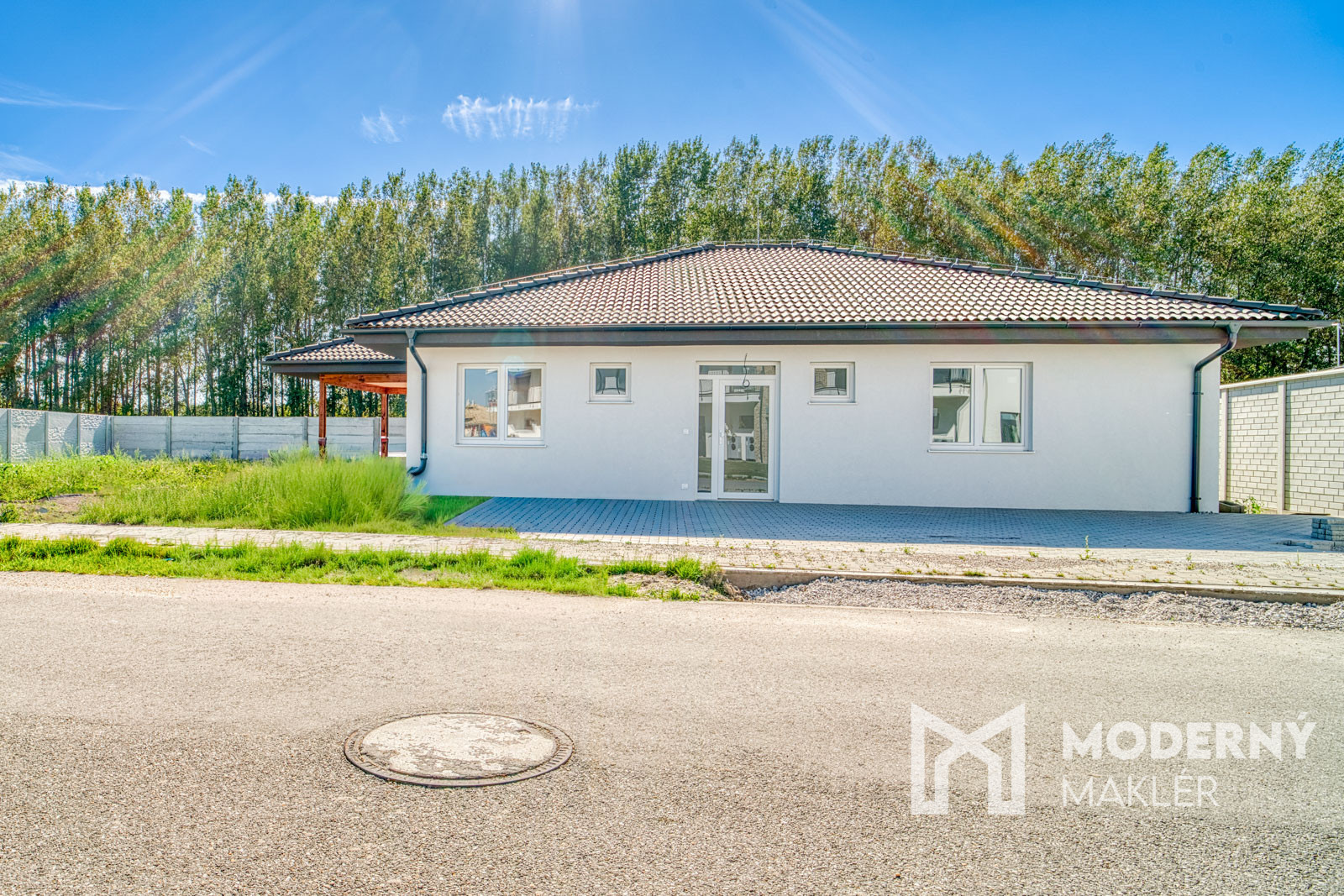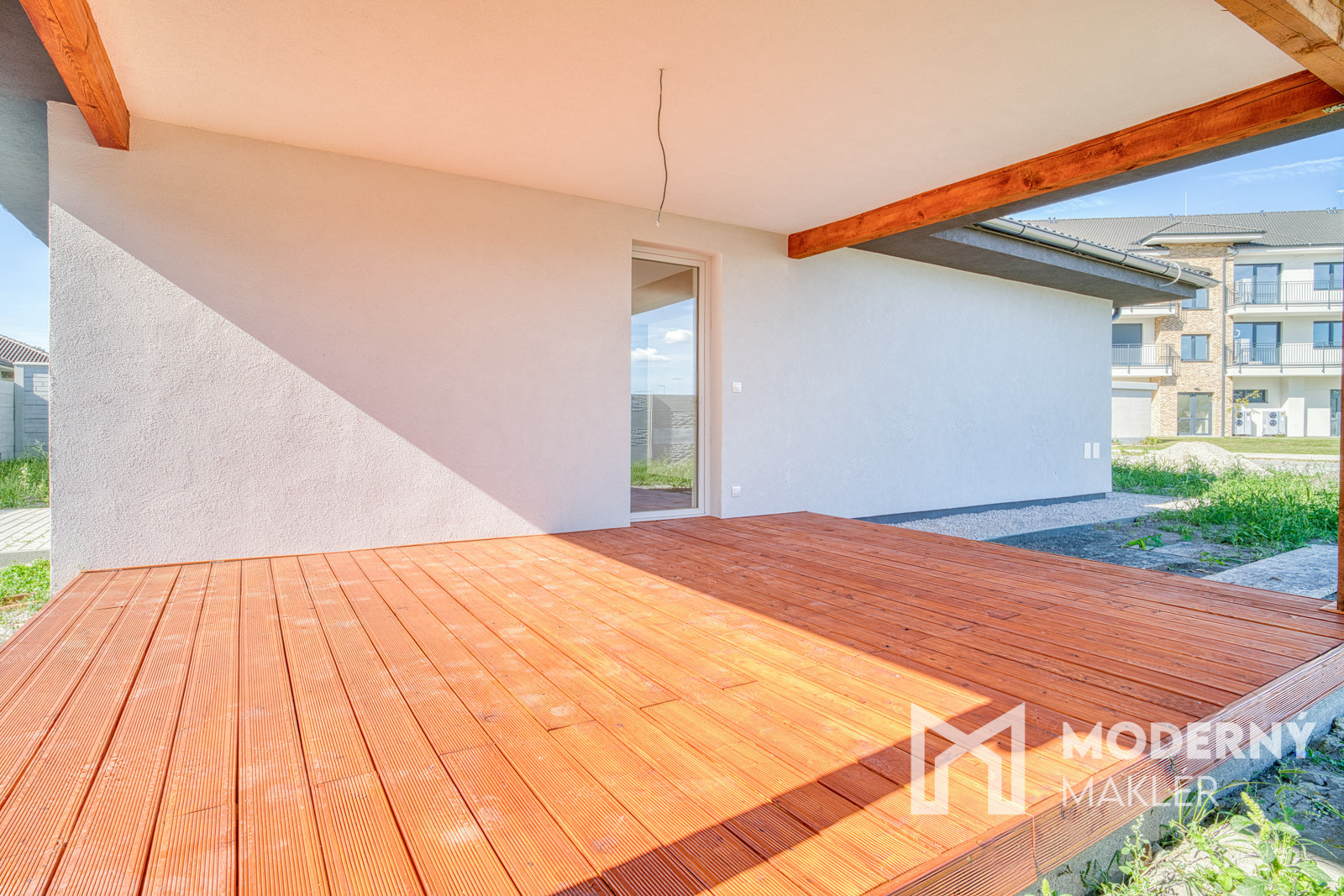 Jedná sa o modernú novostavbu rodinného domu z roku 2025, ktorý sa predáva dokončená v štandarte a ponúka úsporné technické riešenia pre maximálny komfort bývania. Dom je postavený z murovaných tehál s hrúbkou 30 cm a kompletne zateplený 15 cm polystyrénom, čo zabezpečuje vynikajúce tepelno-izolačné vlastnosti a výrazne znižuje prevádzkové náklady. Vykurovanie je riešené moderným tepelným čerpadlom v kombinácii s podlahovým vykurovaním a systémom ohrevu teplej vody, čo garantuje energeticky úspornú prevádzku a nízke náklady na energie. V celom dome sú osadené kvalitné plastové okná s výbornými izolačnými vlastnosťami, ktoré poskytujú dostatočný prísun prirodzeného svetla a zabezpečujú tepelný komfort. Podlahové krytiny sú riešené prakticky a moderne - v kúpeľni je položená dlažba, ktorá sa ľahko udržiava, zatiaľ čo v izbách a ostatných miestnostiach sa nachádza elegantná plávajúca podlaha, ktorá dodáva interiéru moderný a štýlový vzhľad. Dom disponuje aj užitočnou pochôdznou povalou, ktorá slúži ako dodatočný odkladací priestor. Pozemok je oplotený z bočných strán betónovým plotom, pričom z uličnej časti si budúci majiteľ môže vybrať typ oplotenia podľa vlastného vkusu a predstáv. K nehnuteľnosti prislúcha priestranná záhrada s obrovským potenciálom na realizáciu rôznych nápadov, či už ide o oddychovú zónu s terasou a bazénom, detské ihrisko alebo úžitkovú záhradu, a veľkou výhodou je možnosť parkovania pre dva automobily.