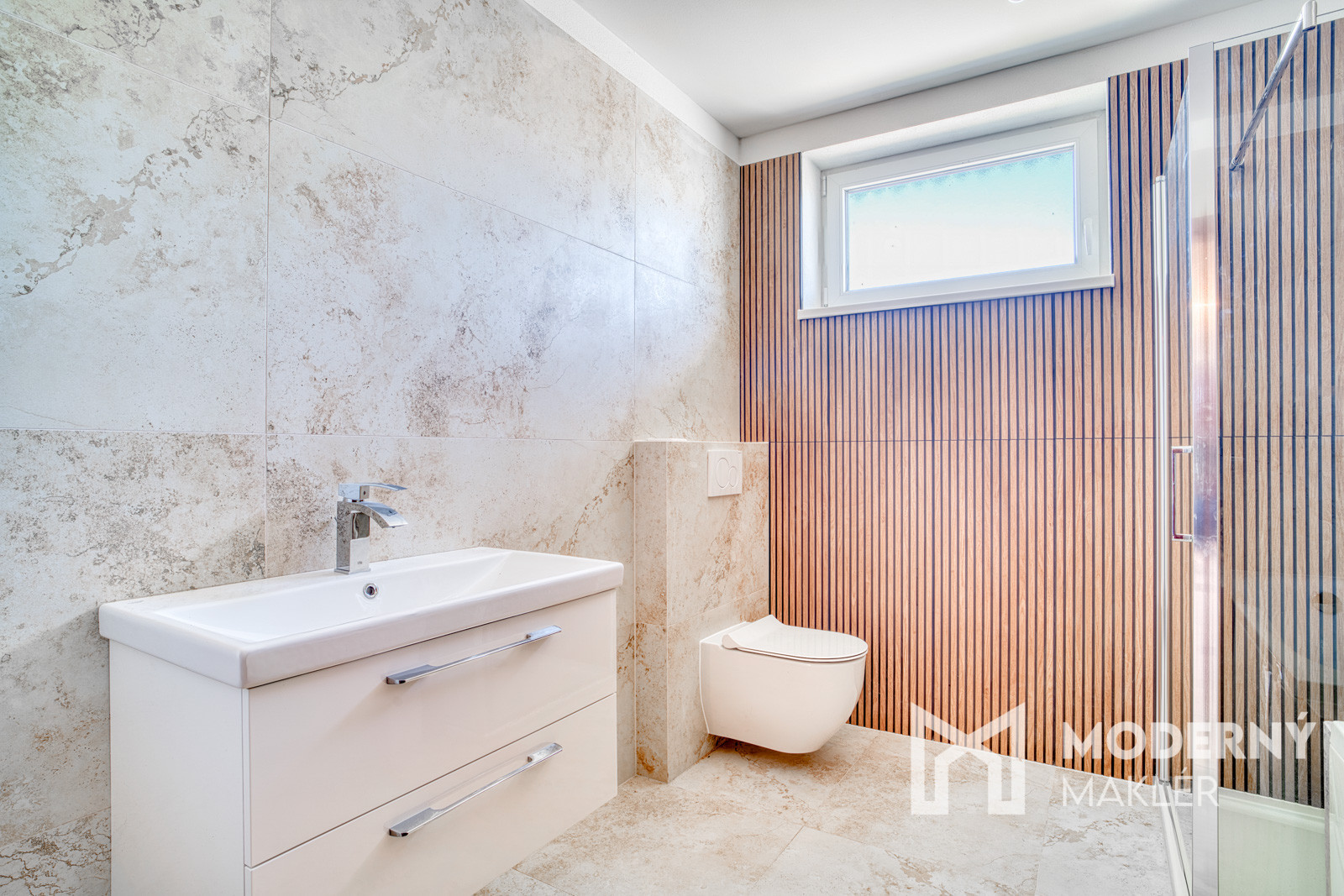 Moderný maklér ponúka na predaj štýlový 4-izbový rodinný dom, nachádzajúci sa v atraktívnej časti Dunajskej Stredy – na Kaplnskej ulici. Ide o novostavbu, ktorá spája moderný dizajn, funkčné dispozičné riešenie a pohodlie mestského bývania. Medzi výrazné výhody patrí súkromné parkovanie pre dve autá priamo na pozemku a bezprostredná blízkosť obľúbeného THERMALPARKU DS, čo robí túto nehnuteľnosť ešte atraktívnejšou pre rodinné bývanie aj ako investičnú príležitosť. Pokojná lokalita, nová výstavba a kompletná občianska vybavenosť v dosahu sú zárukou harmonického bývania pre každého, kto hľadá rovnováhu medzi súkromím a dostupnosťou služieb.