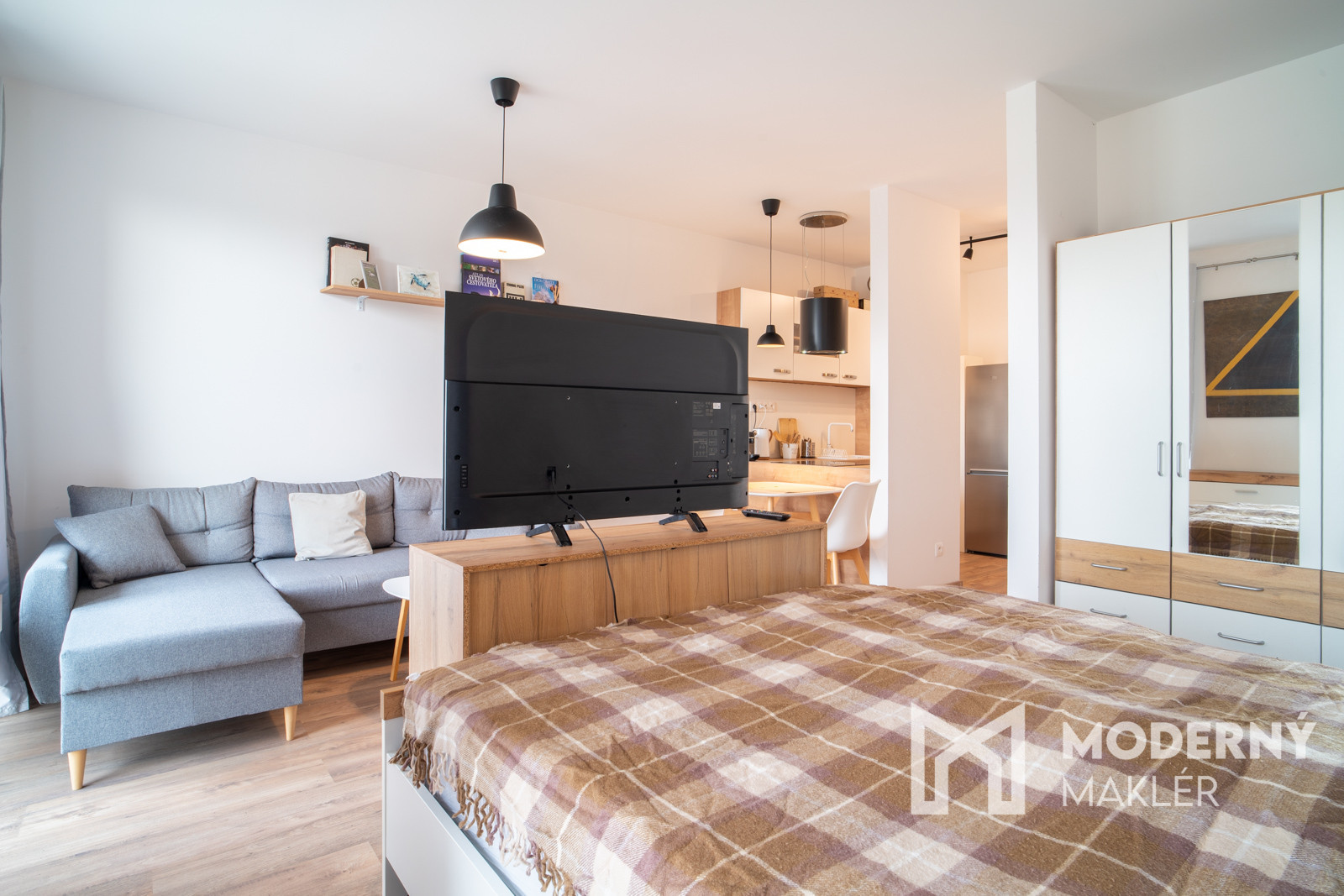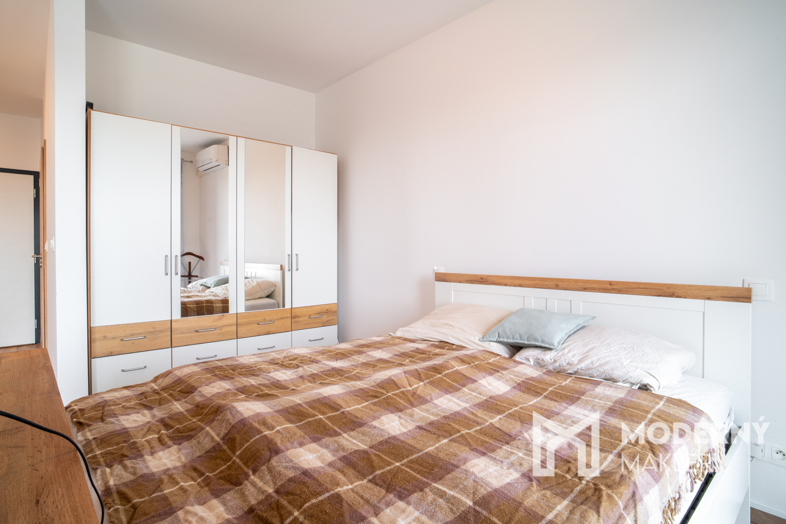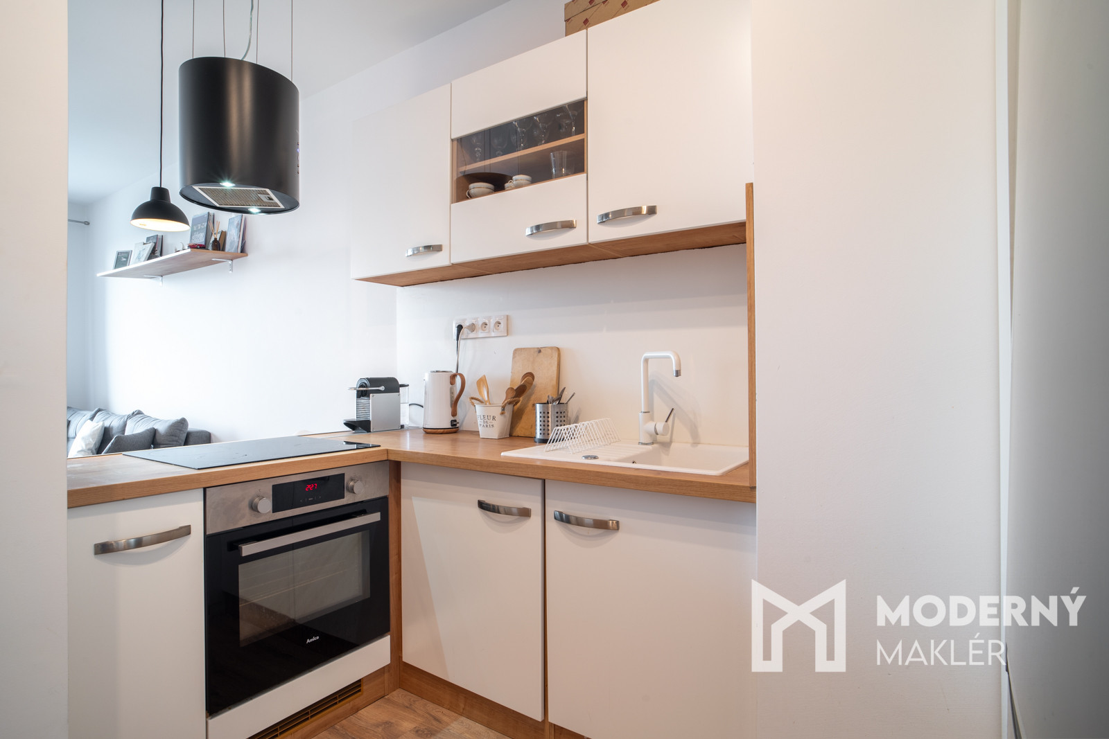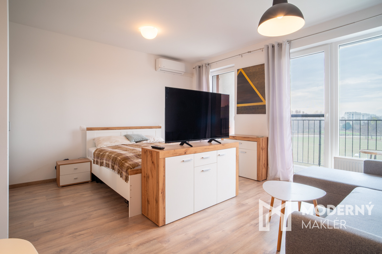 Moderný maklér ponúka na prenájom štýlový 1,5-izbový byt v bratislavskej Petržalke, v obľúbenej štvrti Slnečnice. Byt je kompletne zariadený a vybavený modernou kuchynskou linkou so spotrebičmi, útulnou obývacou časťou a plne vybavenou spálňou.