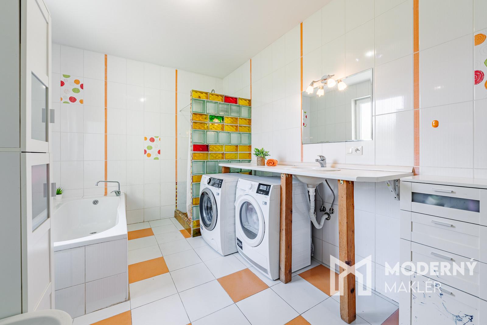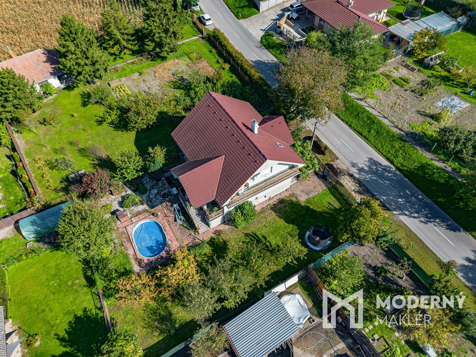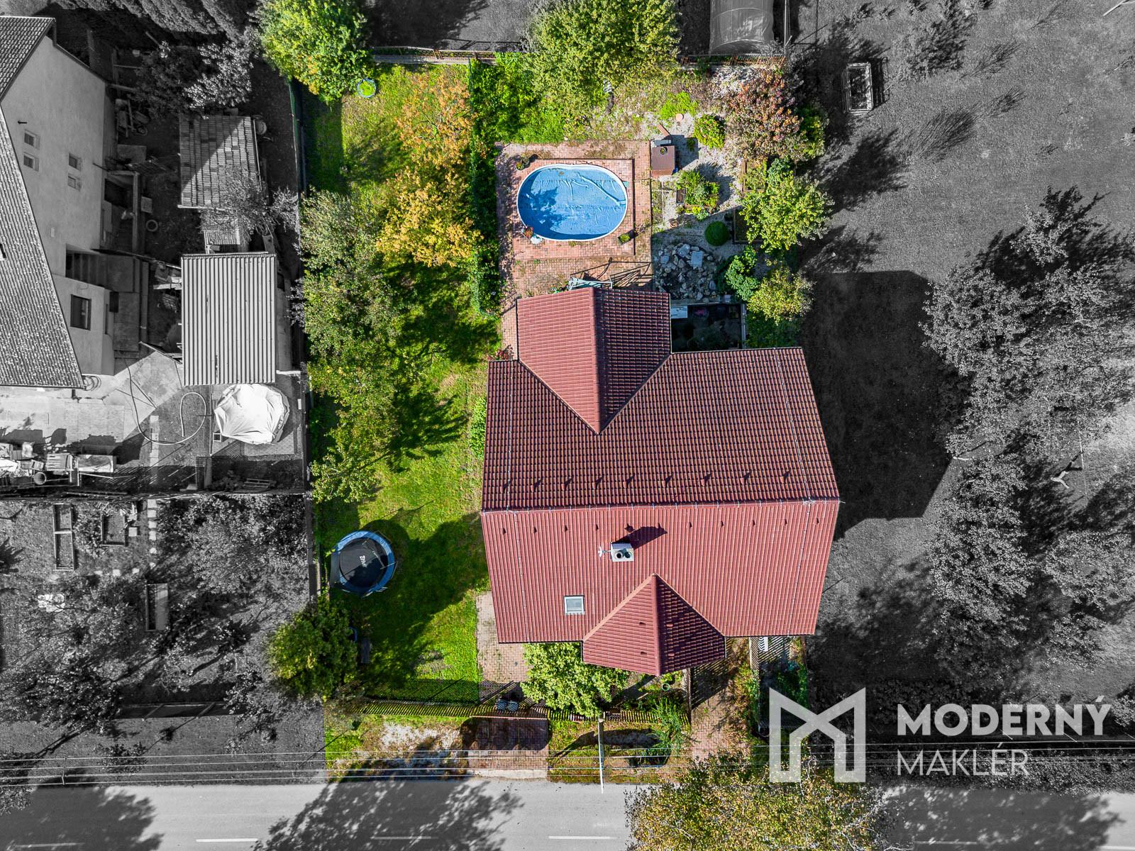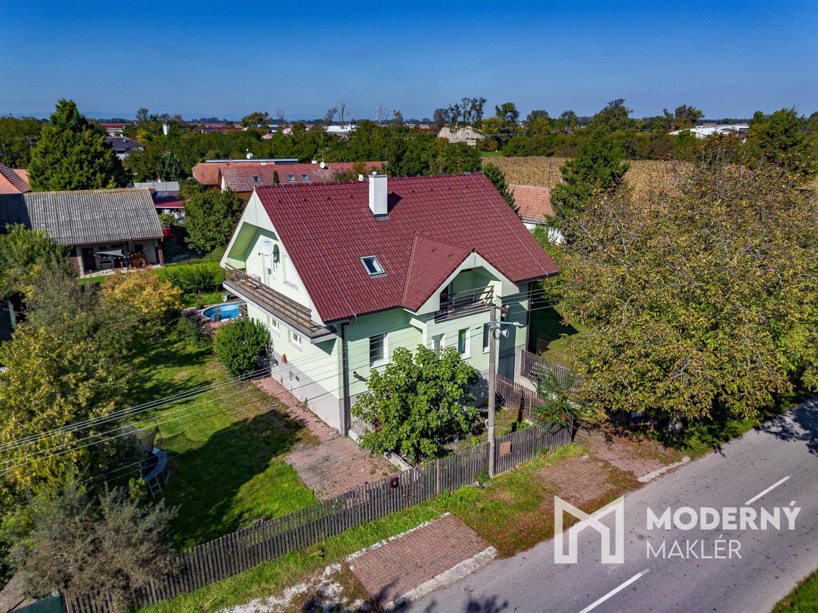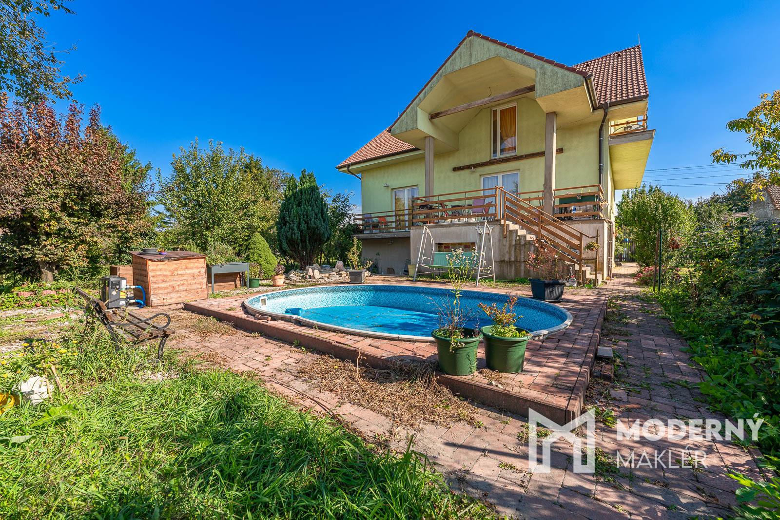 Nehnuteľnosť sa nachádza v pôvodnom, ale funkčnom stave a je postavená z kvalitných ITONG tehál, ktoré zabezpečujú výbornú tepelnú izoláciu a energetickú efektívnosť. Strecha je pokrytá kvalitnou Bramac krytinou, ktorá zaručuje dlhodobú ochranu pred poveternostnými vplyvmi. V celom dome sú osadené plastové okná, ktoré poskytujú dobré tepelno-izolačné vlastnosti a znižujú prevádzkové náklady. Vykurovanie je riešené moderným teplovodným podlahovým systémom v kombinácii s namontovaným tepelným čerpadlom, čo zabezpečuje efektívne a ekonomické vykurovanie celého objektu. Zásobovanie vodou je dvojité - vlastná studňa doplnená obecnou vodou, čo poskytuje spoľahlivé zásobovanie. Zariadenie domu zostáva podľa dohody s kupujúcimi. K domu patrí vonkajší bazén s filtračným systémom, ktorý zvyšuje komfort bývania a poskytuje možnosť relaxácie. Pozemok je osadený ovocnými stromami a okrasnými drevinami, ktoré vytvárajú príjemné prostredie. Celá nehnuteľnosť má podpivničenie, pričom pivnica ponúka využitie na hobby aktivity alebo ako dielňa podľa potrieb majiteľa.