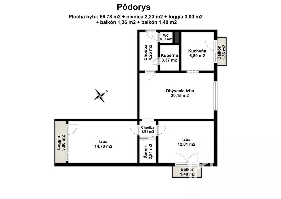 Skvelá dispozícia bytu vás určite zaujme - ponúka samostatnú kuchyňu s balkónom, oddelenú nočnú zónu s ďalším balkónom a loggiou. S orientáciou na tri svetové strany Vám zabezpečí dostatok denného svetla a slnka počas celého dňa.