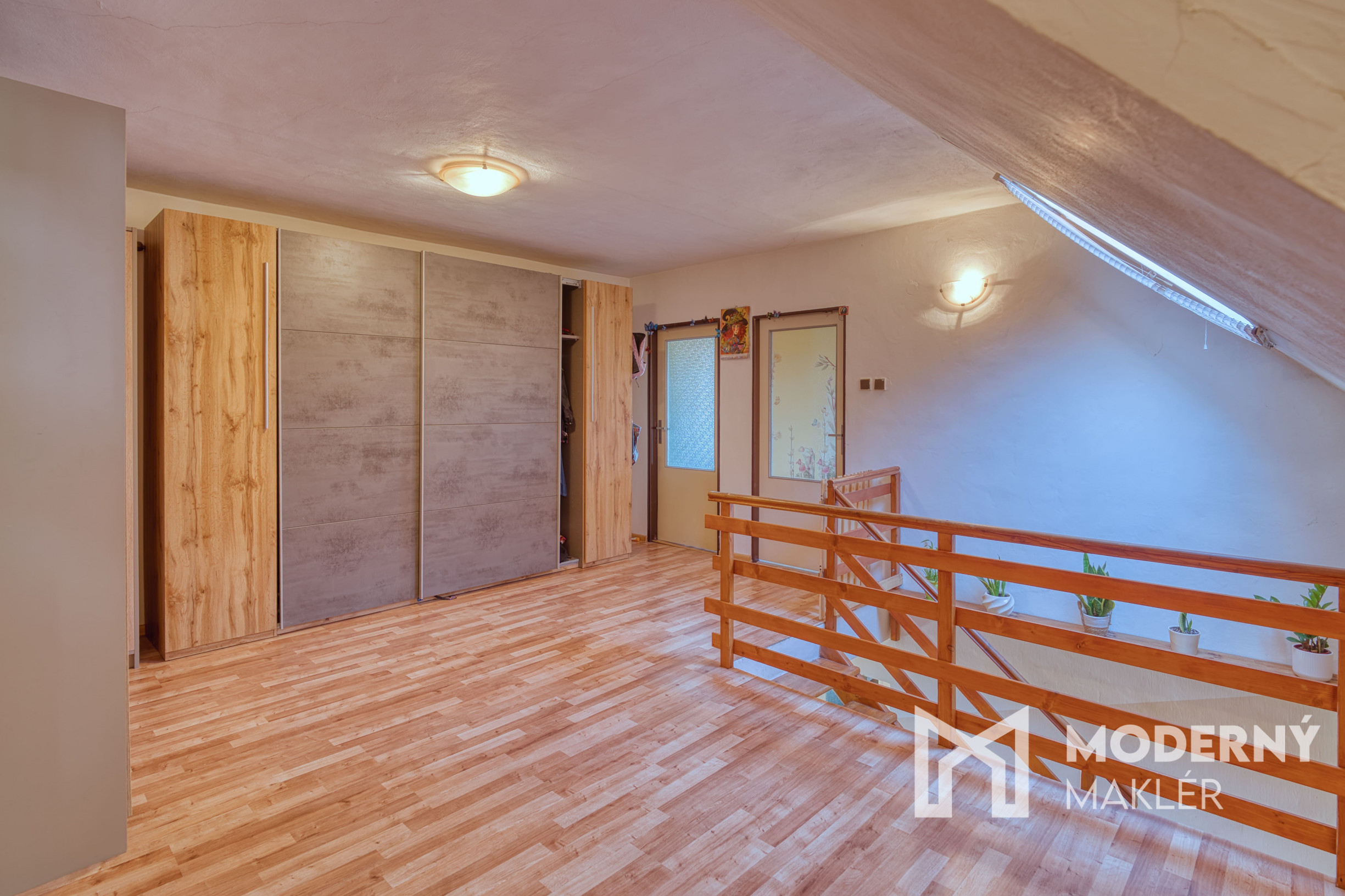 Podkrovie ponúka ďalšie obytné možnosti s detskou izbou, samostatnou izbou, praktickou povalou slúžiacou ako úložný priestor, chodbou, skladom a kúpeľňou. Nehnuteľnosť má výhodnú orientáciu juhozápad - západoseverozápad, čo zabezpečuje príjemné prirodzené osvetlenie počas dňa. Na pozemku sú vysadené ovocné stromy - hruška, jabloň ,broskyne, marhule, čerešne a rôzne kry bobulovitého ovocia.