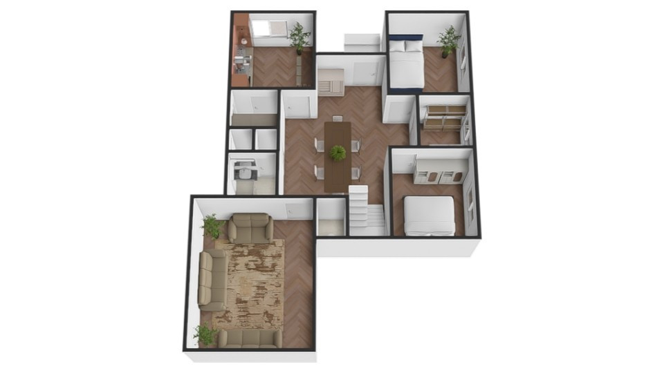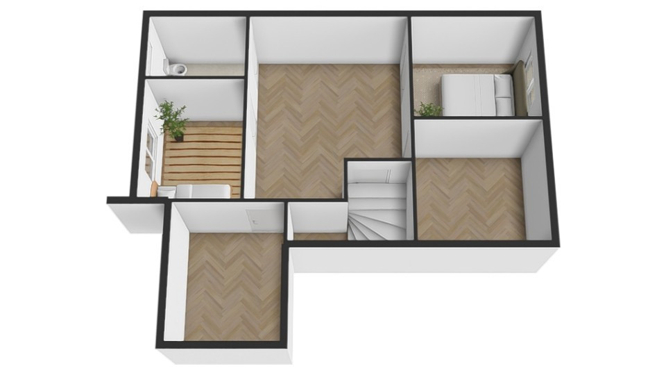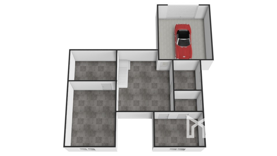 Dom sa rozprestiera na troch podlažiach s hlavným vstupom cez schodisko pred budovou. Prvé nadzemné podlažie tvorí vstupná hala, z ktorej sa dostanete do všetkých miestností. Nachádza sa tu hlavná spálňa, detská izba a priestranná obývacia izba s výstupom na terasu. Ďalej nájdete prakticky riešenú kuchyňu, kúpeľňu, samostatné WC a sklad potravín. Z tohto podlažia máte priamy prístup na terasu, ktorá rozširuje obytný prostor. Suterén je prístupný buď samostatným vonkajším vstupom cez garáž, alebo z prvého nadzemného podlažia cez vnútorné schodisko. V suteréne sa nachádza garáž, praktická dielňa, chodba, sklad potravín, práčovňa, kotolňa a sklad uhlia, čo zabezpečuje dostatočné úložné a technické zázemie domu.