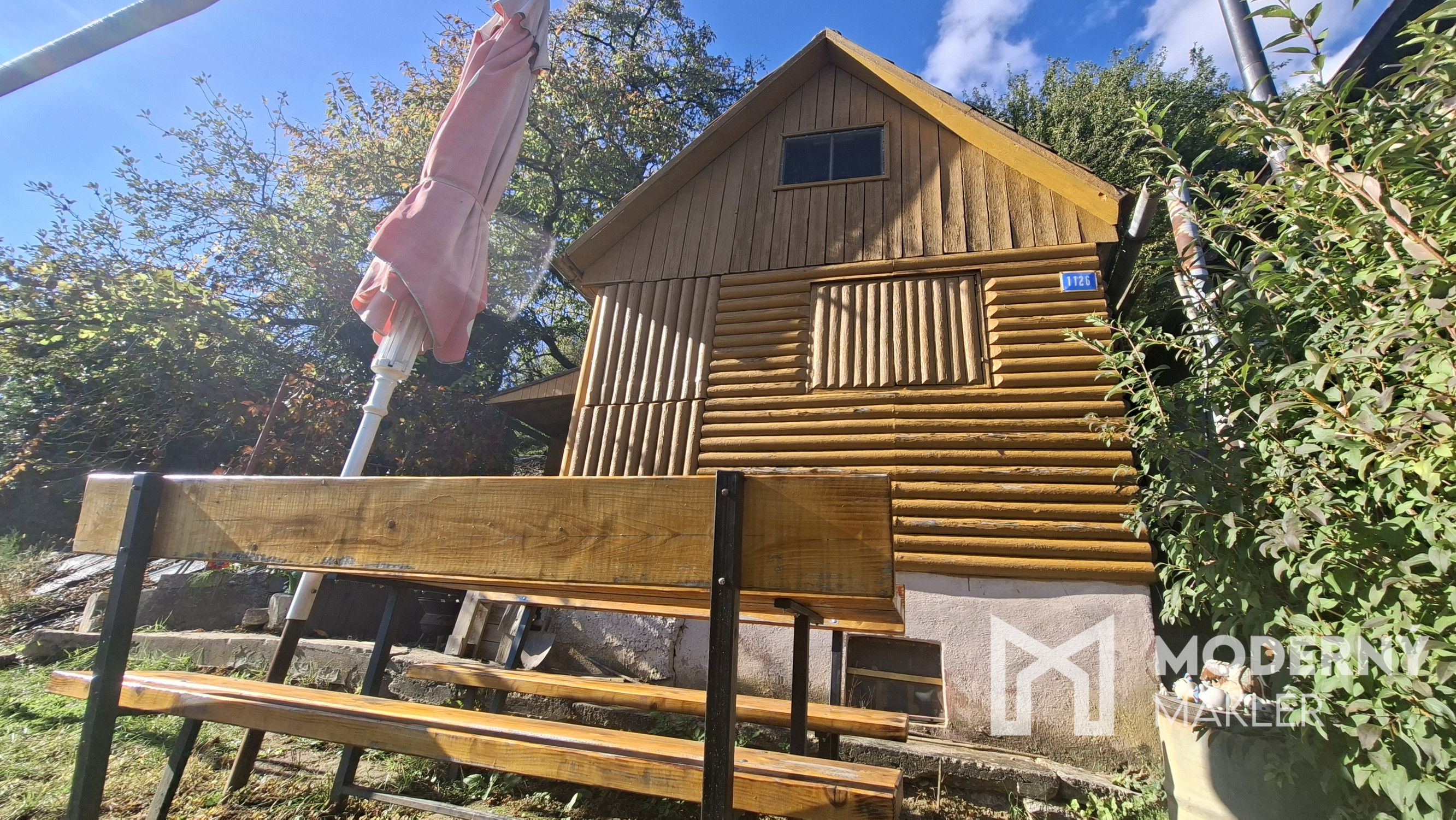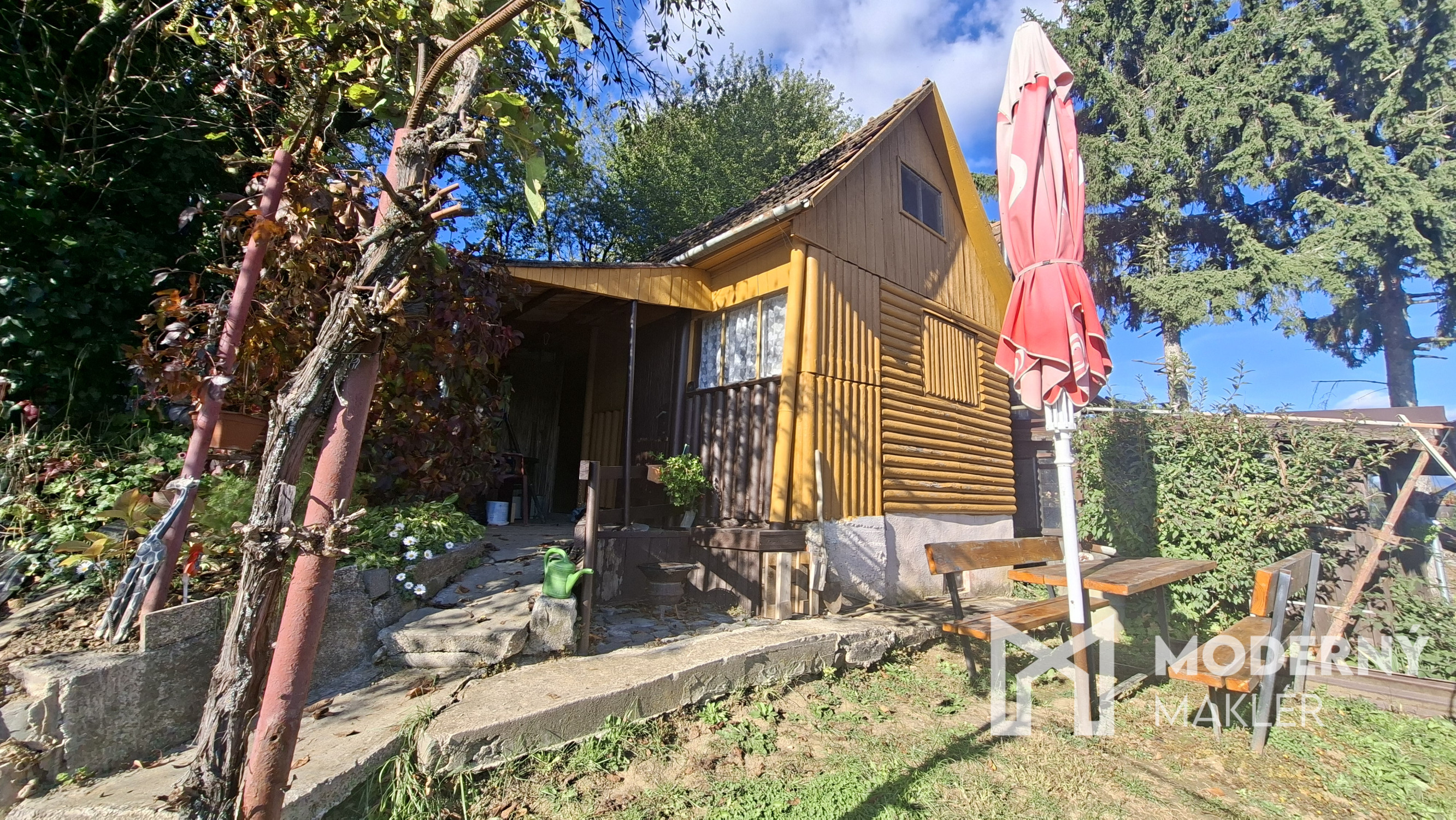 Drevená záhradná chatka pozostáva z predsiene a hlavnej obytnej miestnosti, ktoré spoločne vytvárajú útulný priestor pre víkendový oddych či sezónne bývanie. Súčasťou chatky je aj priestranná prestrešená terasa, ktorá rozširuje obytný priestor smerom do exteriéru a poskytuje ideálne miesto na relaxáciu s výhľadom do záhrady. Chatka je celá podpivničená a ponúka aj praktickú miestnosť na odkladanie záhradného náradia a náčinia. Ďalší úložný priestor sa nachádza pod strechou objektu. Nehnuteľnosť obklopuje kaskádovitá záhrada s vysadenými ovocnými stromami, ktorá vytvára pokojné a príjemné prostredie s možnosťou pestovania vlastného ovocia alebo len tichého oddychu v súlade s prírodou.