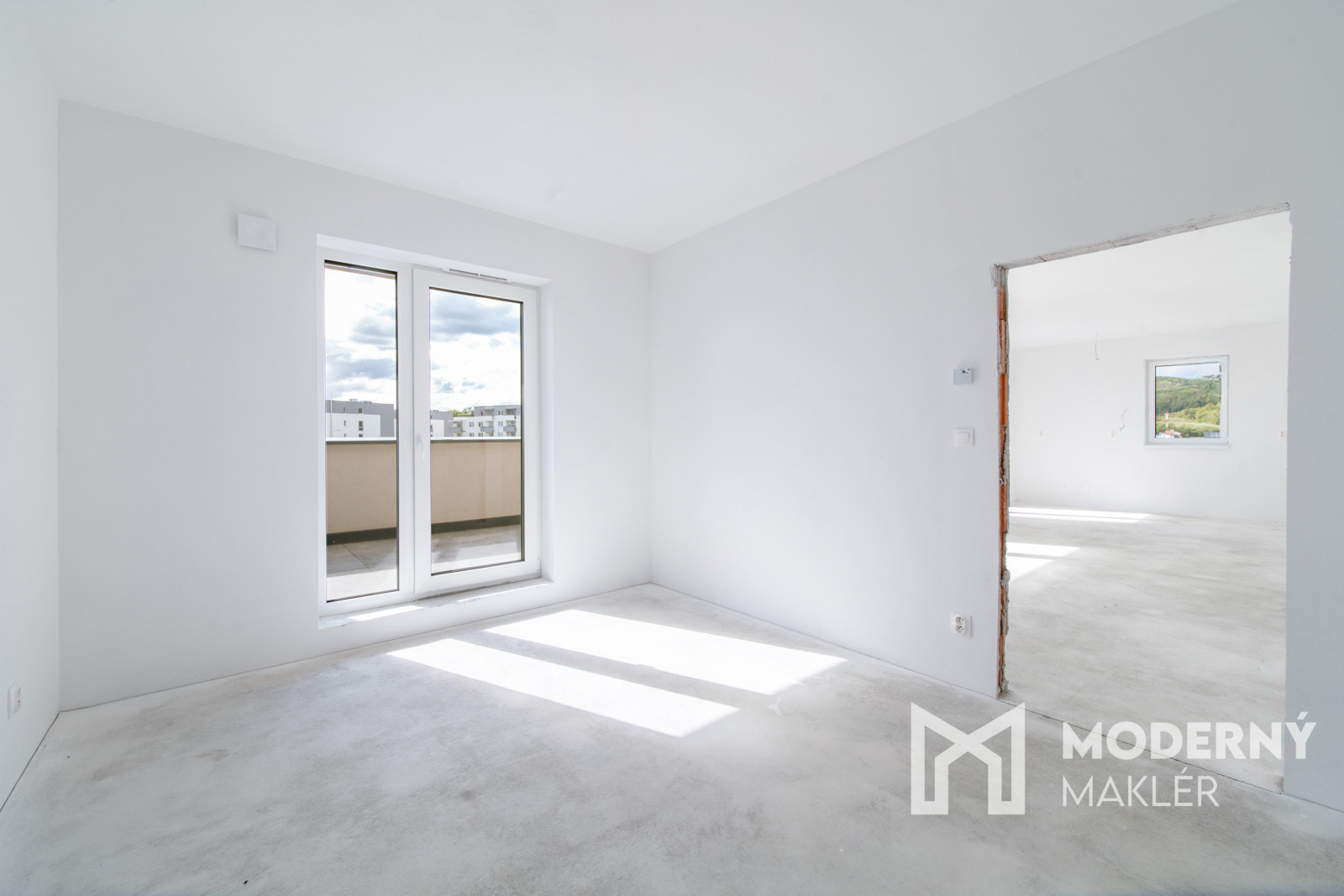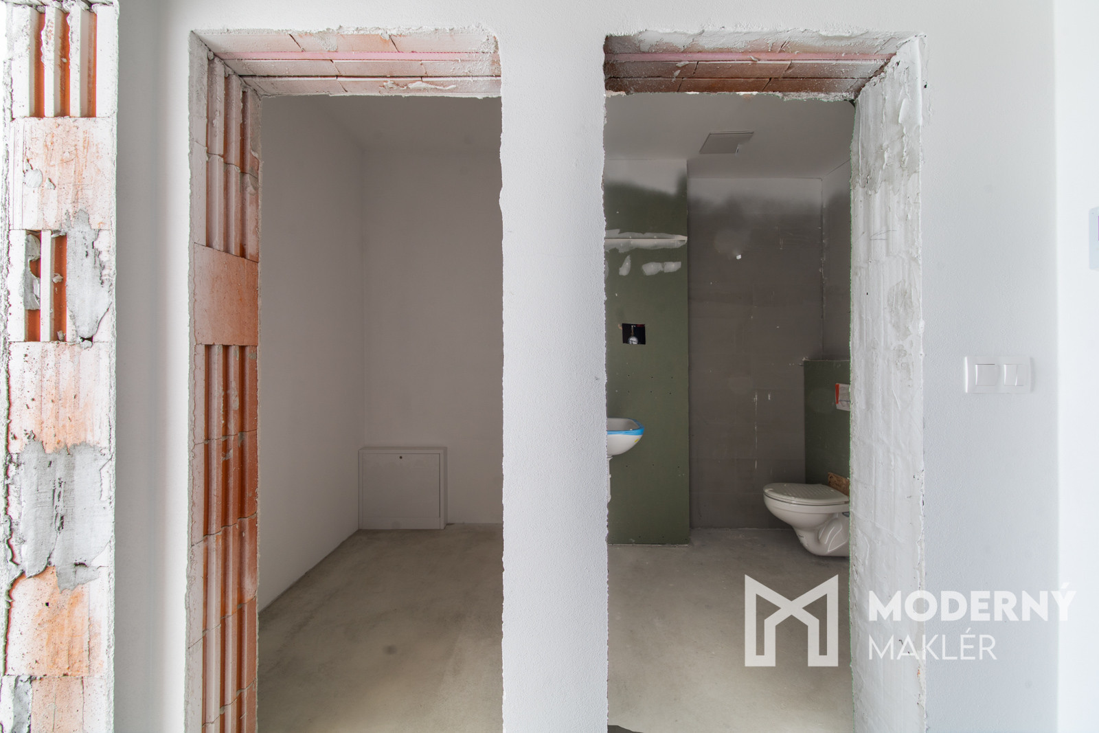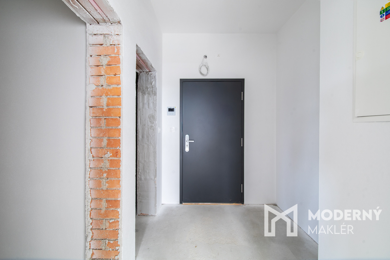 Byt sa skladá z priestrannej vstupnej chodby, ktorá ponúka bohatý úložný priestor s možnosťou umiestnenia závesného systému, botníka a sedenia. Po pravej strane chodby sa nachádza kúpeľňa a samostatné WC. Z chodby je priamy vstup do spálne s výstupom na balkón, do detskej izby a do spojeného kuchynsko-obývačkového priestoru s výstupom na balkón. Obytný priestor má juho-západnú orientáciu, čo zabezpečuje príjemné denné osvetlenie.