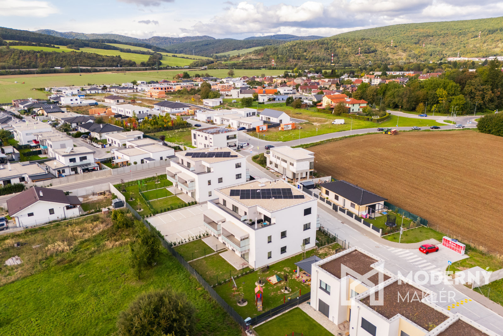 Výnimočná lokalita a strategické umiestnenie projektu zabezpečuje maximálny komfort pre moderné bývanie s nádhernými výhľadmi na okolitú prírodu, lesy a rozľahlé lúky, ktoré vytvárajú pokojné a harmonické prostredie pre celú rodinu. Obyvatelia si môžu vychutnať exkluzívne vybavenie priamo v areáli komplexu, ktoré zahŕňa modernú zónu pre vonkajšie cvičenie a fitness aktivity, bezpečne oplotené detské ihrisko s posedením a priestorom špeciálne navrhnutým pre spoločné akcie, susedské stretnutia a grilovačky, pričom všetky tieto služby sú určené výlučne pre obyvateľov komplexu. Strategická poloha ponúka výbornú dopravnú dostupnosť s rýchlym napojením na diaľničný navádzač D1, čo umožňuje pohodlné cestovanie do širšieho regiónu, zatiaľ čo rýchla dostupnosť do centra mesta Trenčín, nákupných centier, potravín, materských škôlok, základných škôl a zastávok mestskej hromadnej dopravy zabezpečuje všetku potrebnú občiansku vybavenosť v bezprostrednej blízkosti.