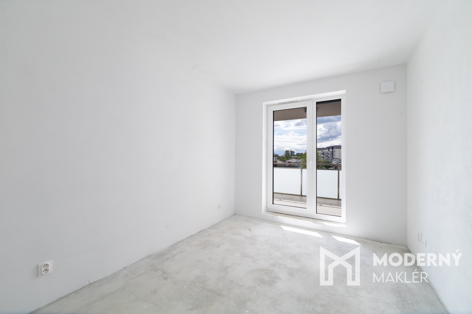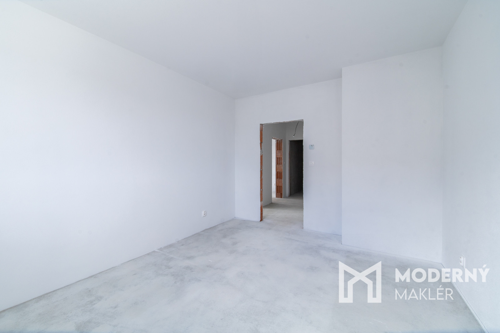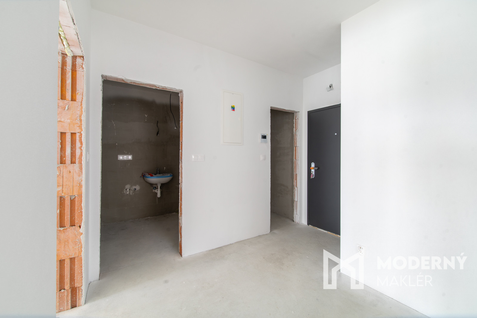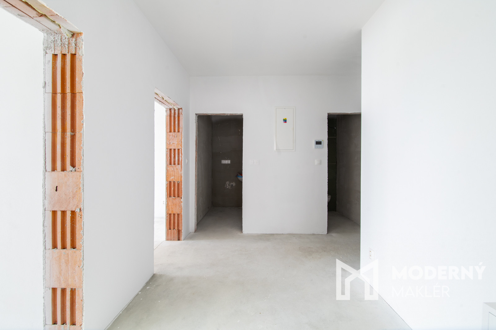 Byt sa skladá z priestrannej vstupnej chodby, ktorá ponúka bohatý úložný priestor s možnosťou umiestnenia závesného systému, botníka a sedenia. Po pravej strane chodby sa nachádza kúpeľňa a samostatné WC. Z chodby je priamy vstup do spálne s výstupom na balkón, do detskej izby a do spojeného kuchynsko-obývačkového priestoru s výstupom na balkón. Obytný priestor má juho-západnú orientáciu, čo zabezpečuje príjemné denné osvetlenie.