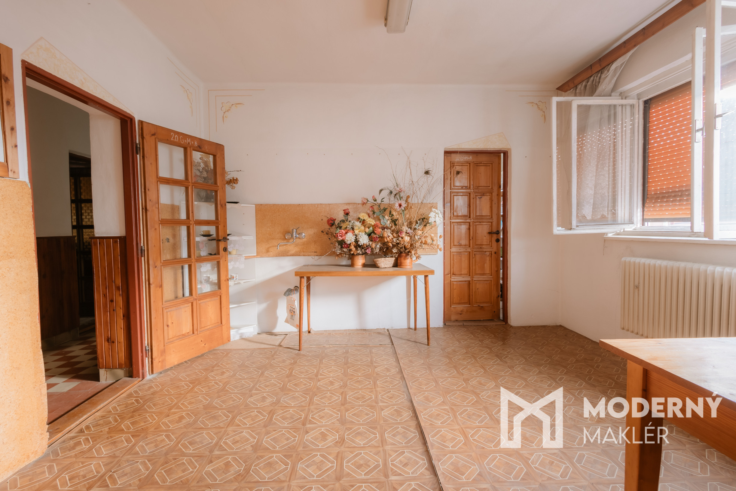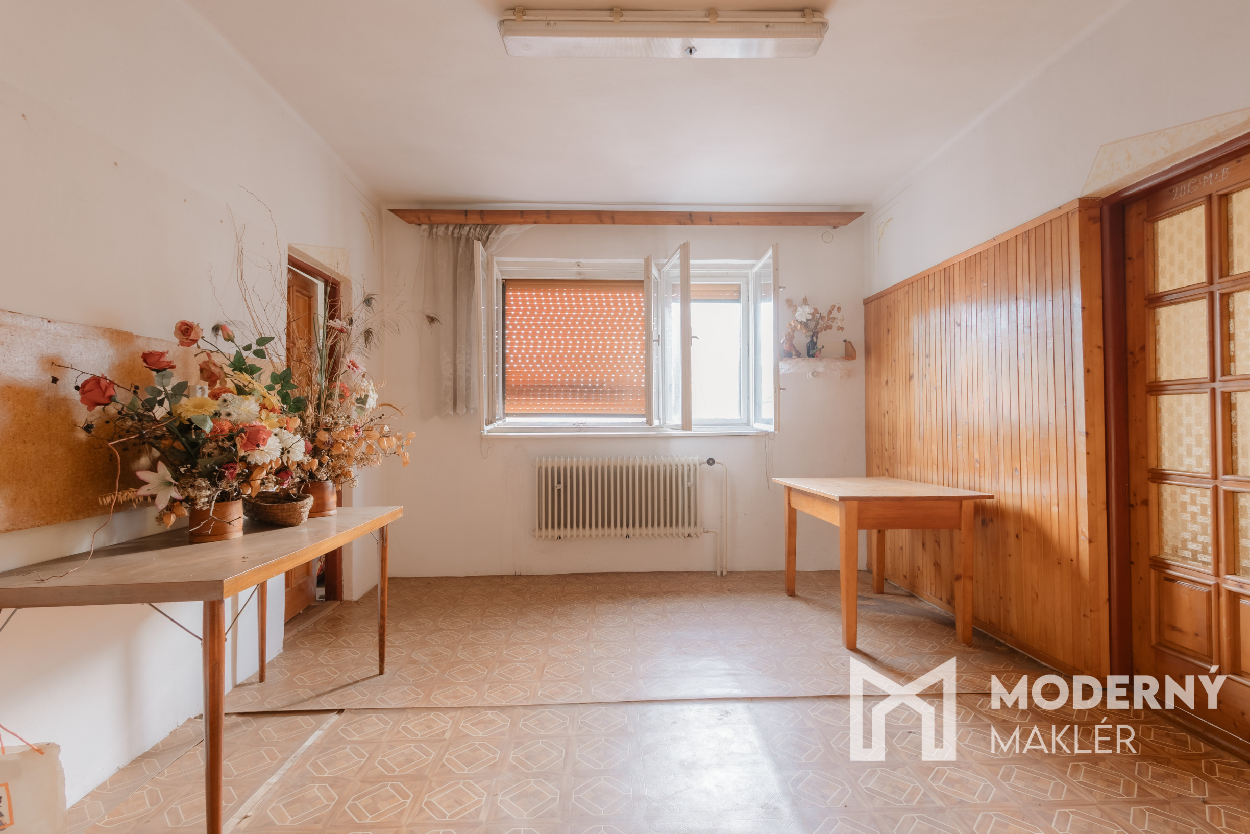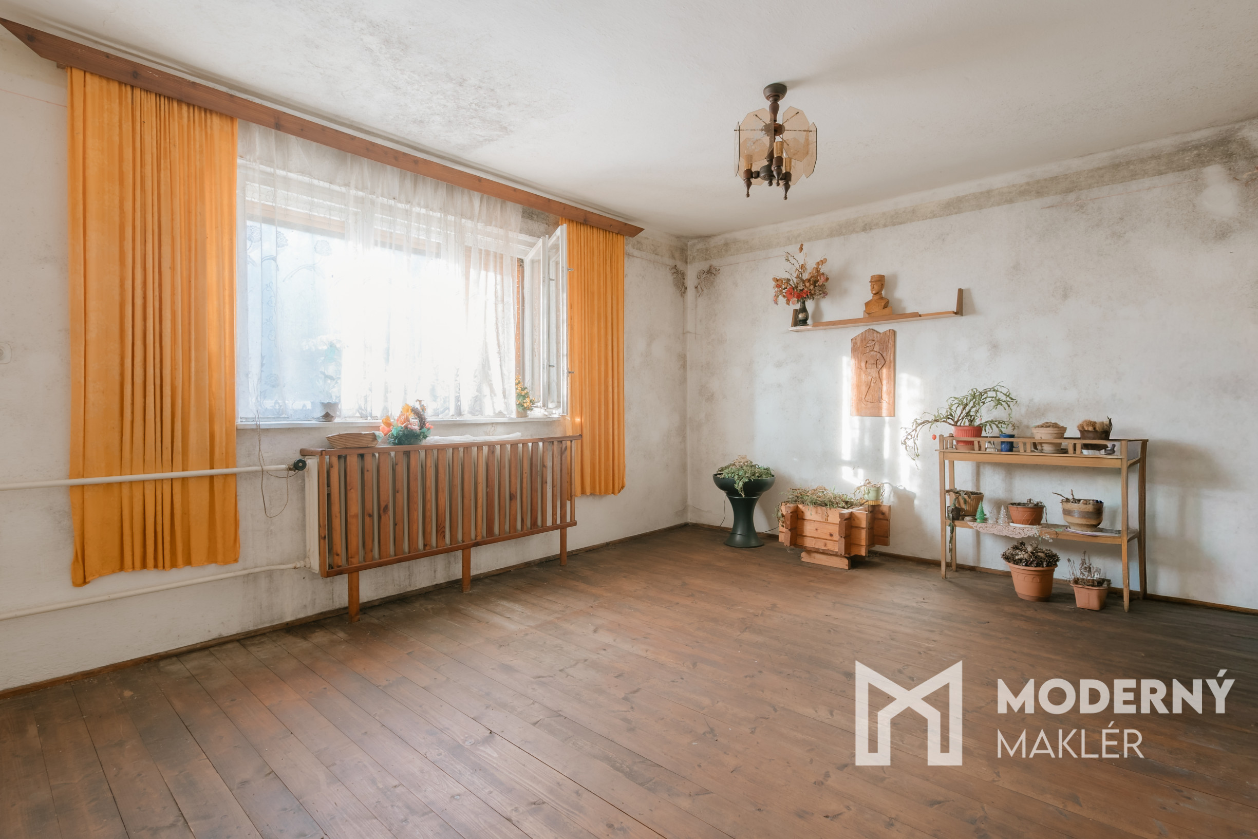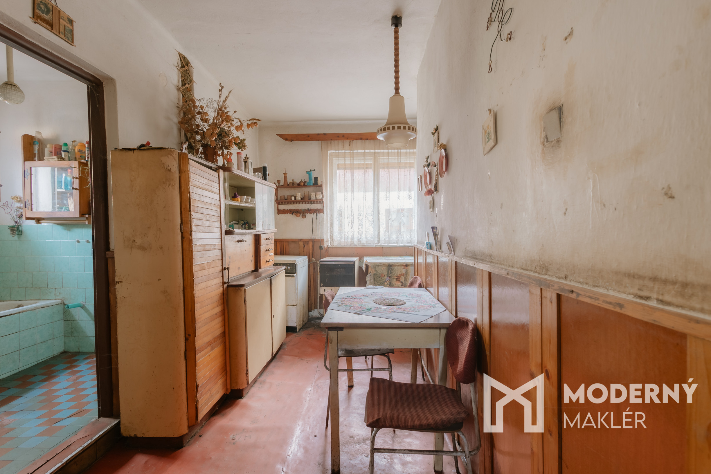 Rodinný dom bol postavený v roku 1970 a nachádza sa v pôvodnom stave, bez vykonaných rekonštrukčných zásahov. Disponuje drevenými oknami a plechovou strechou. Vykurovanie je zabezpečené plynovým kotlom, ktorý zaisťuje tepelný komfort v celom dome. Dom zatiaľ neprešiel zateplením, čo ponúka priestor na budúce energetické zlepšenia a modernizáciu podľa potrieb nového majiteľa. Na pozemku sa nachádza aj hospodárska budova, ktorá rozširuje možnosti využitia nehnuteľnosti – napríklad ako sklad, dielňa či priestor na ďalšie úpravy.