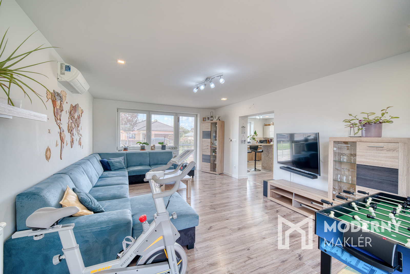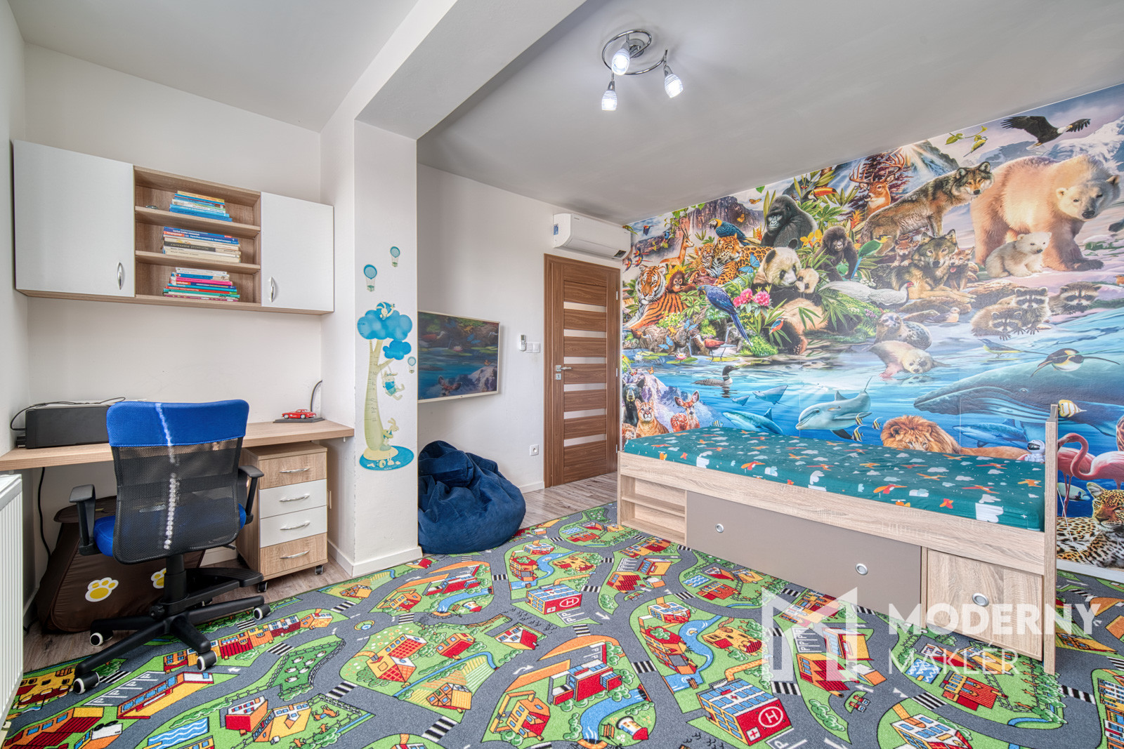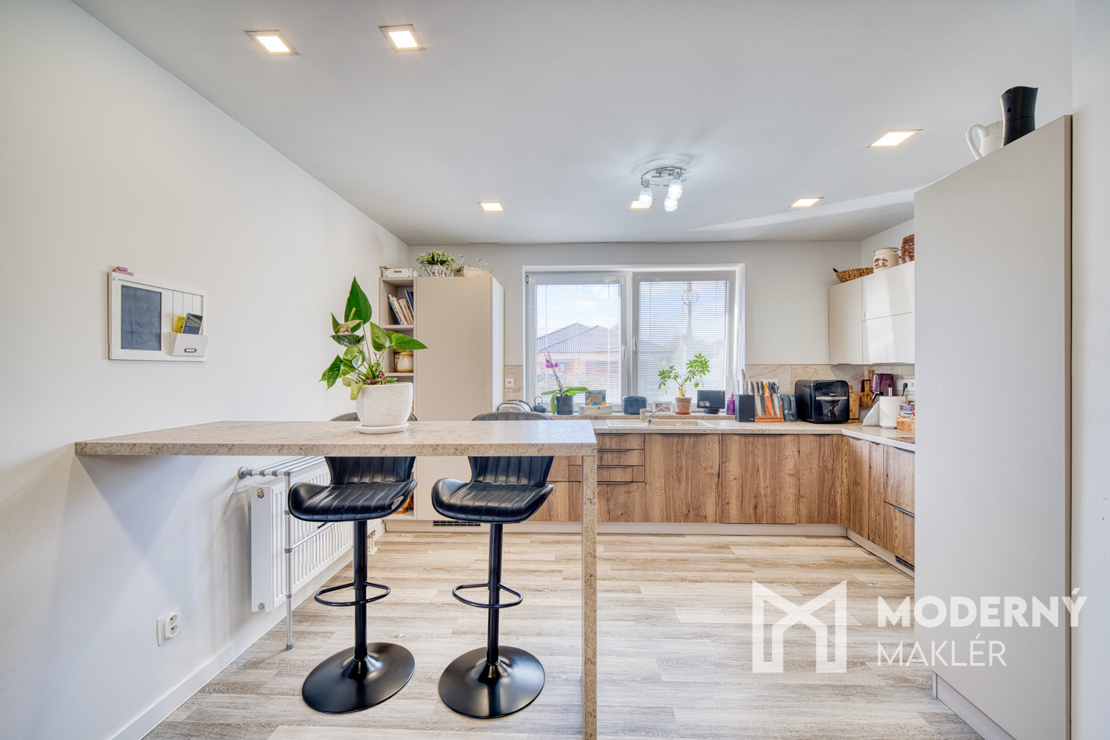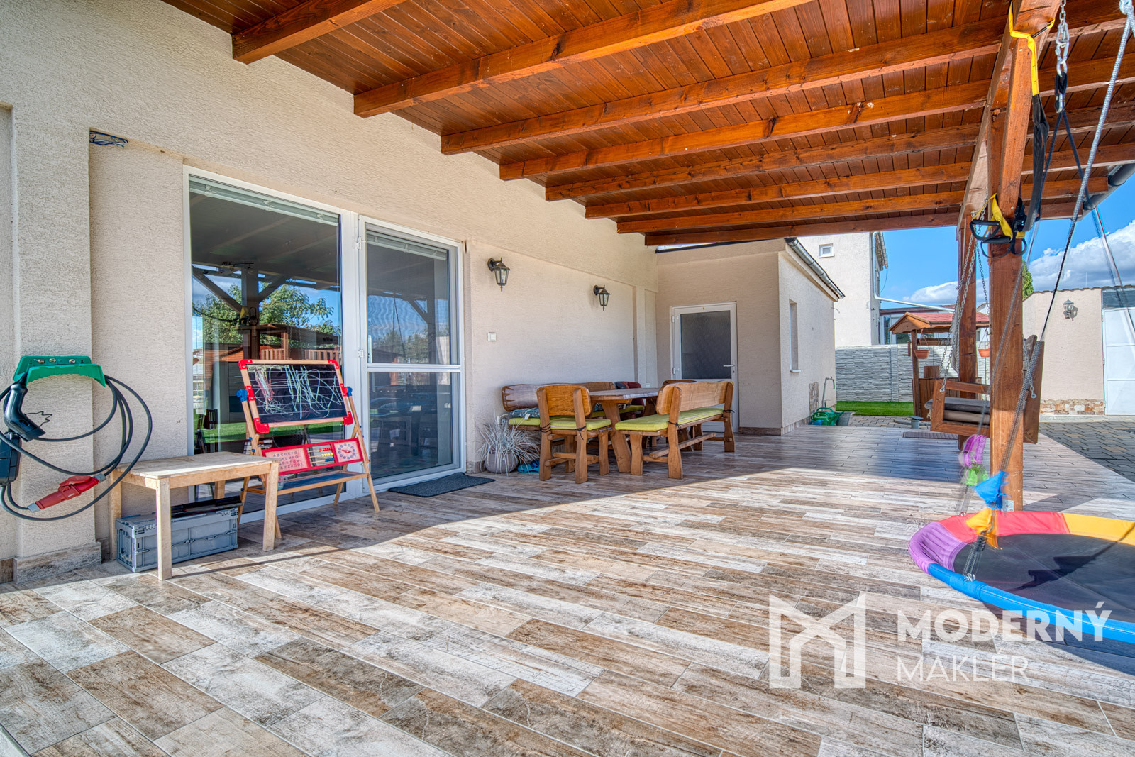Dom je novostavba vo výbornom technickom stave, ktorá nevyžaduje žiadne dodatočné investície. Exteriérové steny sú zhotovené z moderných stavebných materiálov s kvalitnou tepelnou izoláciou, čo zaručuje vysokú energetickú efektívnosť a nízke prevádzkové náklady. K nehnuteľnosti patrí praktická hospodárska miestnosť, ktorá poskytuje dodatočný úložný priestor pre záhradné náradie a domáce vybavenie. Na pozemku sa nachádza detské ihrisko, navrhnuté tak, aby ponúkalo bezpečnú a zábavnú zónu pre najmenších členov rodiny. Dom disponuje vlastnými parkovacími miestami na dvore, ktoré zabezpečujú pohodlné a bezpečné parkovanie priamo pri nehnuteľnosti. Celková koncepcia stavby je navrhnutá s dôrazom na funkčnosť, komfort a moderný životný štýl, pričom všetky prvky boli realizované v súlade s aktuálnymi stavebnými štandardmi a predpismi.