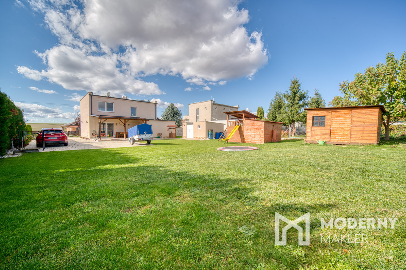 Ide o novostavbu dvojpodlažného domu nachádzajúcu sa v atraktívnej a tichej lokalite, len na skok od miest Galanta a Trnava. Dom je súčasťou moderného rezidenčného prostredia s detským ihriskom, ktoré ponúka ideálne podmienky pre rodiny s deťmi. Na pozemku sa navyše nachádza aj hospodárska budova, ktorá poskytuje praktický úložný priestor alebo možnosť ďalšieho využitia podľa potrieb majiteľa. Nehnuteľnosť predstavuje spojenie komfortného bývania, modernej architektúry a pokojného prostredia v blízkosti všetkej občianskej vybavenosti.