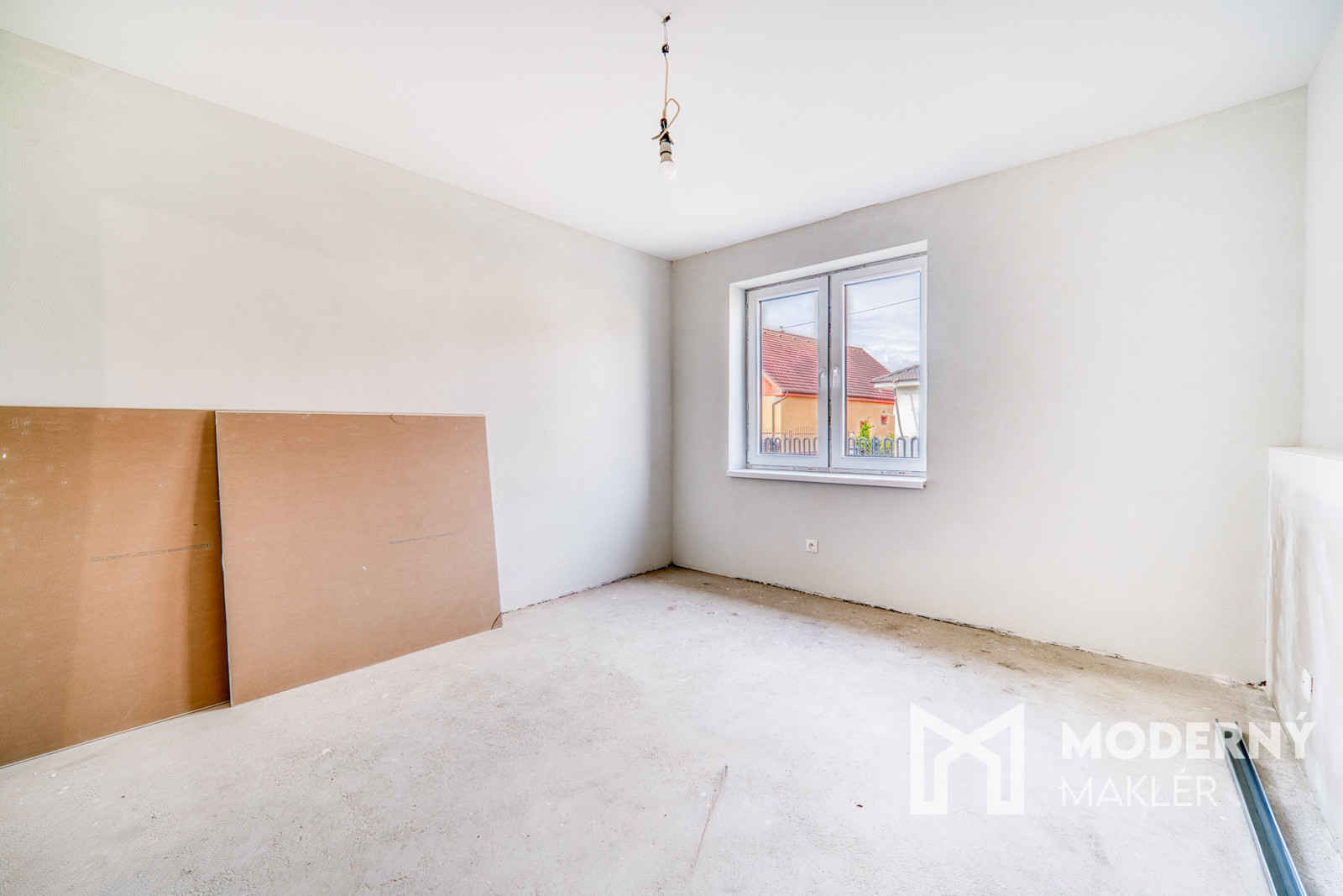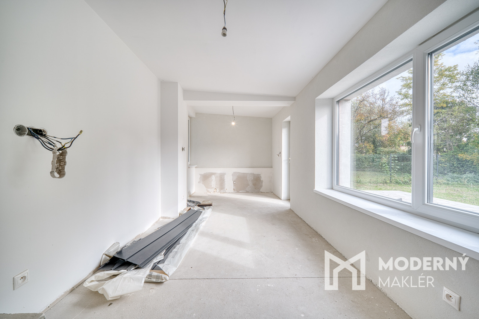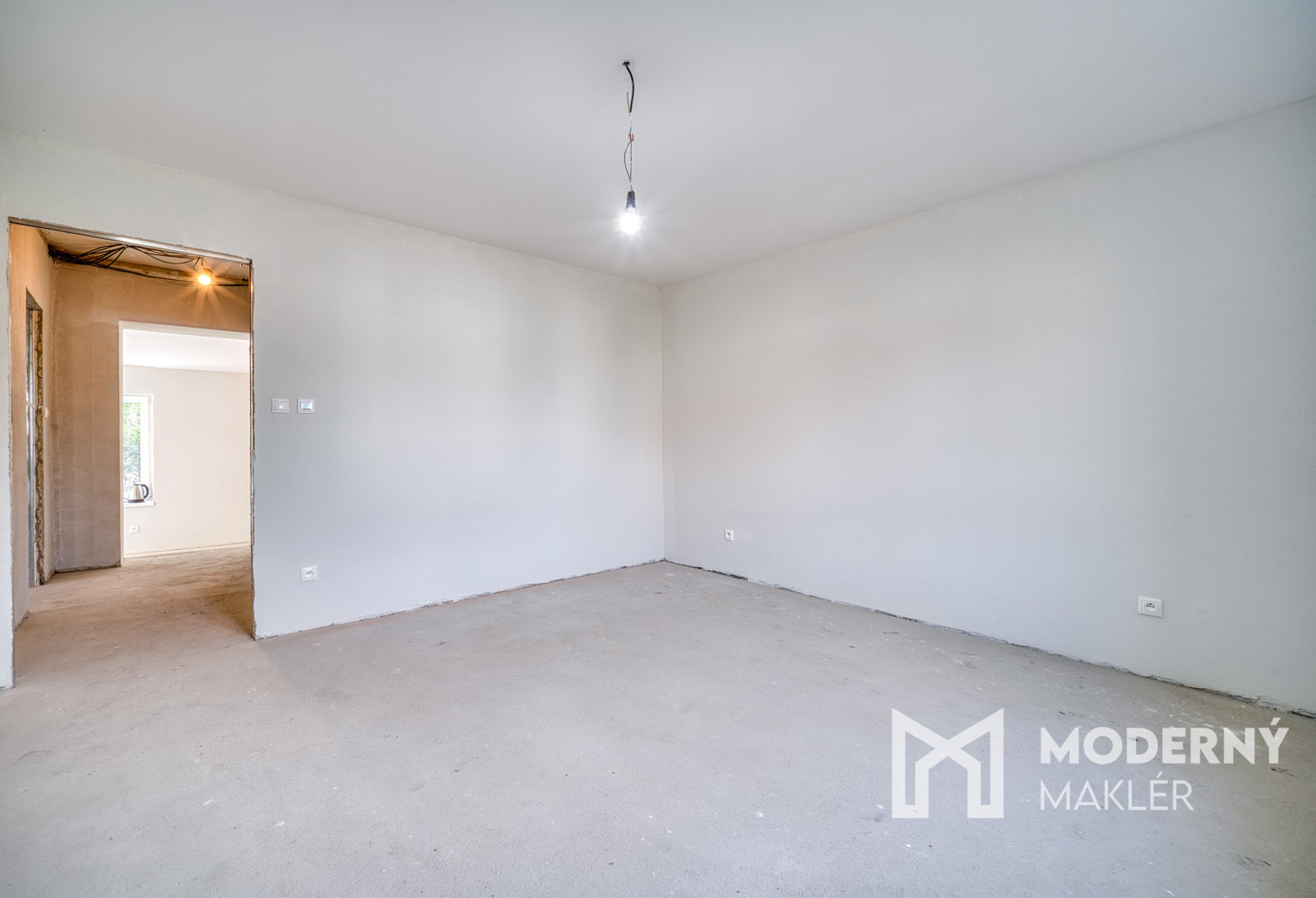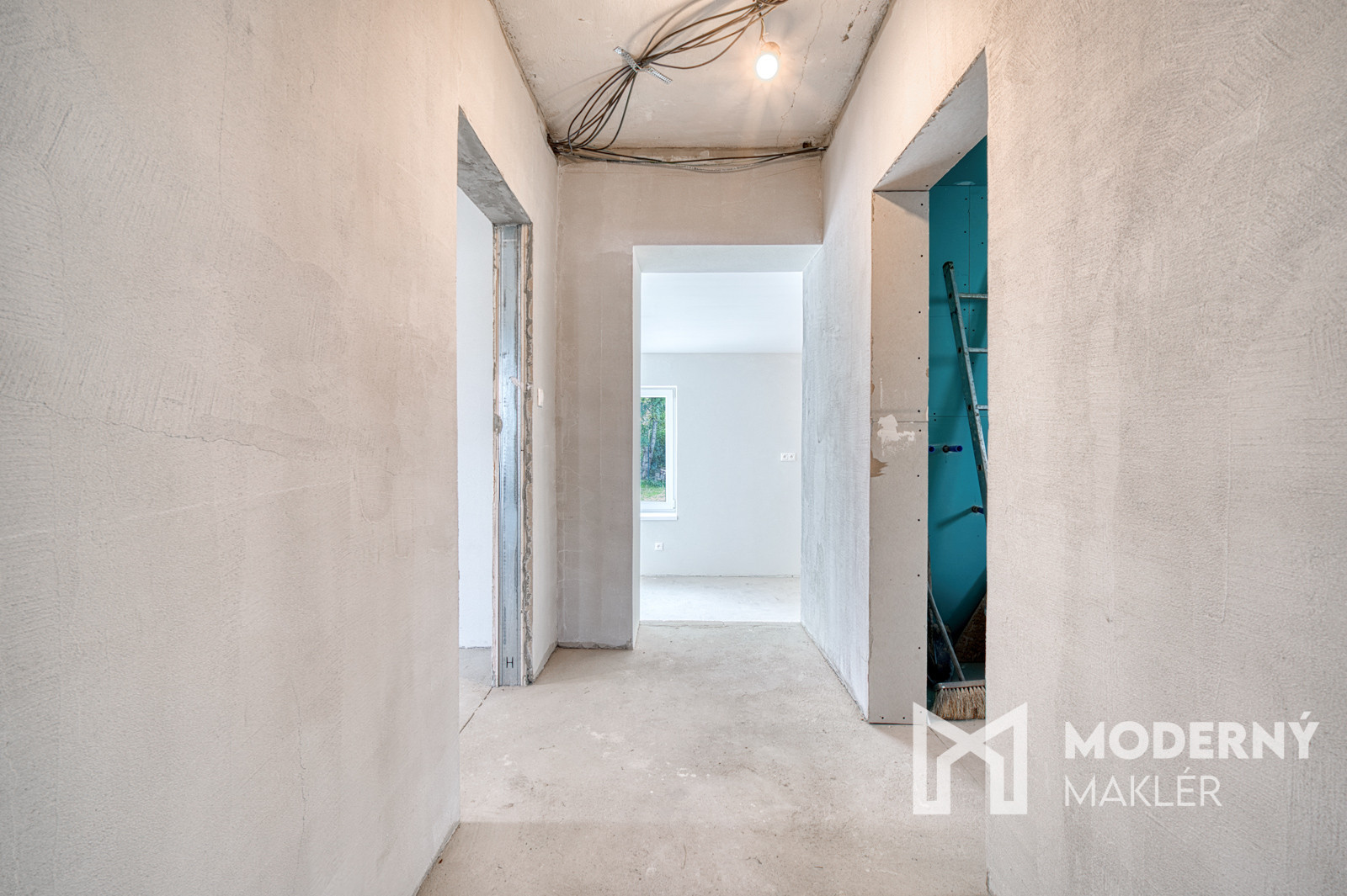 Dom sa predáva v prevedení holodom, pripravený na dokončenie podľa vlastného vkusu nového majiteľa. Pozostáva zo vstupnej chodby, kúpeľne s WC, priestrannej kuchyne spojenej s jedálňou a obývačkou s výstupom na terasu. Súčasťou obytnej plochy sú dve samostatné izby. Dom má jedno obytné podlažie a neobytné podkrovie, ktoré možno využiť ako odkladací priestor alebo dobudovať podľa vlastných predstáv. Orientácia domu zabezpečuje dostatok prirodzeného svetla počas dňa. Priamo vedľa rodinného domu sa nachádza stavebný pozemok o výmere 500 m², ktorý je vo vlastníctve toho istého majiteľa a je možné ho dokúpiť za cenu 35.000 €. Pozemok ponúka skvelú príležitosť na rozšírenie pozemku, výstavbu ďalšieho domu alebo realizáciu záhradných úprav.