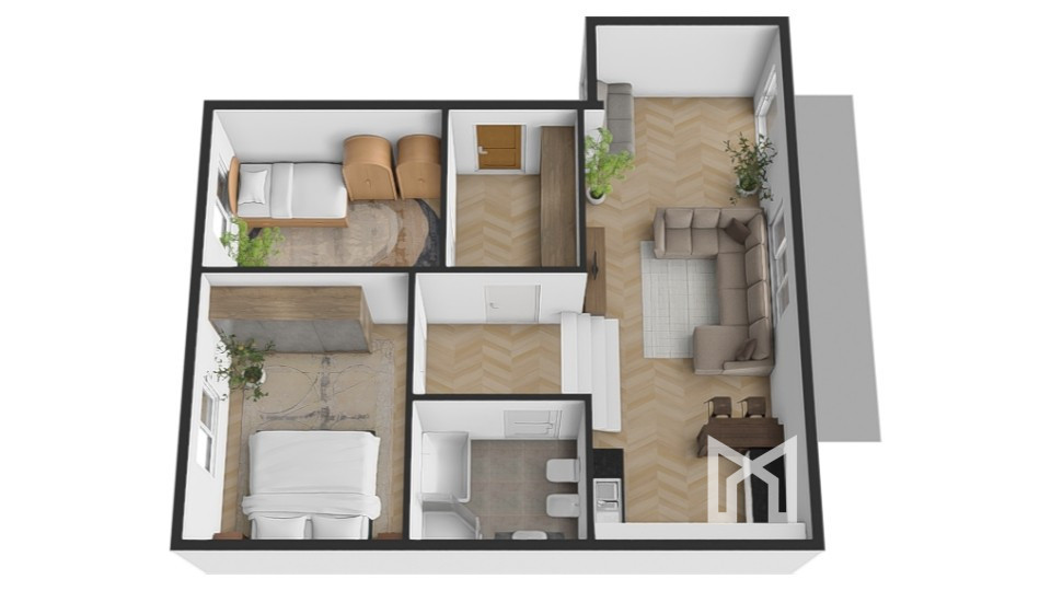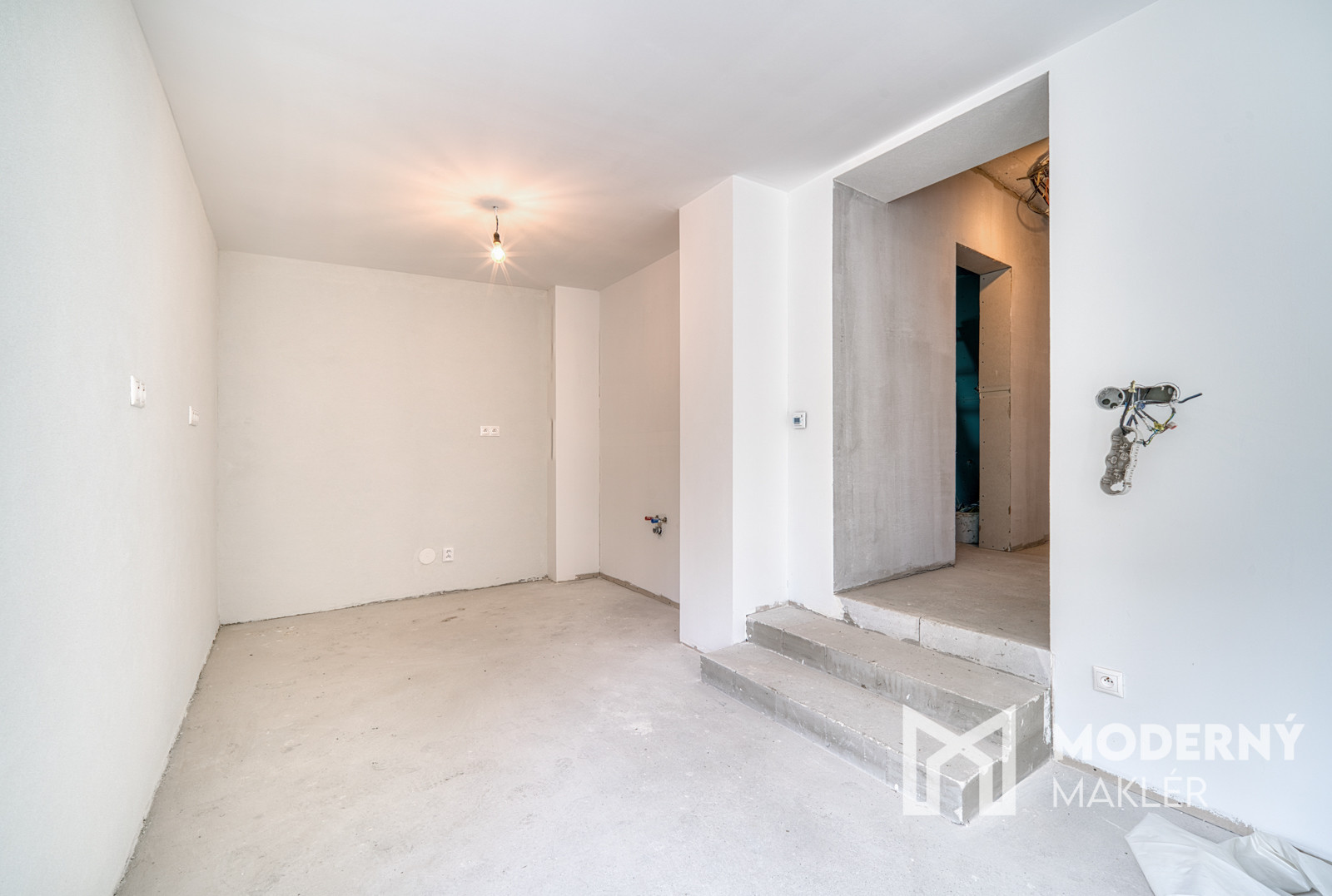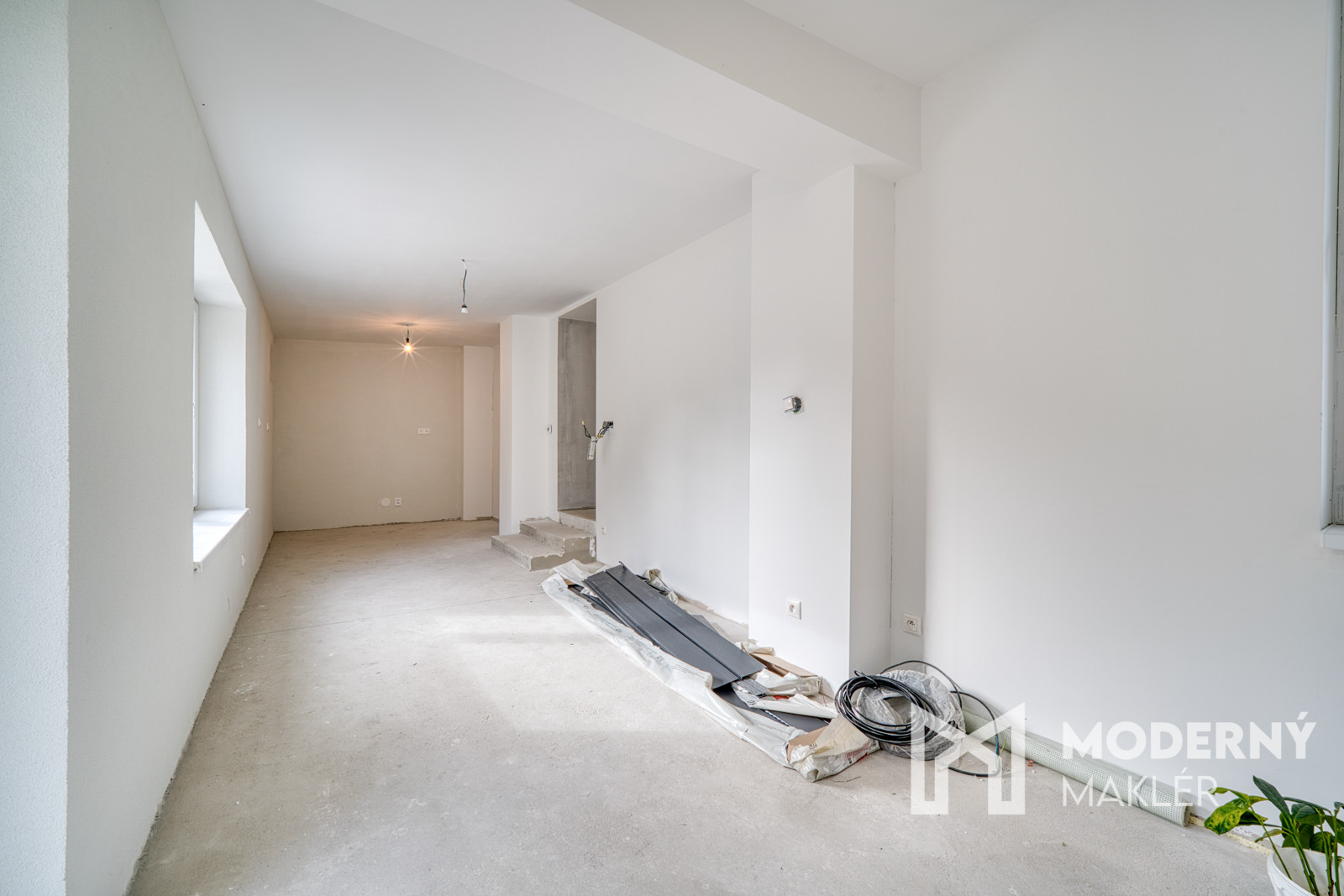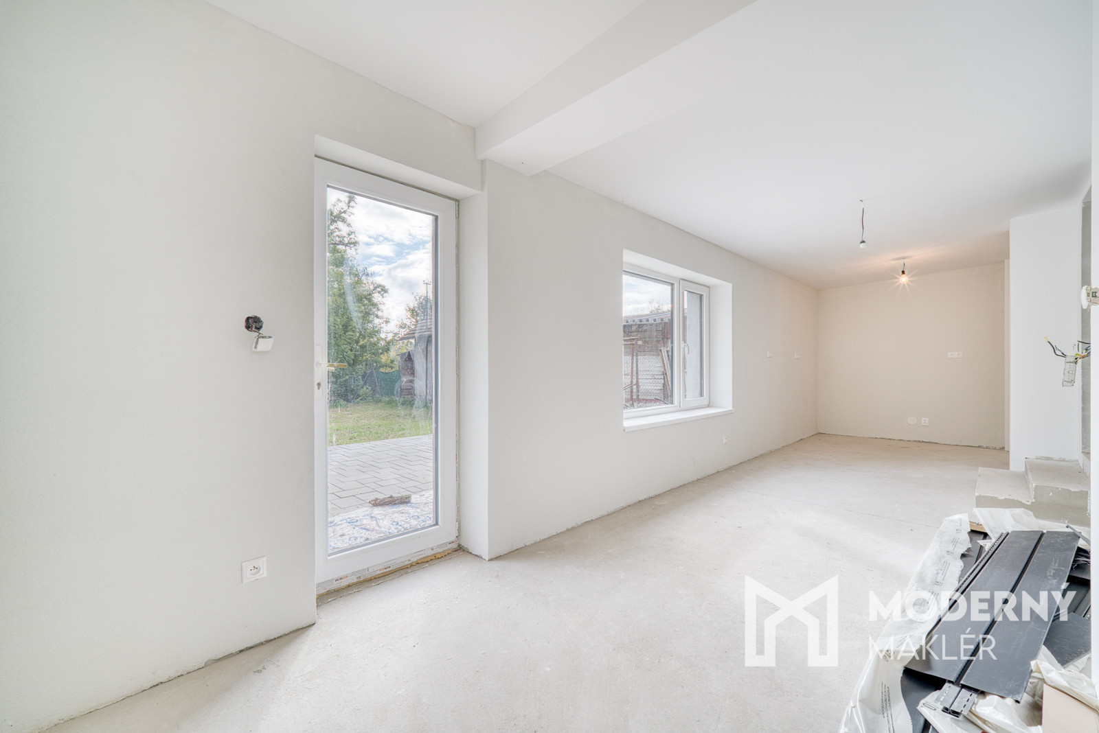 Dom sa predáva v prevedení holodom, pripravený na dokončenie podľa vlastného vkusu nového majiteľa. Pozostáva zo vstupnej chodby, kúpeľne s WC, priestrannej kuchyne spojenej s jedálňou a obývačkou s výstupom na terasu. Súčasťou obytnej plochy sú dve samostatné izby. Dom má jedno obytné podlažie a neobytné podkrovie, ktoré možno využiť ako odkladací priestor alebo dobudovať podľa vlastných predstáv. Orientácia domu zabezpečuje dostatok prirodzeného svetla počas dňa. Priamo vedľa rodinného domu sa nachádza stavebný pozemok o výmere 500 m², ktorý je vo vlastníctve toho istého majiteľa a je možné ho dokúpiť za cenu 35.000 €. Pozemok ponúka skvelú príležitosť na rozšírenie pozemku, výstavbu ďalšieho domu alebo realizáciu záhradných úprav.