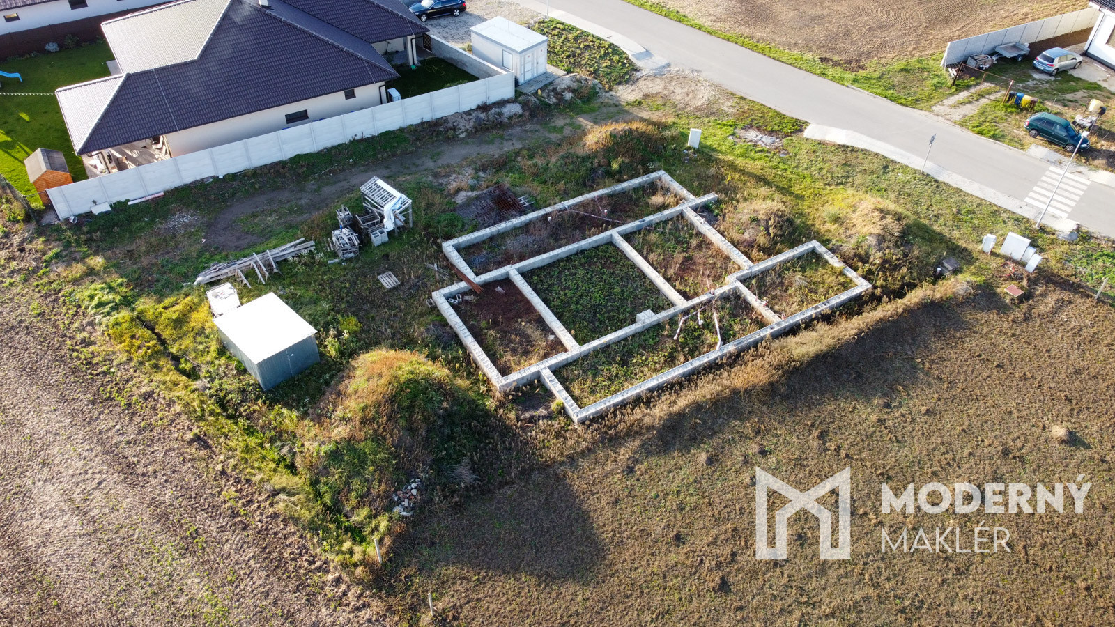 Moderný maklér ponúka na predaj stavebný pozemok s platným stavebným povolením, kompletnou projektovou dokumentáciou a začatou základovou doskou v Dolnom Vinodole. Vo fotografiách sa nachádza aj vizualizácia, ktorá slúži na lepšiu predstavu o možnom vzhľade rodinného domu.