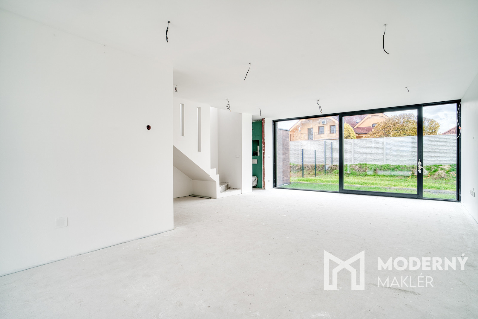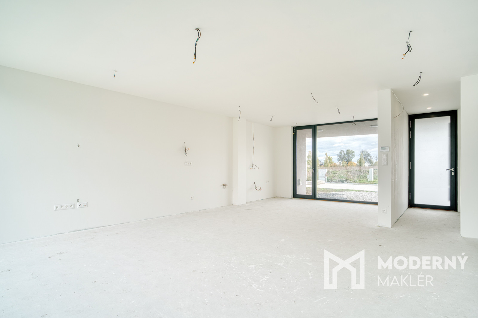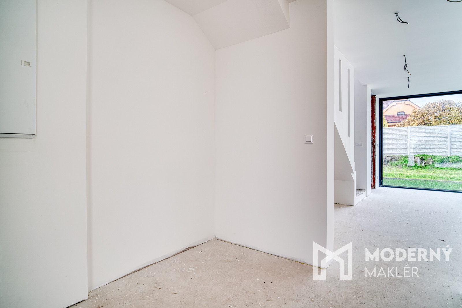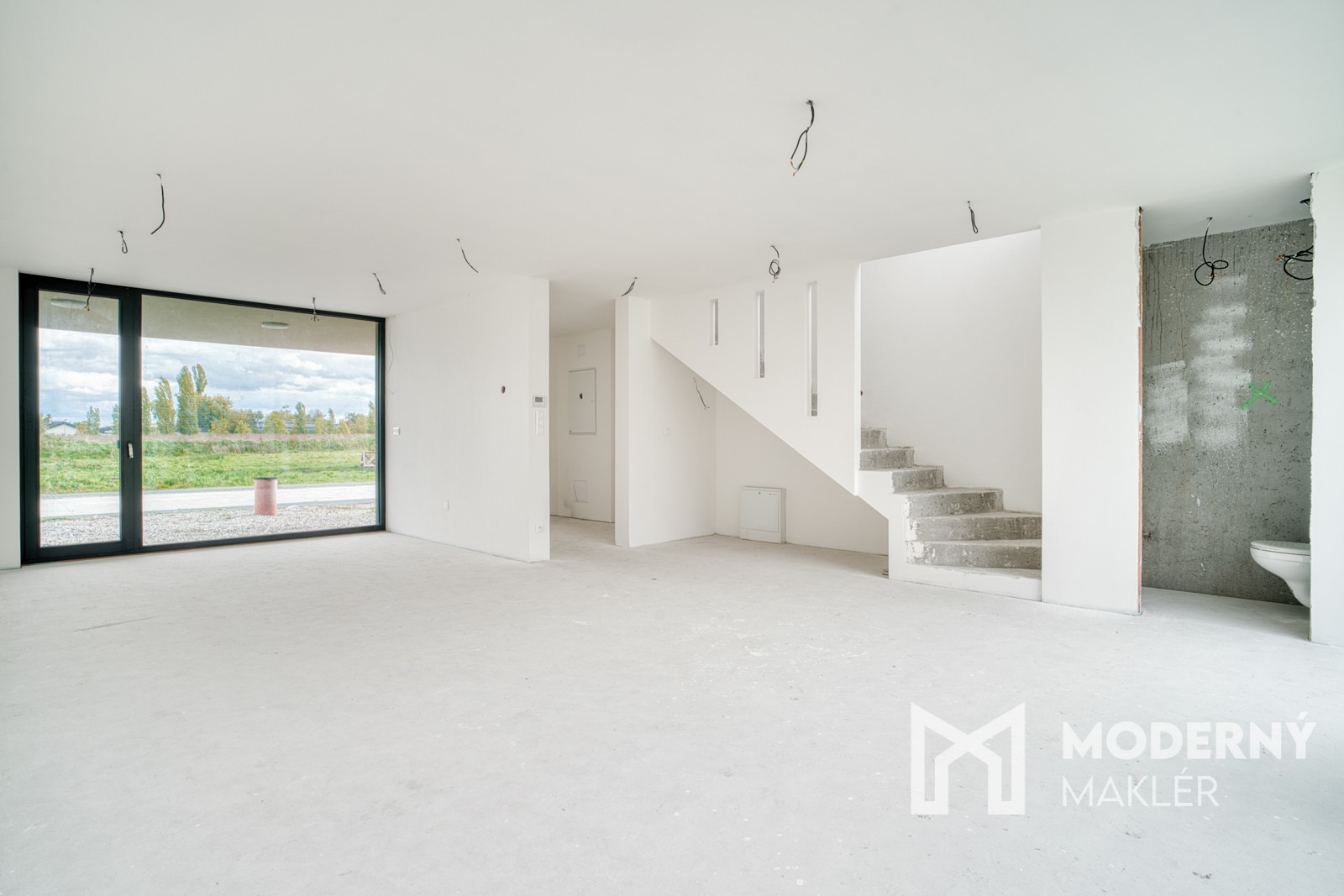 Dom má prípravu na klimatizáciu v každej izbe, fotovoltaiku a elektrické exteriérové žalúzie. Strojové omietky, hygienické nátery a čisté línie interiéru vytvárajú moderný a zdravý priestor pre nové bývanie.