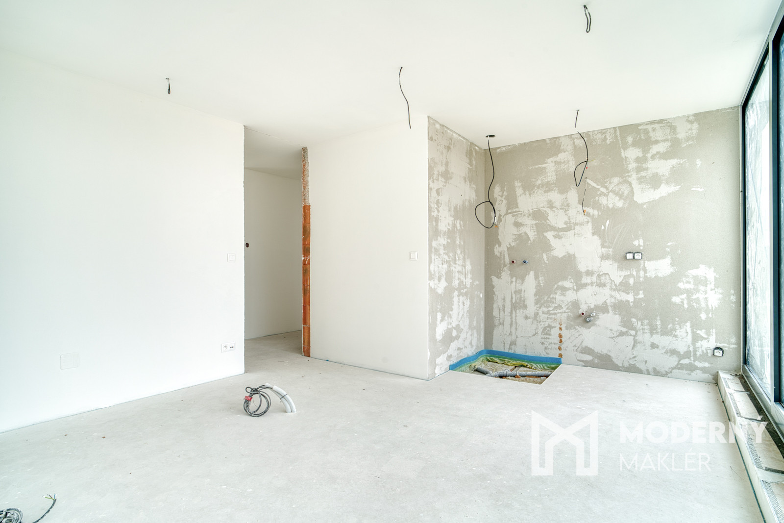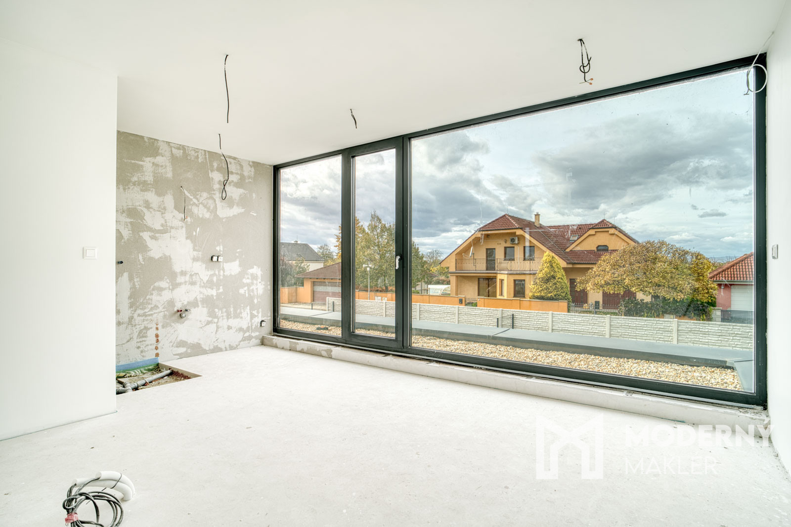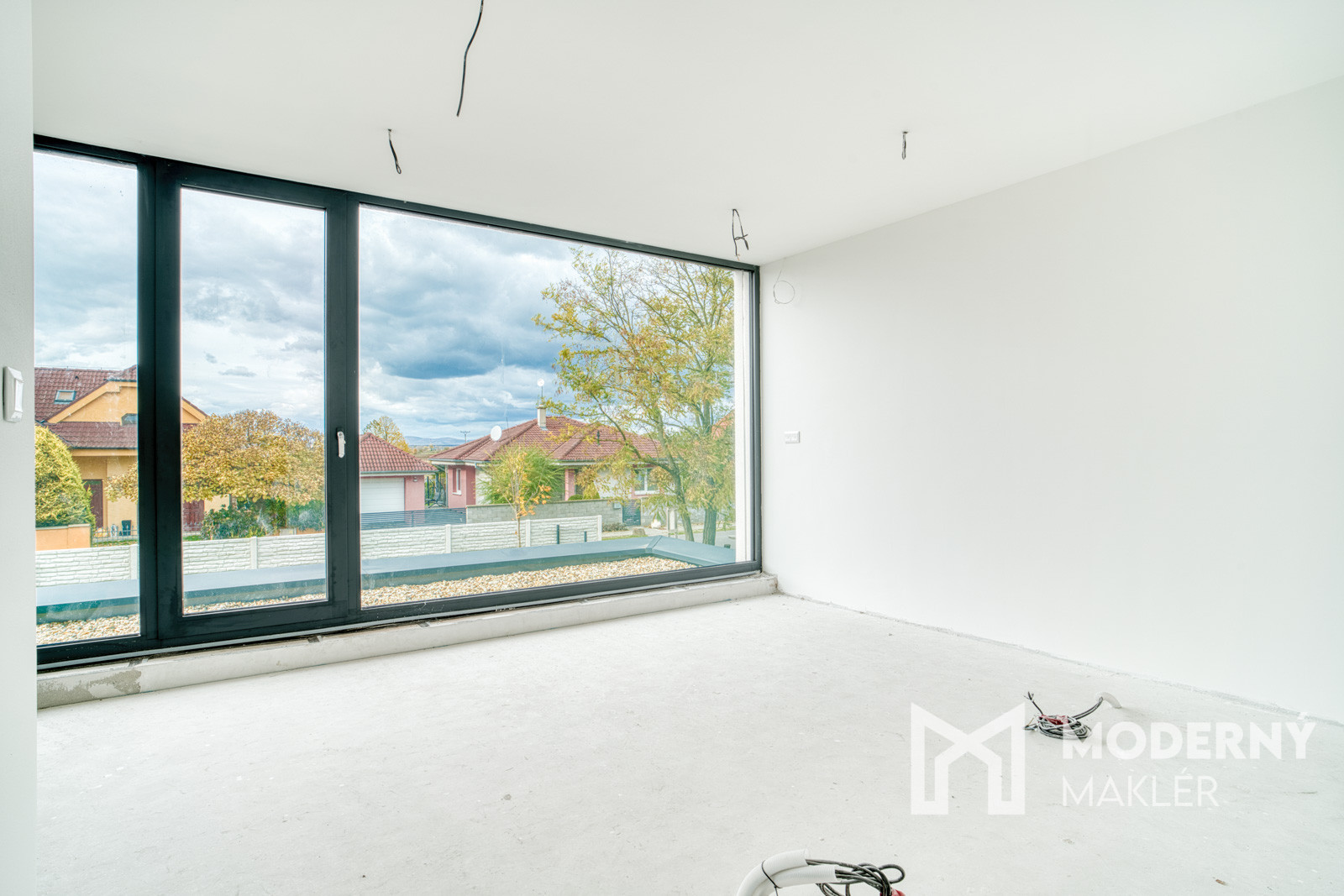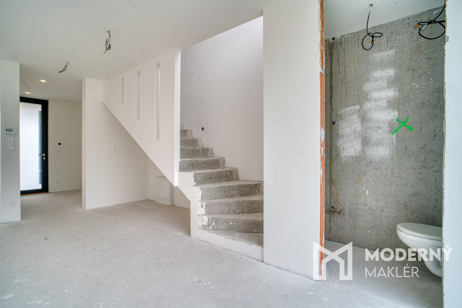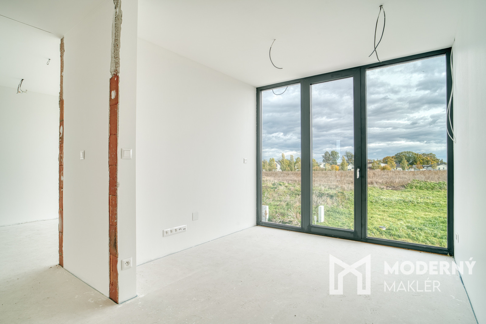 Dom má prípravu na klimatizáciu v každej izbe, fotovoltaiku a elektrické exteriérové žalúzie. Strojové omietky, hygienické nátery a čisté línie interiéru vytvárajú moderný a zdravý priestor pre nové bývanie.