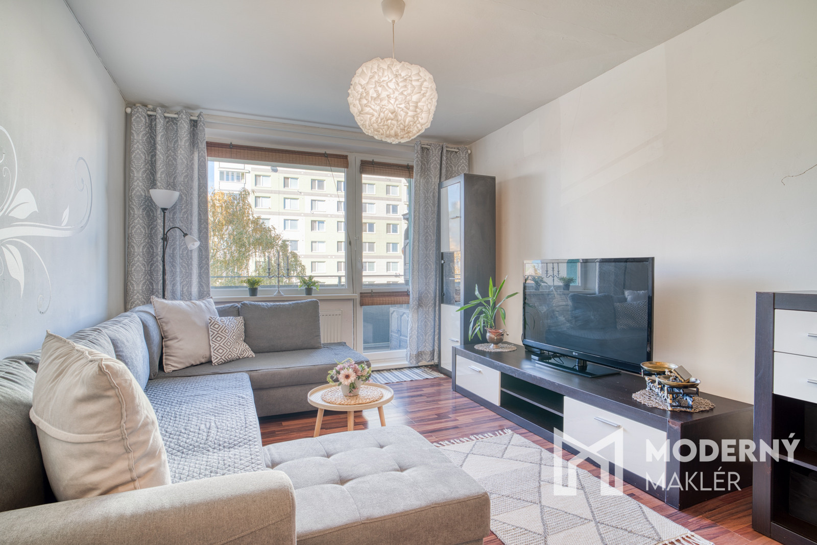 Byt sa predáva kompletne zariadený, takže sa môžete rovno nasťahovať. Kuchynská linka so spotrebičmi (varná doska, elektrická rúra, chladnička s mrazničkou, mikrovlnná rúka, umývačka riadu), jedálenský stôl s 2 stoličkami, v obývačke je sedačka v tvare U, konferenčný stolík, skrinka pod TV, vitrína a komoda, v spálni manželská posteľ, skrinky, šatníková skriňa, skrinka, rozťahovacia sedačka. V kúpeľni je umiestnená práčka, skrinka pod umývadlo a závesná srkinka, na chodbe botník. Stačí si priniesť osobné veci – o všetko ostatné je postarané.