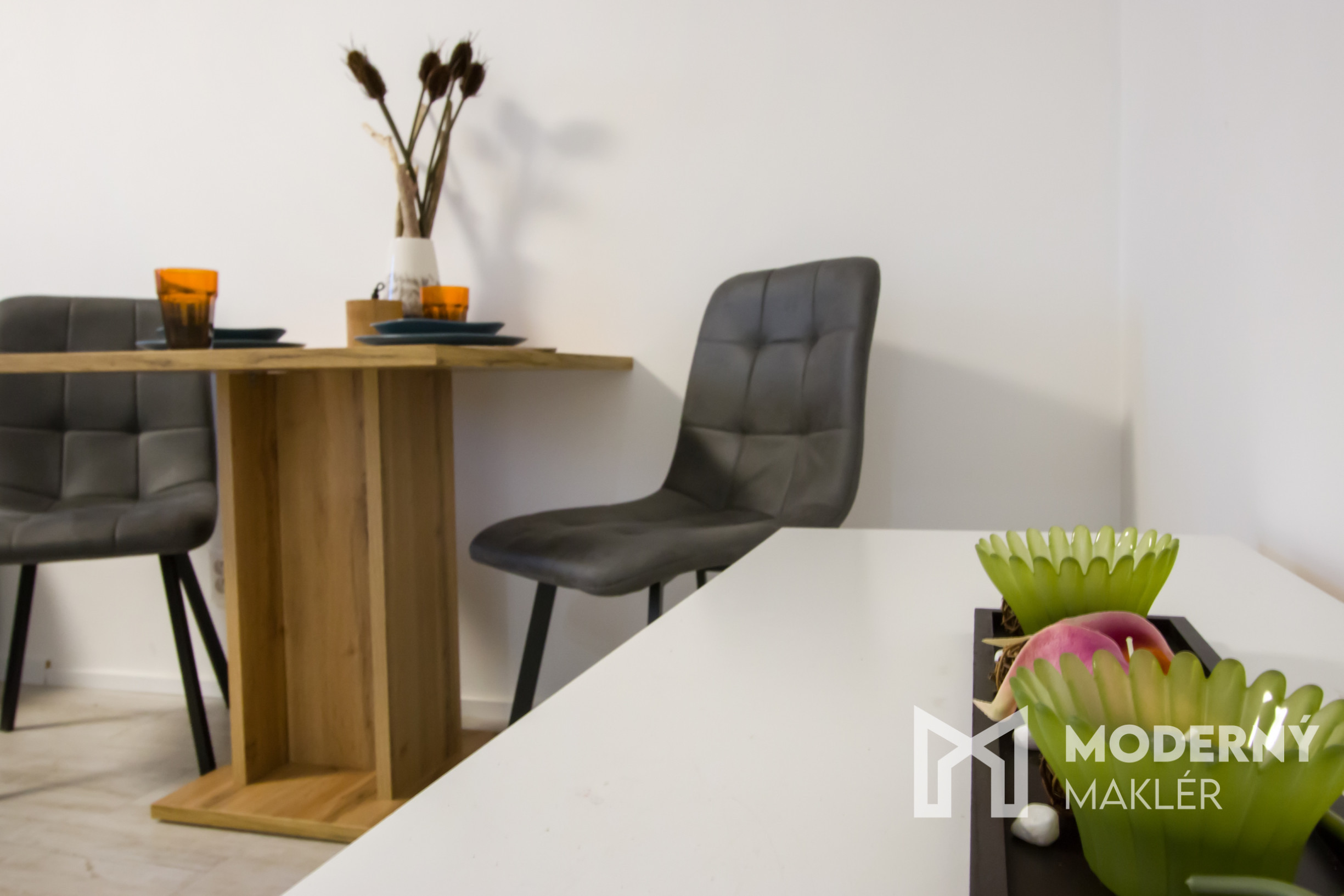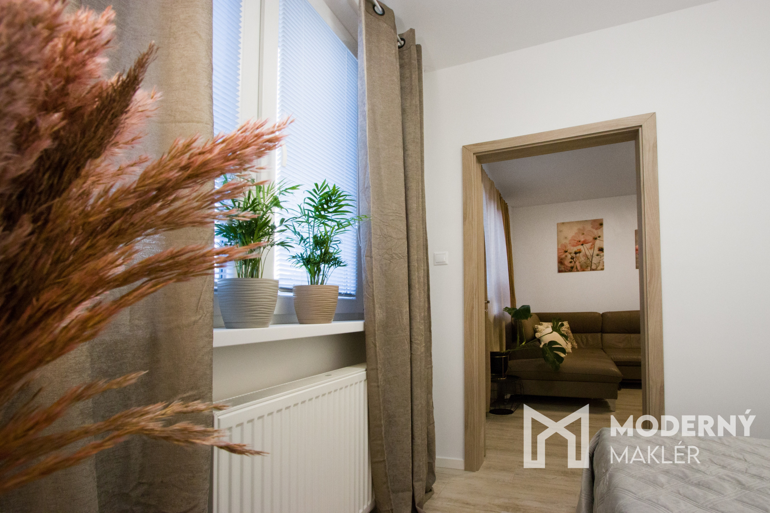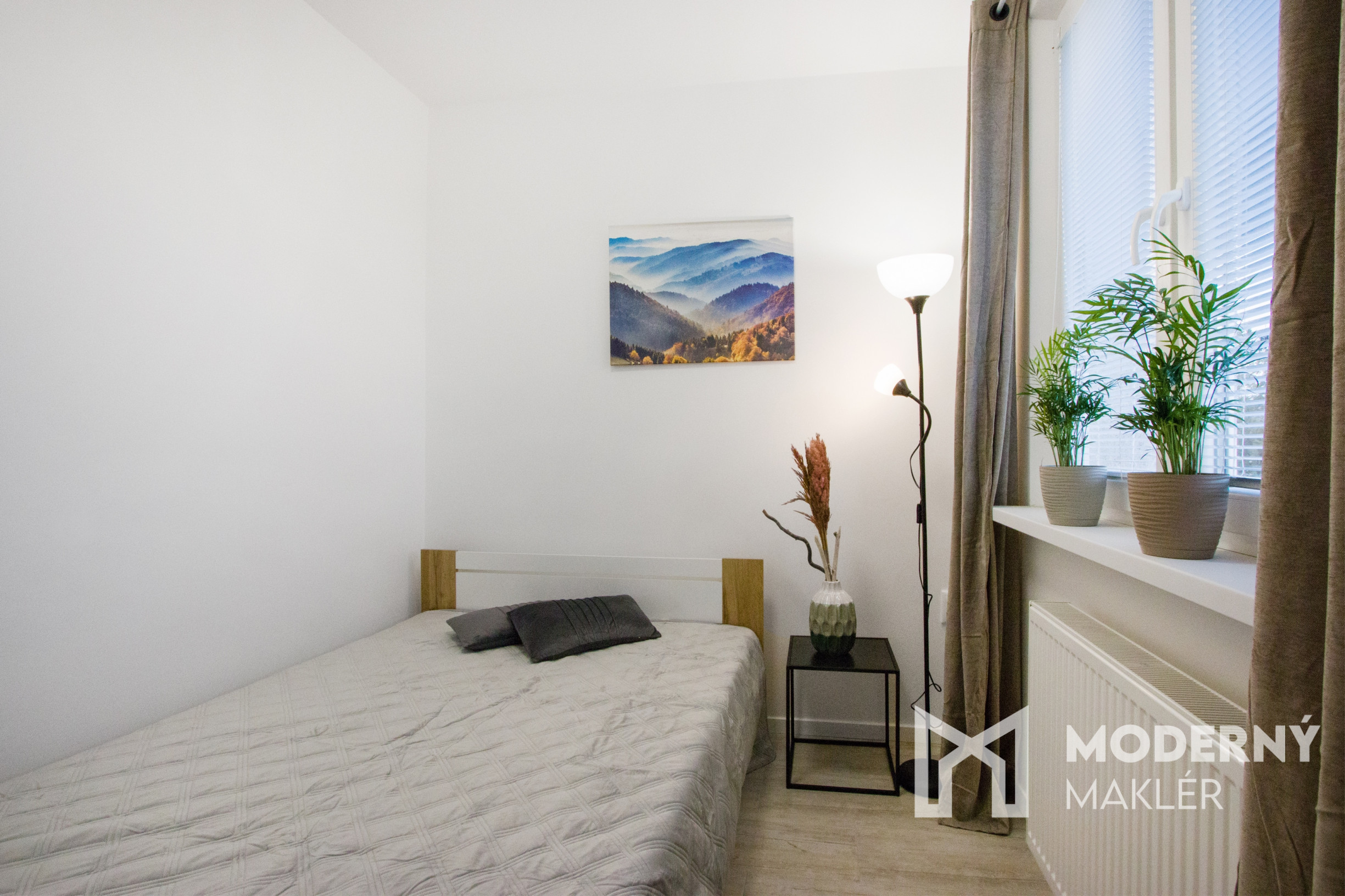 Nehnuteľnosť sa skladá z premyslene upravenej dispozície, kde z pôvodného 1-izbového bytu vznikol funkčný priestor s oddelenou spálňou. V byte nájdete samostatnú spálňu, ktorá poskytuje súkromie a komfort porovnateľný s väčšími bytmi. Obývacia časť harmonicky spája denný priestor s jedálňou a kuchyňou v jednom celku, pričom kuchyňa bola dômyselne integrovaná do tejto časti bytu. Vzdušná vstupná hala s bezpečnostnými dverami a odkladacím priestorom, priestranná moderná kúpeľňa so sprchovým kútom, WC. Byt ponúka krásny výhľad na okolitú zeleň a nádherné Karpaty, čo vytvára pokojnú a príjemnú atmosféru bývania.