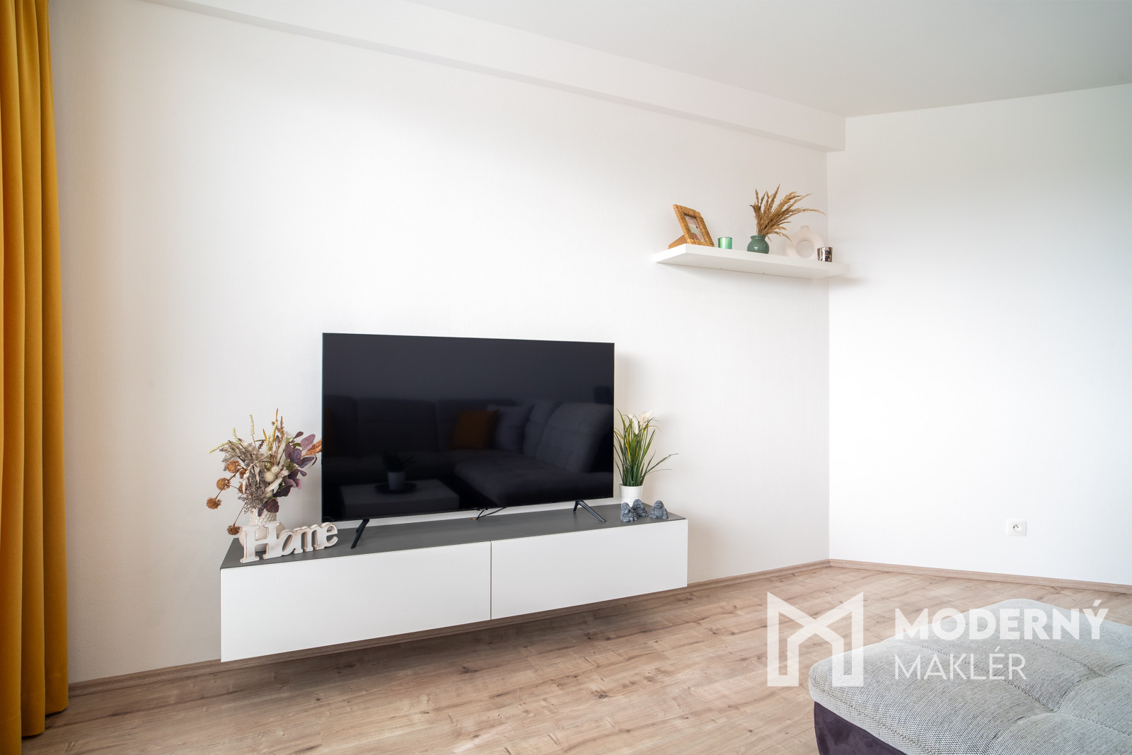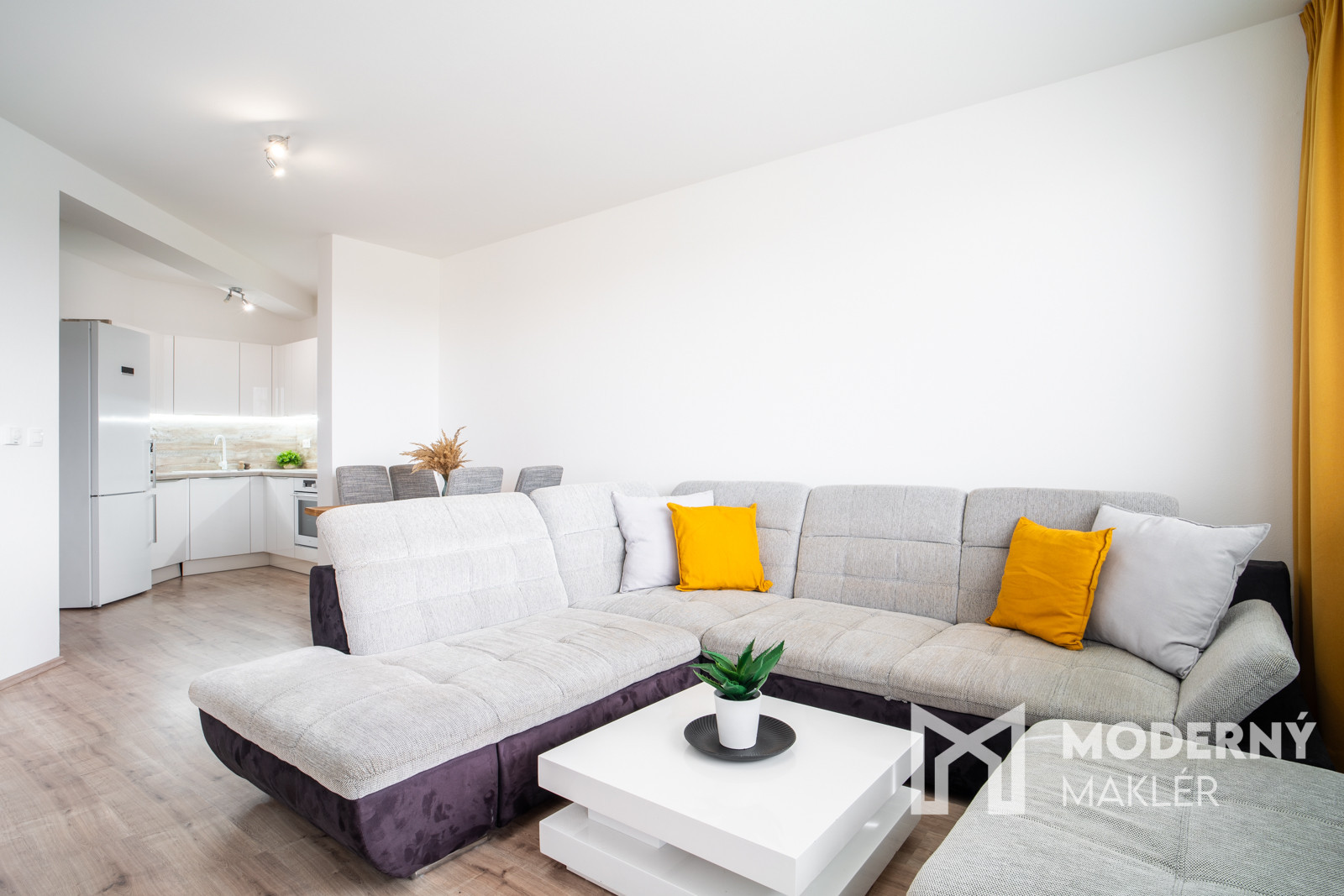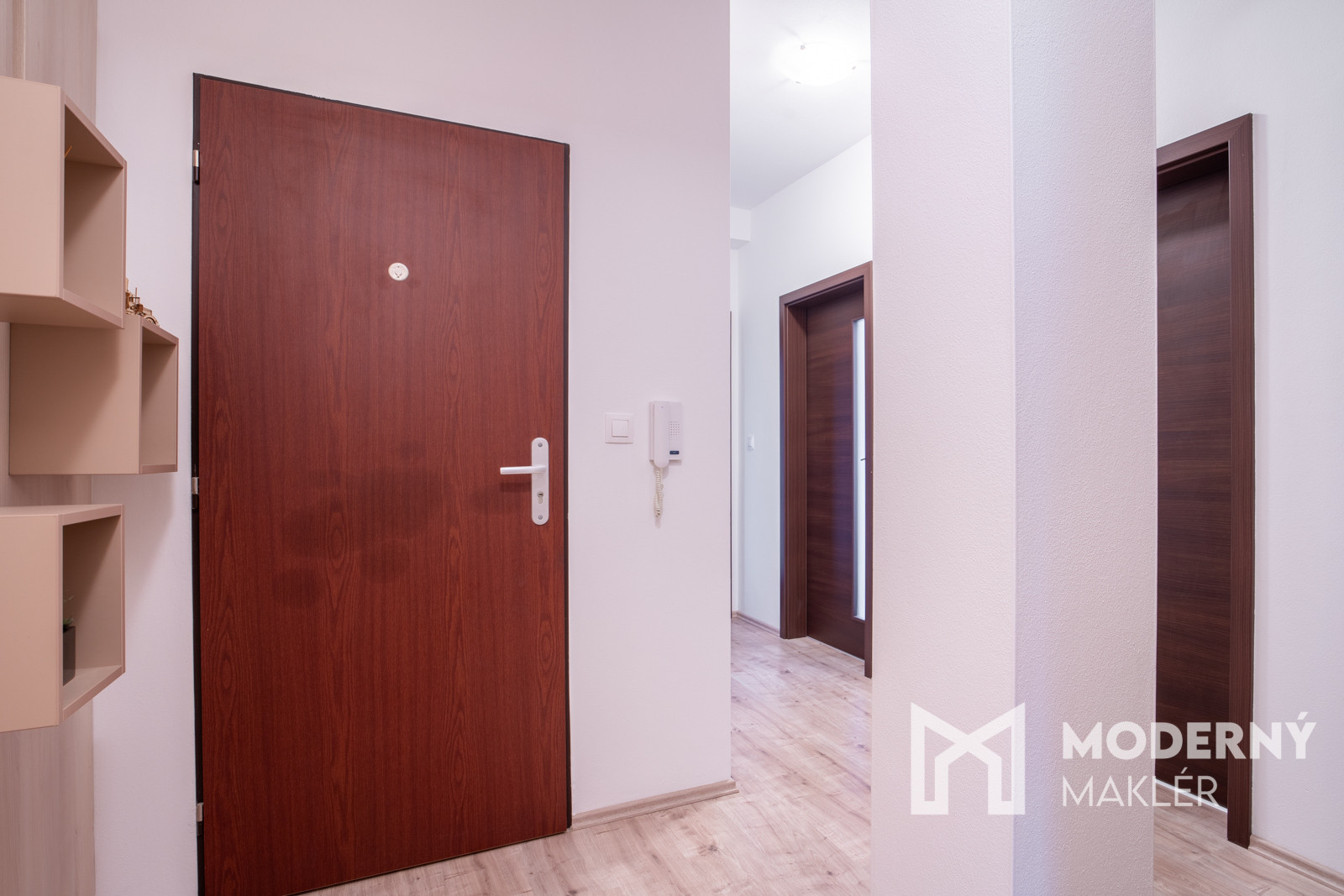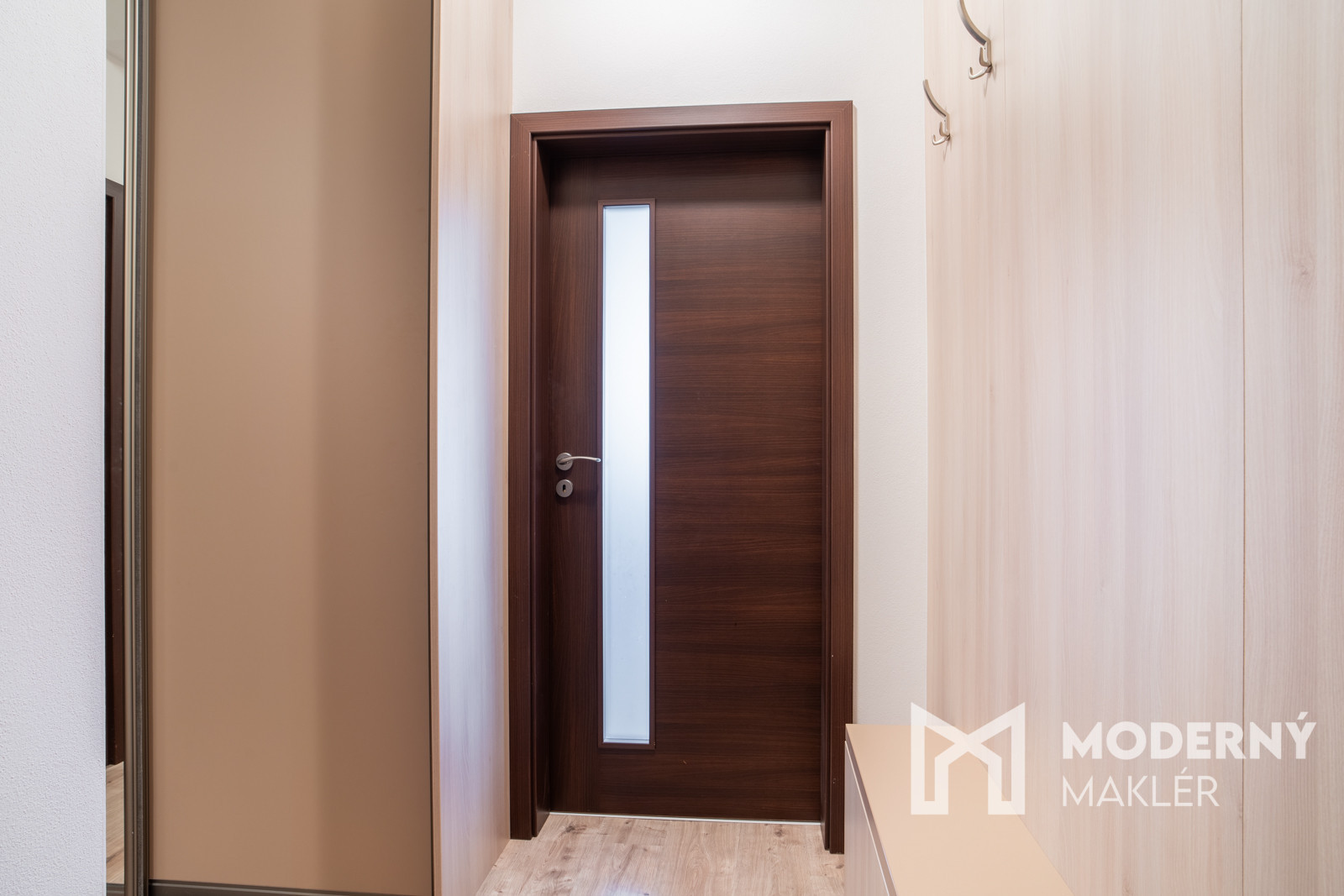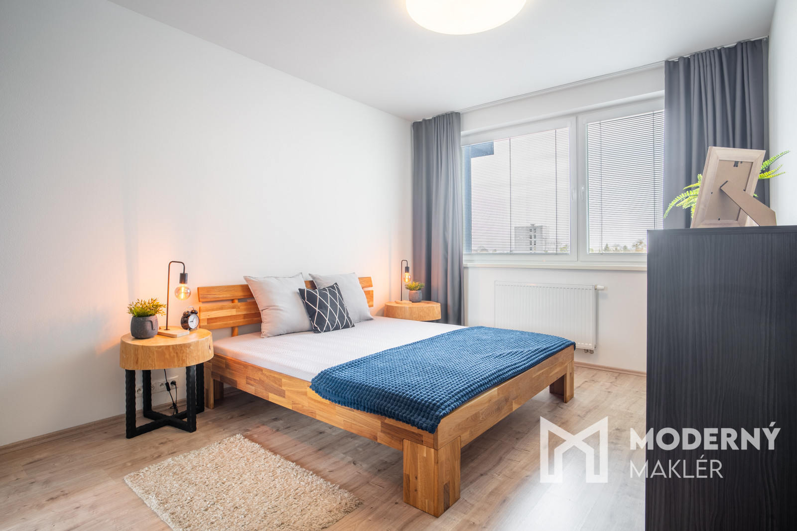 Nehnuteľnosť sa prenajíma kompletne zariadená – v kuchyni nájdete kuchynskú linku so spotrebičmi (indukčná varná doska, elektrická rúra, umývačka riadu, digestor, chladnička s mrazničkou, mikrovlnná rúra, kávovar) a jedálenský stôl so stoličkami. Obývacia izba disponuje rohovou rozťahovacou sedačkou, konferenčným stolíkom, televízorom a skrinkou pod TV. V spálni sa nachádza vstavaná skriňa, manželská posteľ s matracmi, nočné stolíky a komoda. V druhej izbe nájdete jedálenský stôl, avšak po dohode je možné dokúpiť aj ďalší nábytok. V kúpeľni je práčka, odkladacia skrinka, na chodbe vstavaná skriňa, botník a vešiakový panel. K dispozícii je aj robotický vysávač. V byte je zabezpečený optický internet a TV pripojenie.