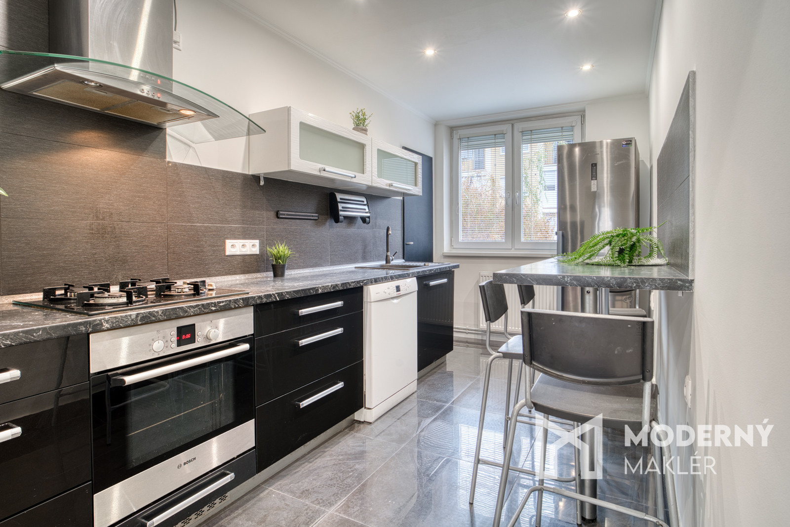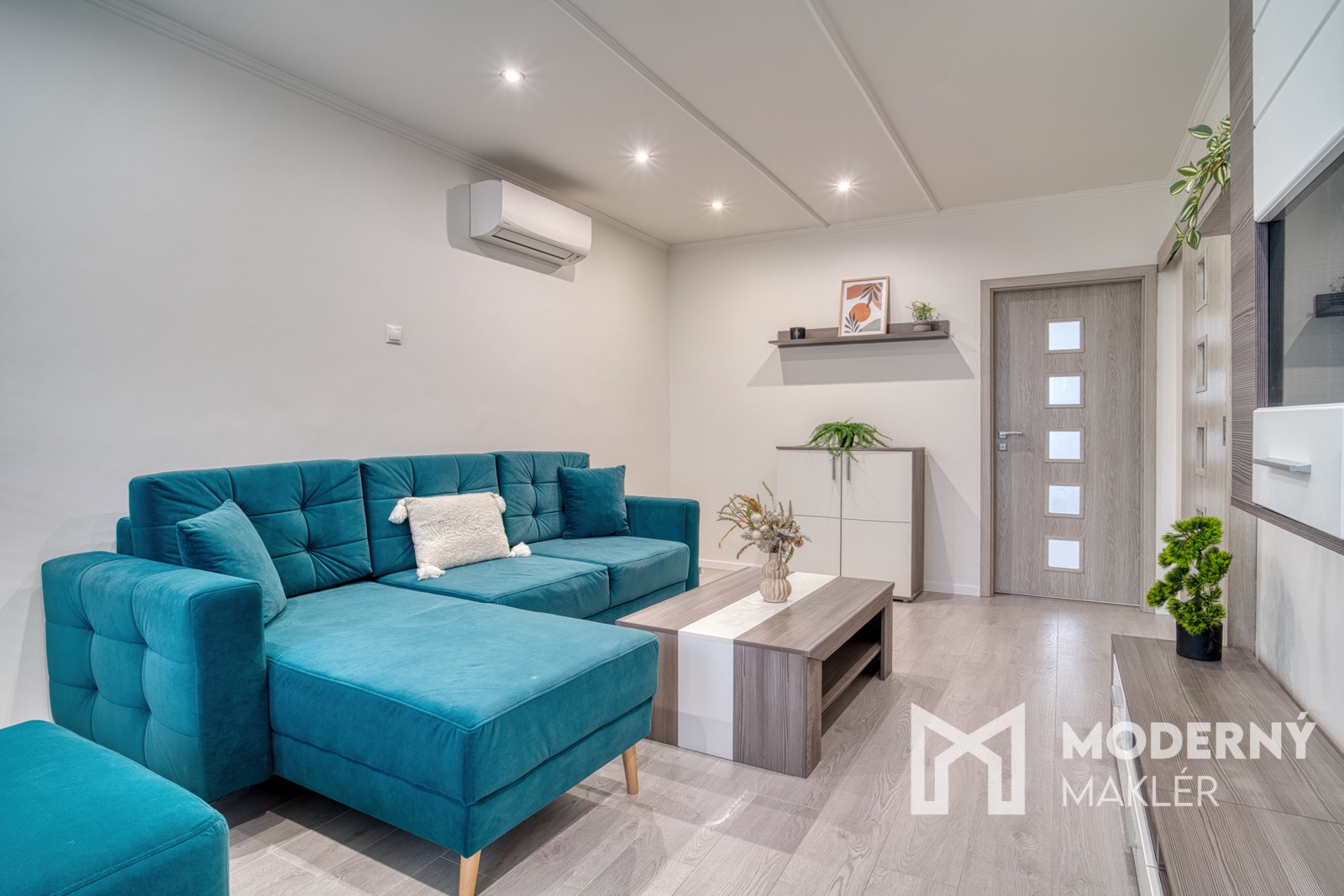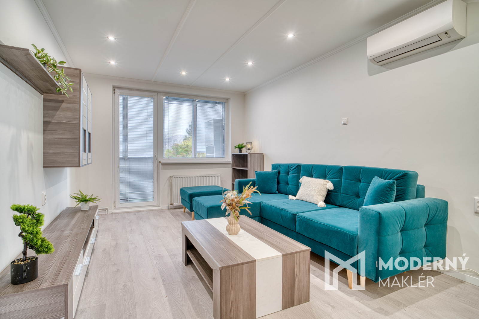 Byt je po rekonštrukcii, s novým nábytkom. K dispozícií sú aj vonkajšie elektrické žalúzie. Vykurovanie a ohrev vody je prostredníctvom vlastného plynového kotla. V obývačke je umiestnená klimatizácia.