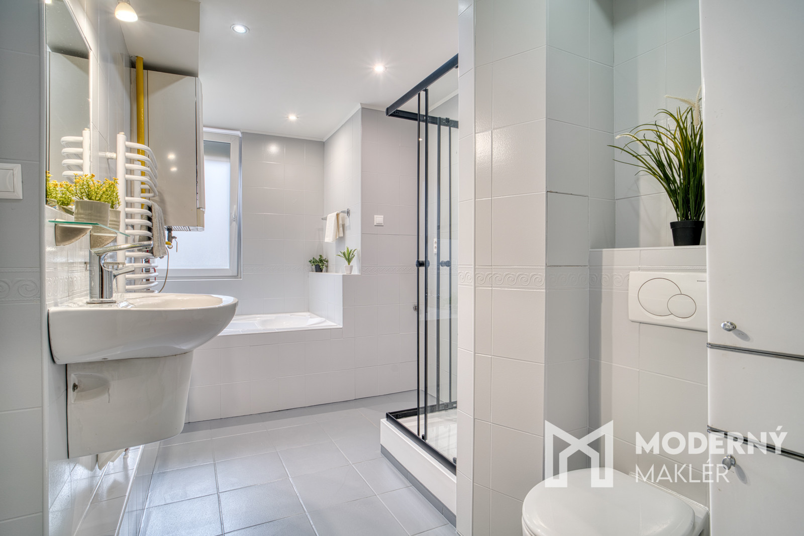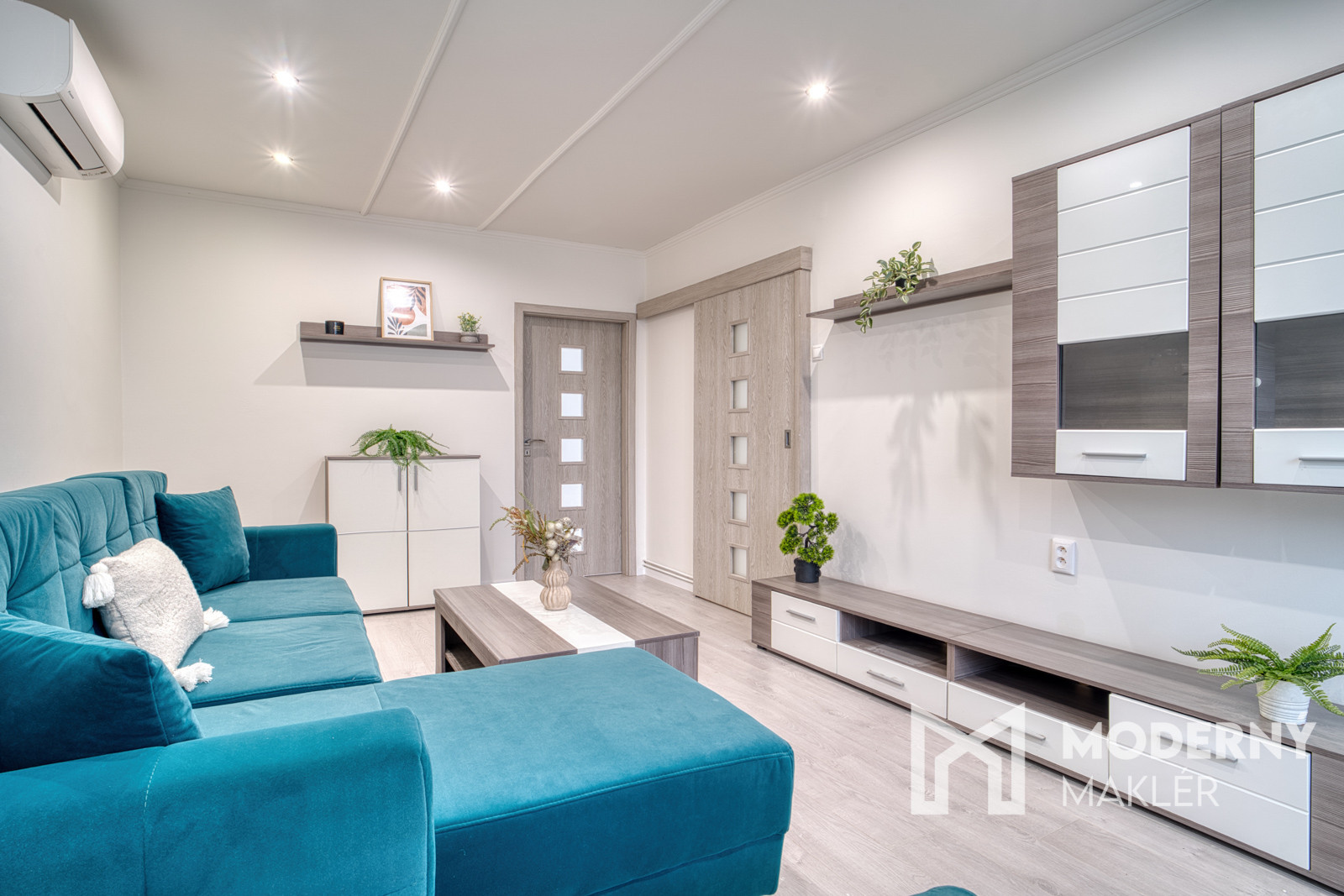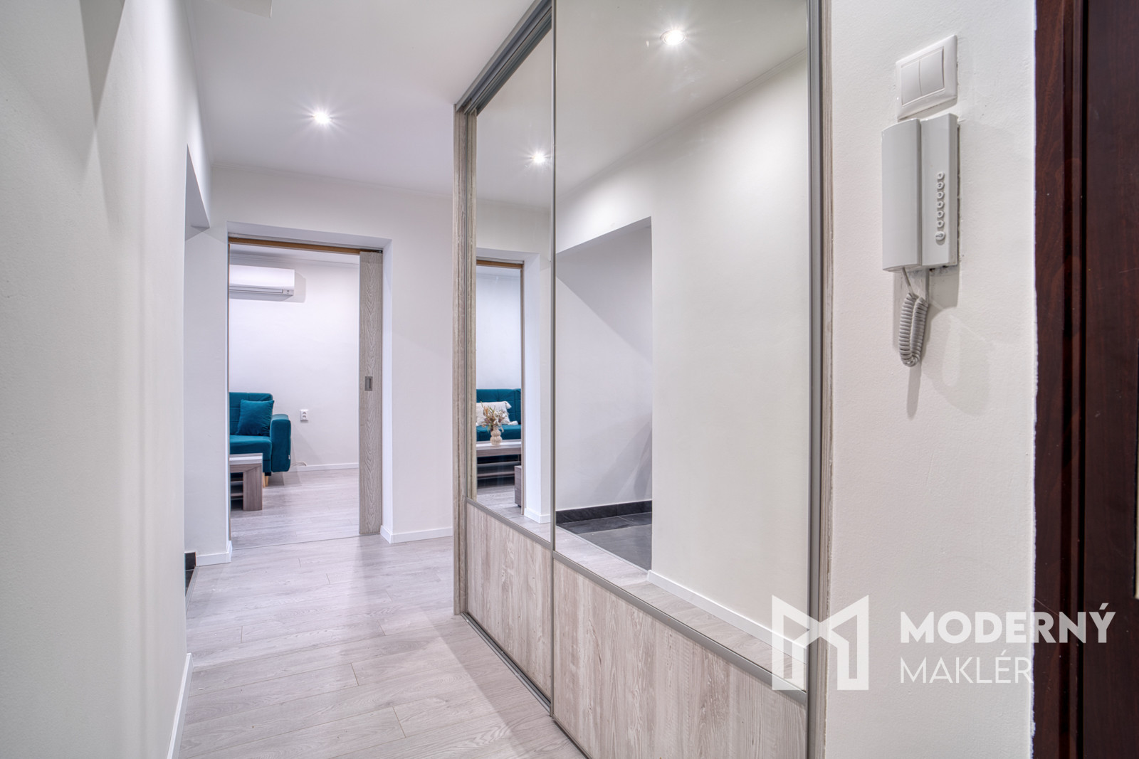 Byt je po rekonštrukcii, s novým nábytkom. K dispozícií sú aj vonkajšie elektrické žalúzie. Vykurovanie a ohrev vody je prostredníctvom vlastného plynového kotla. V obývačke je umiestnená klimatizácia.