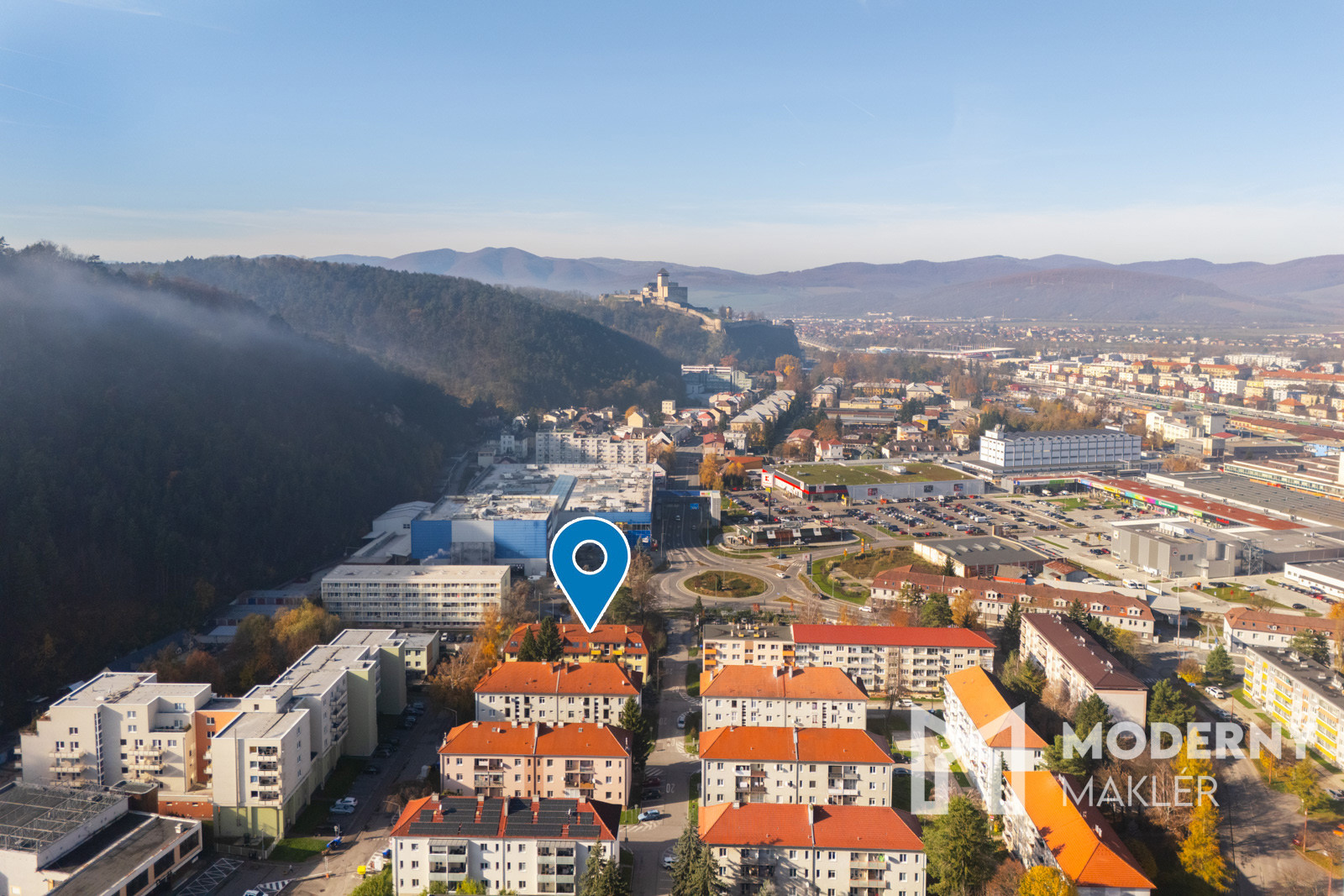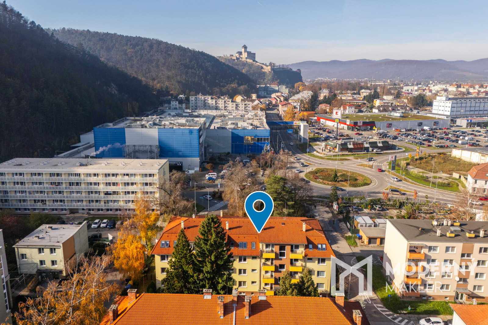 Metstká časť Pod Sokolica v Trenčíne ponúka kompletnú občiansku vybavenosť s výbornou dostupnosťou na pešo, kde nájdete zastávky mestskej hromadnej dopravy, nákupné centrá, reštaurácie, školy aj škôlky v bezprostrednej blízkosti. Milovníci prírody ocenia jednoduchú dostupnosť do zelených oblastí, ideálnych na prechádzky a športové aktivity. Z bytu sa môžete tešiť z nádherného výhľadu na majestátny trenčiansky hrad a do centra mesta sa dostanete autom už za 3 minúty, čo zabezpečuje perfektné spojenie s mestským životom pri zachovaní pokojného bývania.