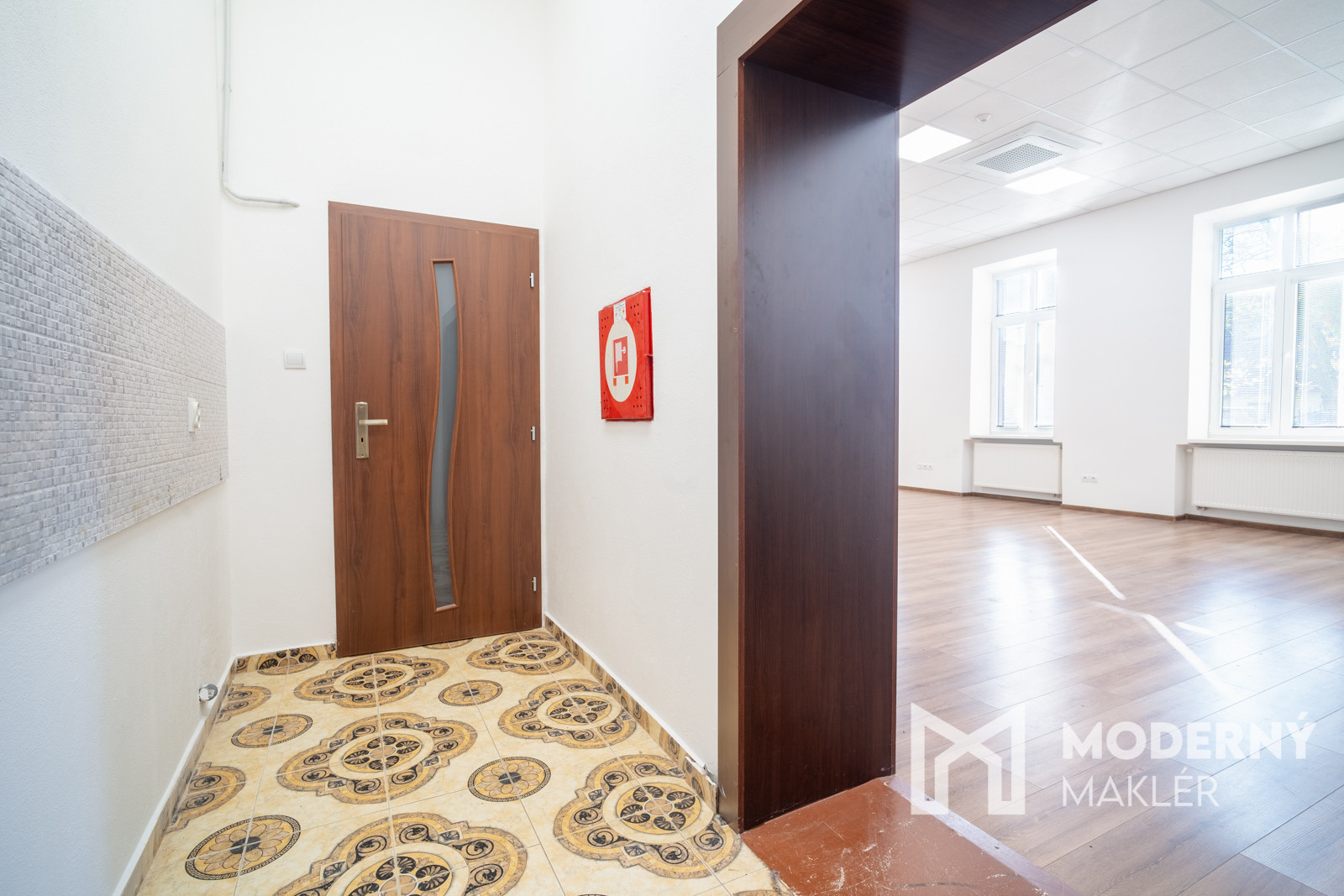 Zo vstupných dverí prejdete cez menšiu predsieň s predprípravou na kuchynku a samostatným WC priamo do kancelárie. Priestor sa prenajíma nezariadený, čo poskytuje nájomcovi úplnú slobodu pri zariaďovaní podľa vlastných predstáv a potrieb.