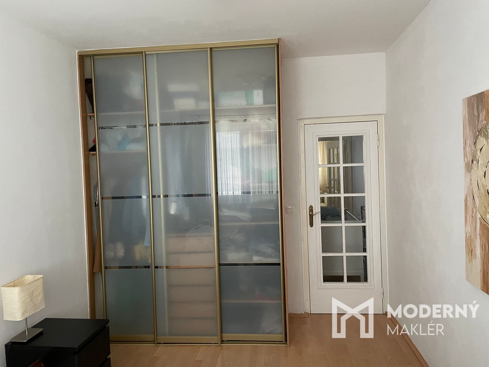 Nehnuteľnosť sa predáva čiastočne zariadená, čo novému majiteľovi ušetrí čas aj náklady na zariaďovanie. Kuchyňa je vybavená kvalitnou kuchynskou linkou so zabudovanými spotrebičmi, medzi ktoré patrí práčka, chladnička s mrazničkou, varná doska, mikrovlnná rúra a elektrická rúra. Obývacia časť ponúka rohovú sedačku s konferenčným stolíkom a obývačkovú zostavu, ktorá vytvára príjemnú oddychovú zónu. Spálňová izba je zariadená praktickým nábytkom so vstavanou skriňou a dvoma nočnými stolíkmi, čo poskytuje dostatok úložného priestoru aj komfortu.