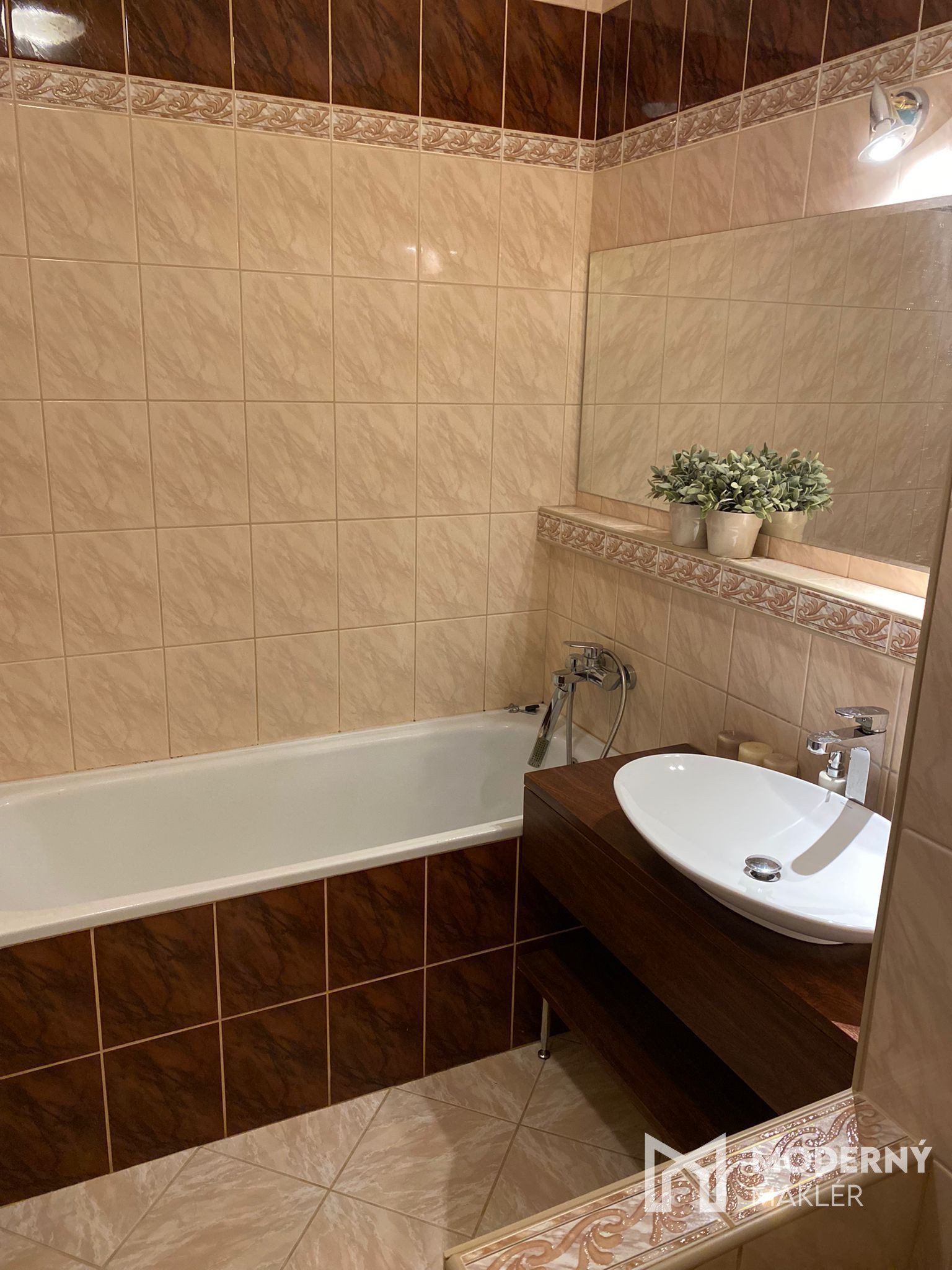 Nehnuteľnosť sa prenajíma čiastočne zariadená, čo novému majiteľovi ušetrí čas aj náklady na zariaďovanie. Kuchyňa je vybavená kvalitnou kuchynskou linkou so zabudovanými spotrebičmi, medzi ktoré patrí práčka, chladnička s mrazničkou, varná doska, mikrovlnná rúra a elektrická rúra. Obývacia časť ponúka rohovú sedačku s konferenčným stolíkom a obývačkovú zostavu, ktorá vytvára príjemnú oddychovú zónu. Spálňová izba je zariadená praktickým nábytkom so vstavanou skriňou a dvoma nočnými stolíkmi, čo poskytuje dostatok úložného priestoru aj komfortu.
