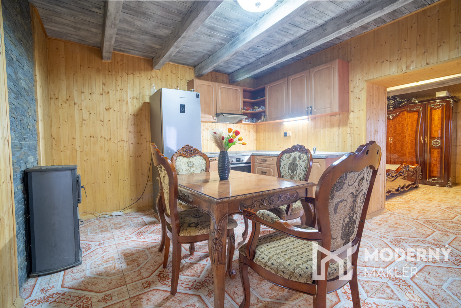 Chata sa predáva kompletne zariadená s autentickým historickým vyrezávaným nábytkom, ktorý dodáva priestorom jedinečný charakter a atmosféru. Kuchyňa je plne vybavená kuchynskou linkou aj všetkými potrebnými spotrebičmi pre pohodlné bývanie. K dispozícii sú dve funkčné kúpeľne, každá vybavená sprchovacím kútom, umývadlom a WC. Celkové zariadenie chaty umožňuje okamžité nasťahovanie bez potreby ďalších investícií do nábytku či vybavenia.