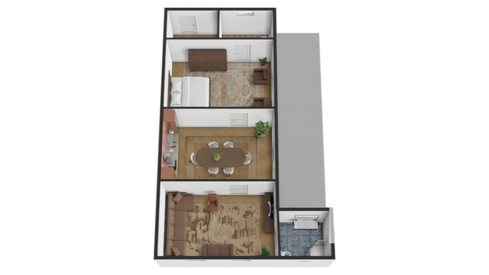 Nehnuteľnosť pozostáva z priestranných a prakticky riešených miestností. V dome nájdete plne zariadenú a funkčnú kuchyňu, ktorá je pripravená na okamžité použitie, svetlú obývaciu miestnosť pre relaxáciu a spoločenské chvíle, pokojnú spálňu pre kvalitný odpočinok a dve samostatné kúpeľne vybavené WC a sprchovým kútom, čo zabezpečuje pohodlie pre všetkých obyvateľov. Zvlášť sa nachádza vstup do technickej miestnosti, ktorá slúži ako ideálny sklad náradia a poskytuje dostatok úložného priestoru pre domáce potreby.
