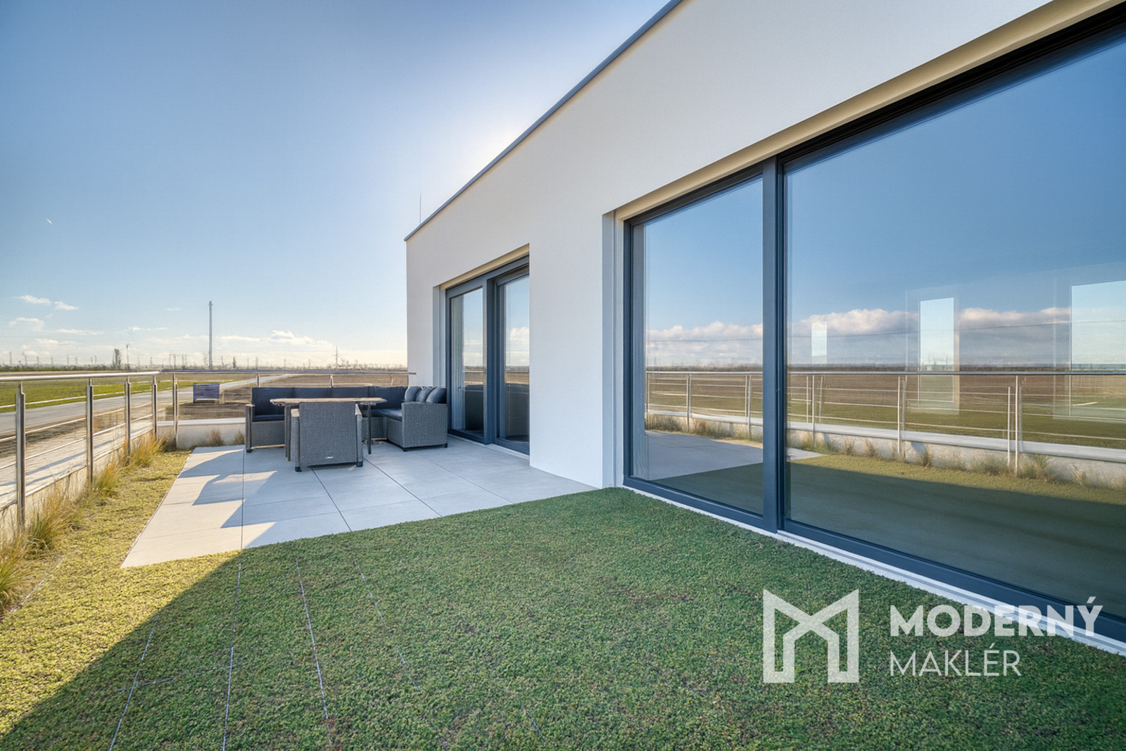 Na druhom podlaží sa nachádza priestranná kancelária (57,00 m²), predsieň (2,52 m²) a samostatné WC (1,80 m²). Z kancelárie je prístup na terasu so zelenou strechou (39 m²), ktorá vytvára atraktívny priestor na oddych, reprezentáciu aj neformálne pracovné stretnutia.
