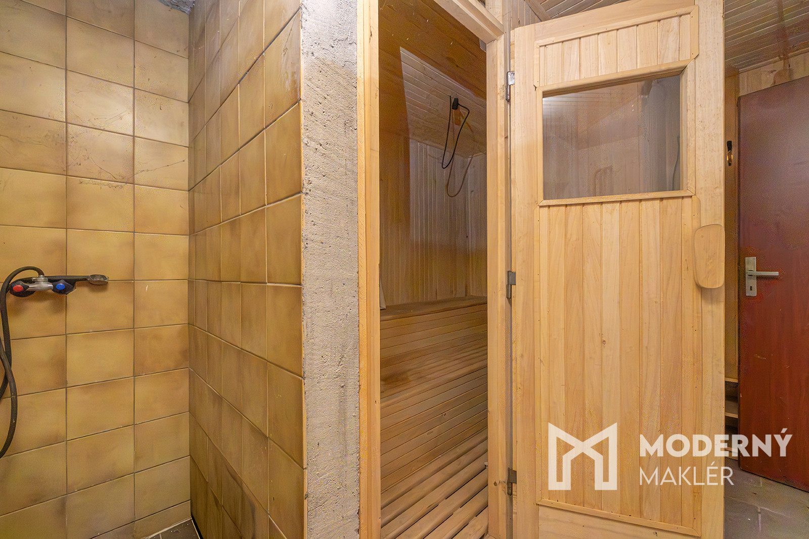 Dispozičné riešenie nehnuteľnosti je premyslené tak, aby spĺňalo nároky na pohodlné bývanie aj praktické využitie priestoru. Ešte pred vstupom do domu sa nachádza priestranná garáž. Po vstupe sa po pravej strane nachádza kuchyňa, odkiaľ priestorom prechádzame cez jedáleň a obývačku. V obývačke sa nachádza nádherný kachľovec, ktorý sa bude vynímať aj v modernom dizajne. Po ľavej strane sa nachádza schodisko, ktorým sa dostaneme na horné podlažie, ktoré disponuje 4 miestnosťami, samostatným WC a priestrannou kúpeľňou. Hlavná spálňa disponuje balkónom s výhľadom na ulicu a výstupom na povalu. Suterén ponúka práčovňu, oddychovú miestnosť s možnosťou prerobenia na telocvičňu, a tiež saunu.