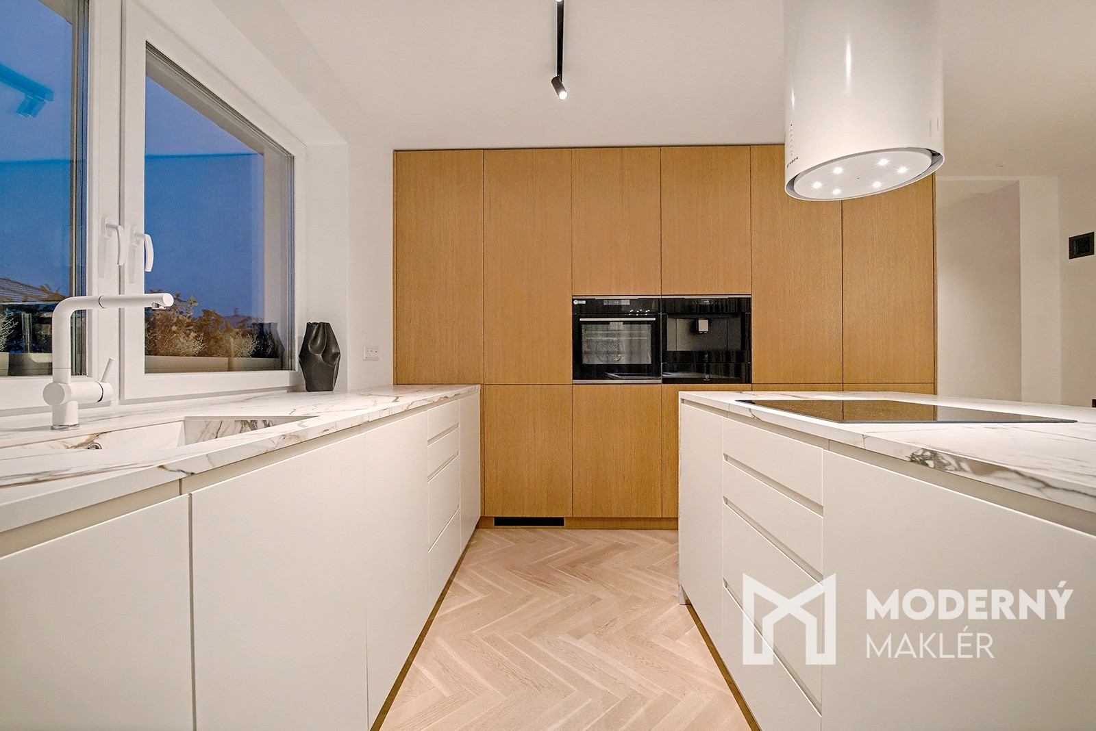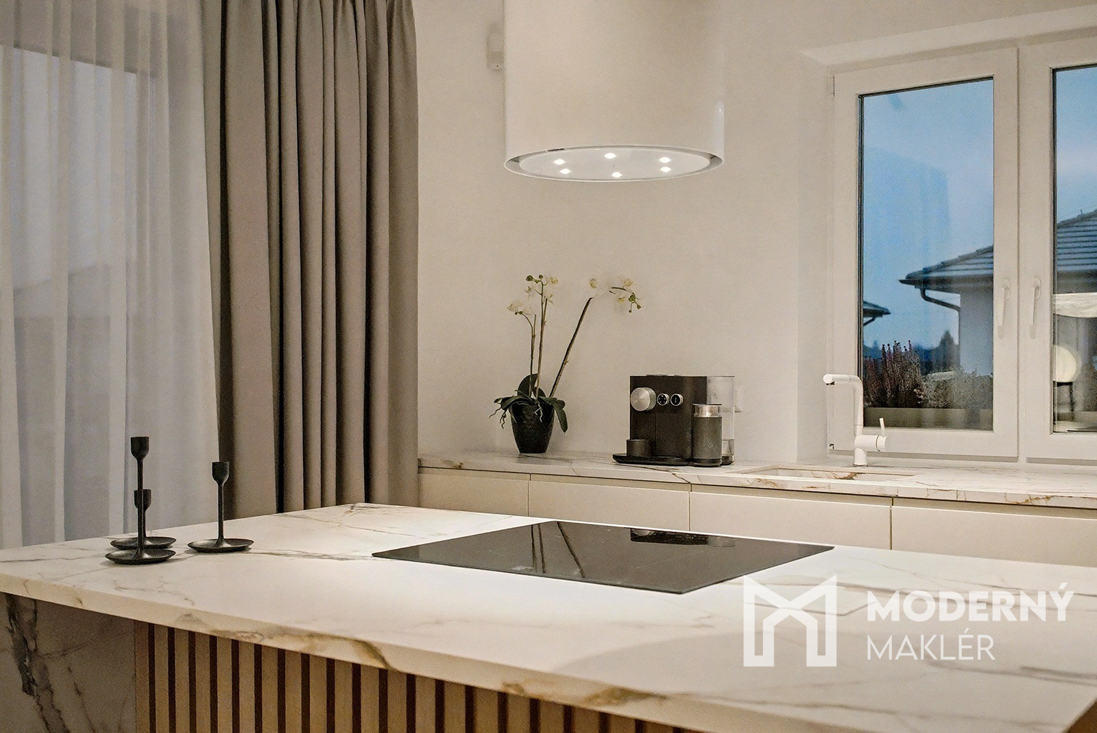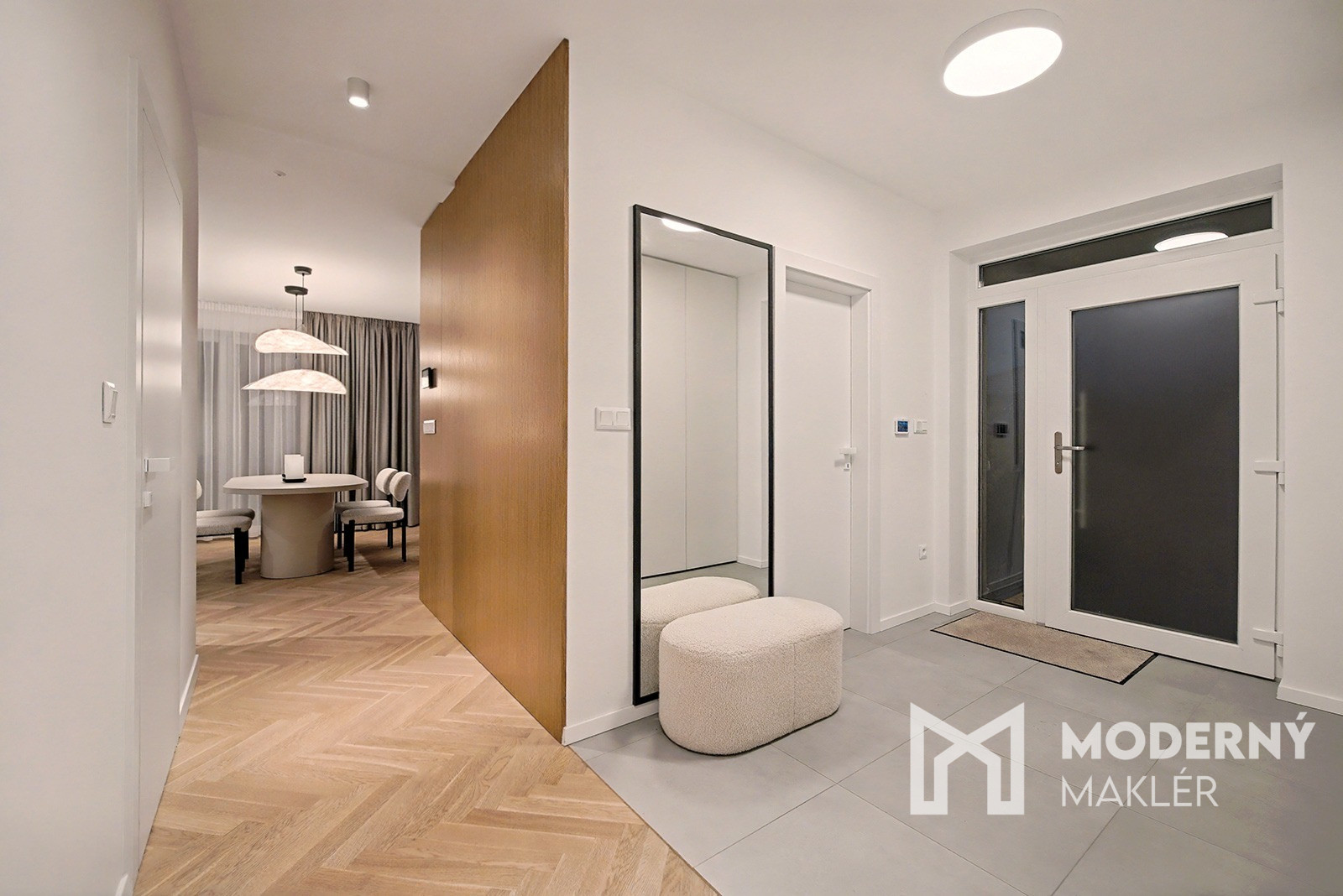 Výnimočná kvalita nehnuteľnosti v Hviezdoslavove, ktorá má prepracovanú a premyslenú dispozíciu. Kompletné zariadenie interiéru odráža veľký vkus majiteľov a zároveň zdôrazňuje praktické riešenia pre každodenný život, zatiaľ čo exteriér nehnuteľnosti dopĺňa celkový luxusný dojem. Mimoriadnou pridanou hodnotou je umiestnenie na súkromnej ulici, ktorá zaručuje absolútnu bezpečnosť a pokojný život, čo je ideálne najmä pre rodiny s deťmi. Celý areál vyniká svojou vzornou vybavenosťou, čistotou a eleganciou na každom kroku, pričom lokalita ponúka výbornú občiansku vybavenosť a vynikajúcu dostupnosť do hlavného mesta Bratislavy, čo z nehnuteľnosti robí skutočne výnimočnú príležitosť.