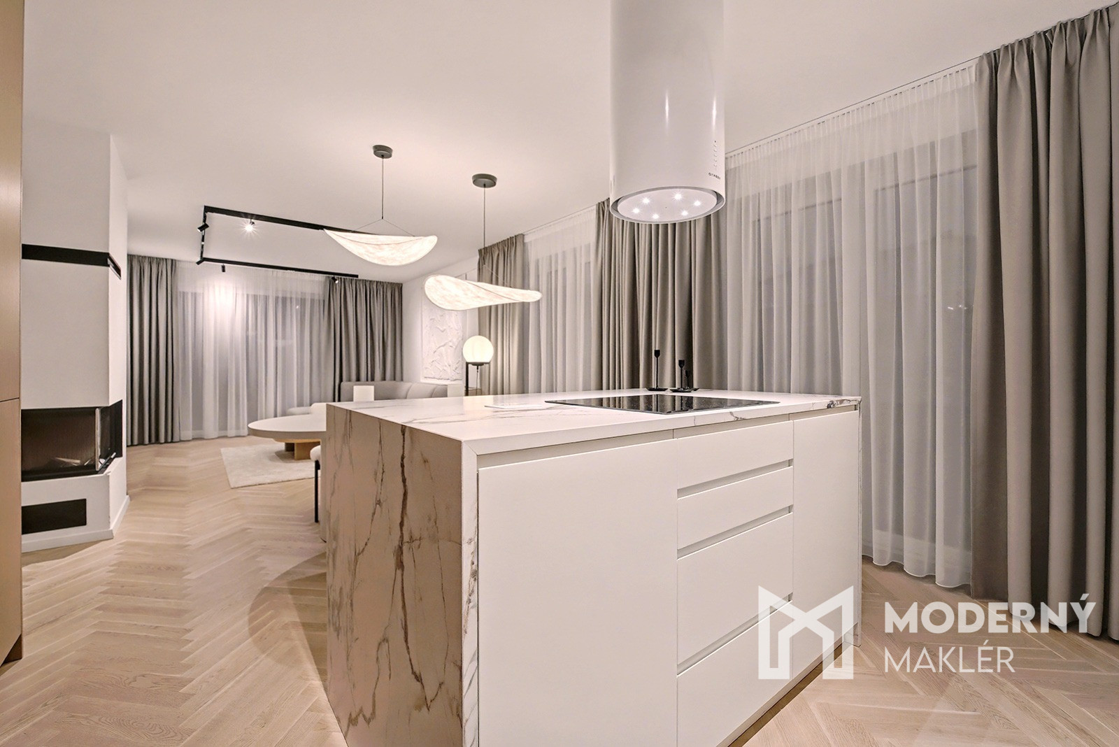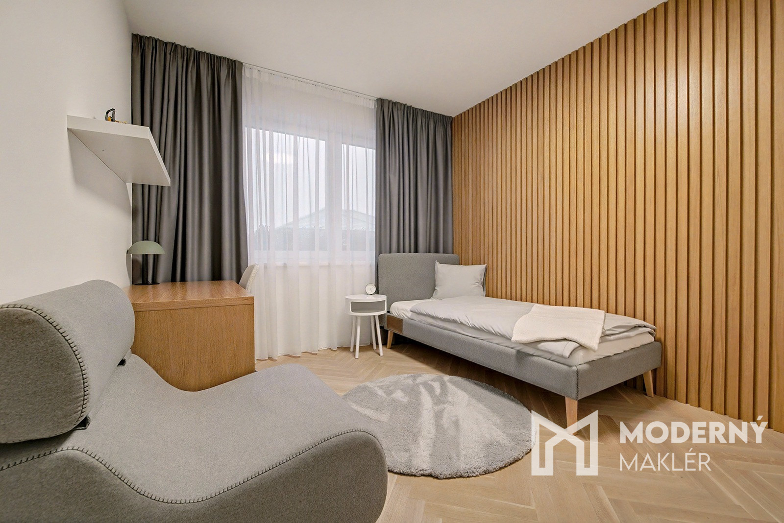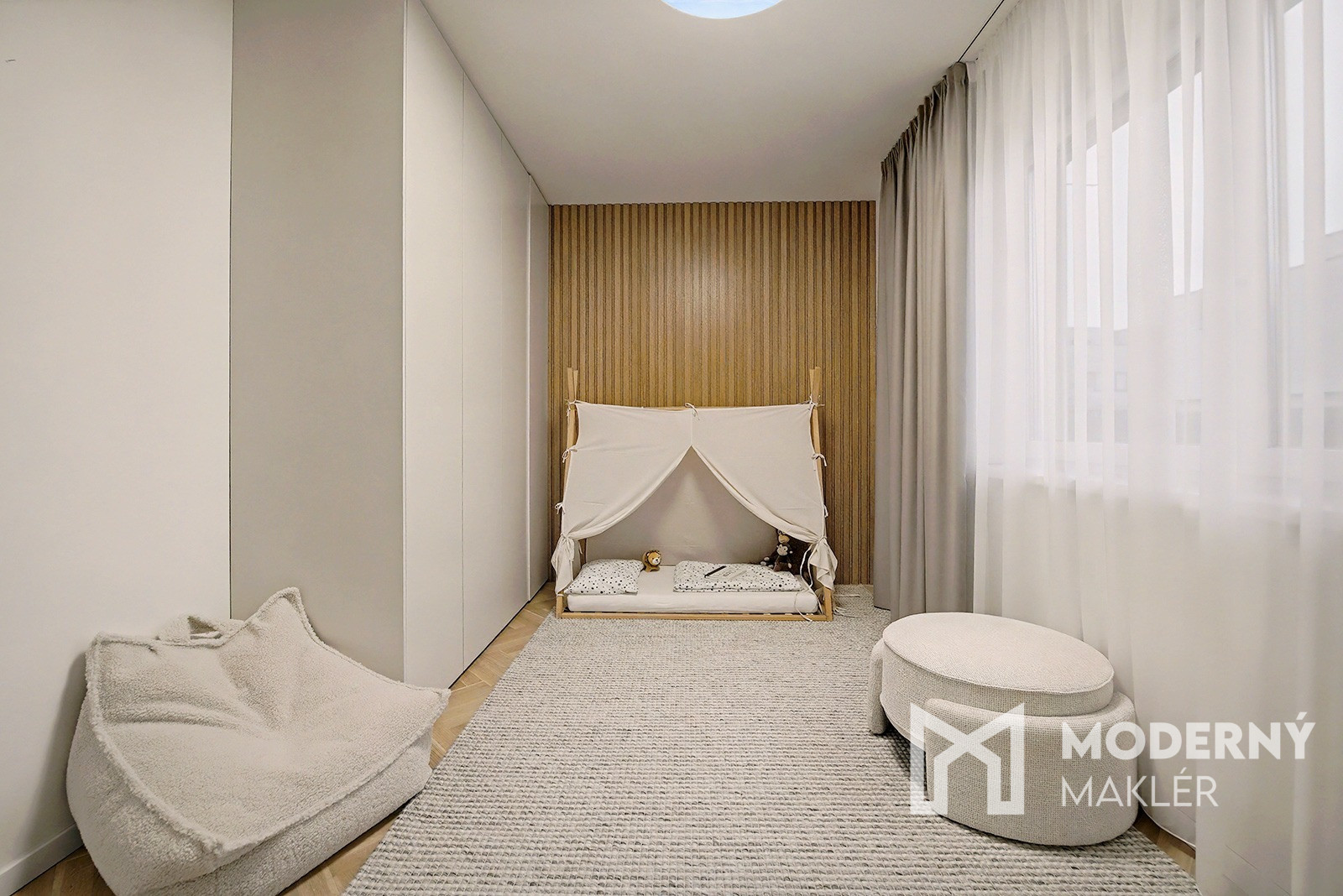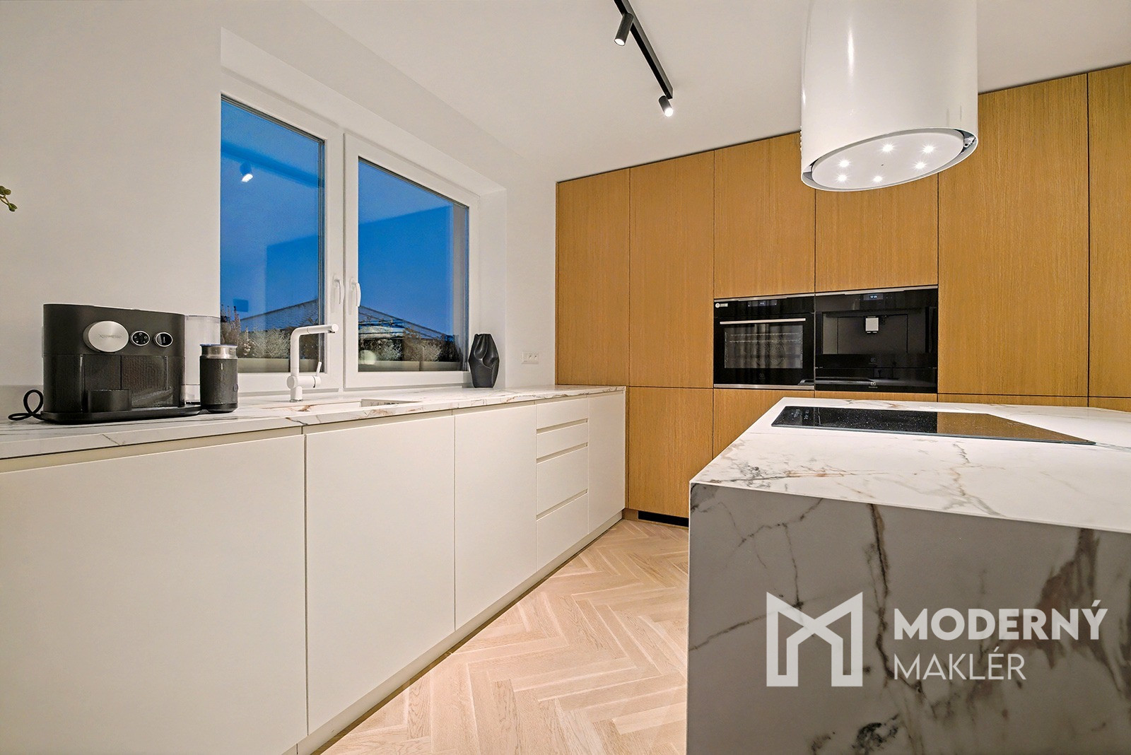 Výnimočná kvalita nehnuteľnosti v Hviezdoslavove, ktorá má prepracovanú a premyslenú dispozíciu. Kompletné zariadenie interiéru odráža veľký vkus majiteľov a zároveň zdôrazňuje praktické riešenia pre každodenný život, zatiaľ čo exteriér nehnuteľnosti dopĺňa celkový luxusný dojem. Mimoriadnou pridanou hodnotou je umiestnenie na súkromnej ulici, ktorá zaručuje absolútnu bezpečnosť a pokojný život, čo je ideálne najmä pre rodiny s deťmi. Celý areál vyniká svojou vzornou vybavenosťou, čistotou a eleganciou na každom kroku, pričom lokalita ponúka výbornú občiansku vybavenosť a vynikajúcu dostupnosť do hlavného mesta Bratislavy, čo z nehnuteľnosti robí skutočne výnimočnú príležitosť.