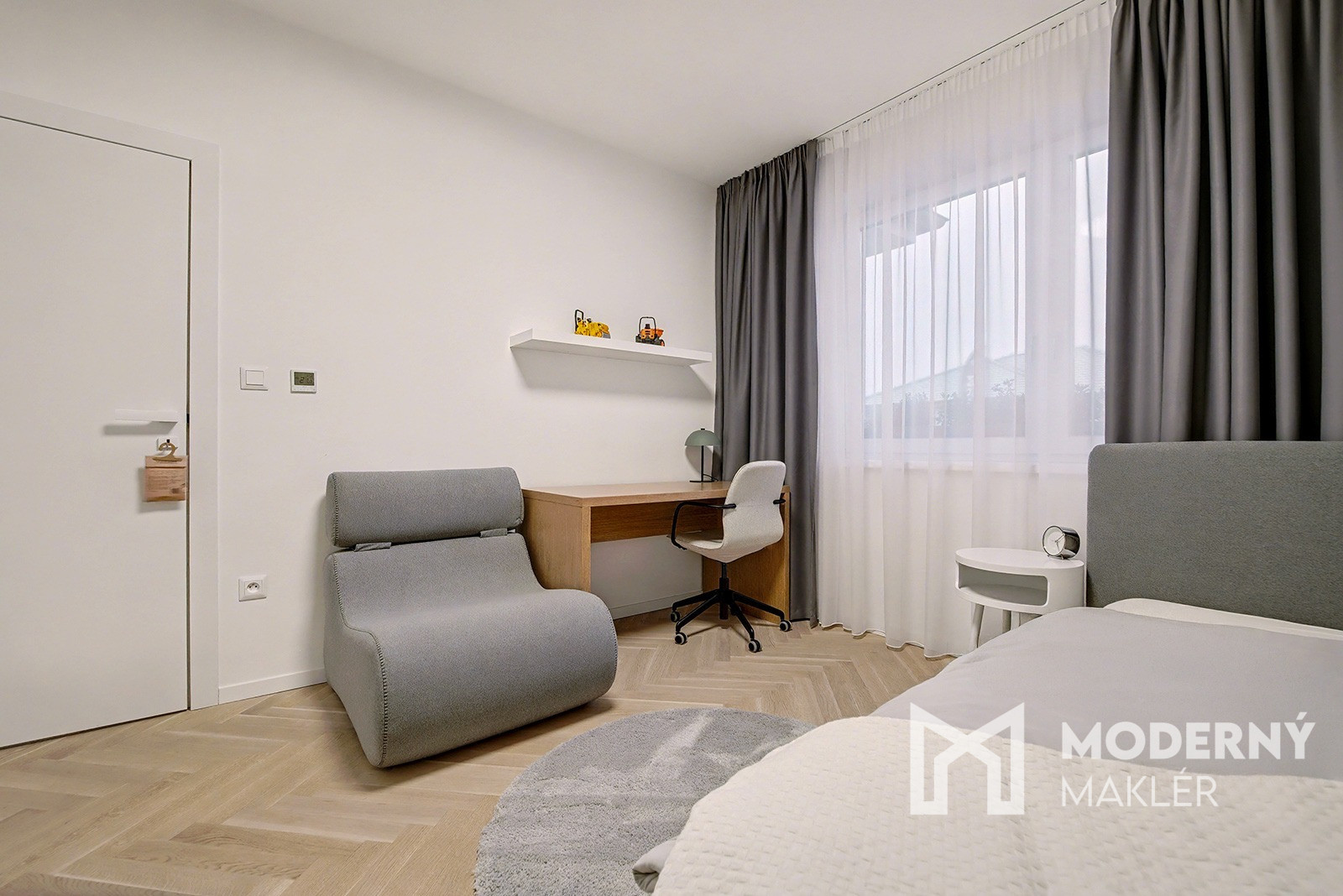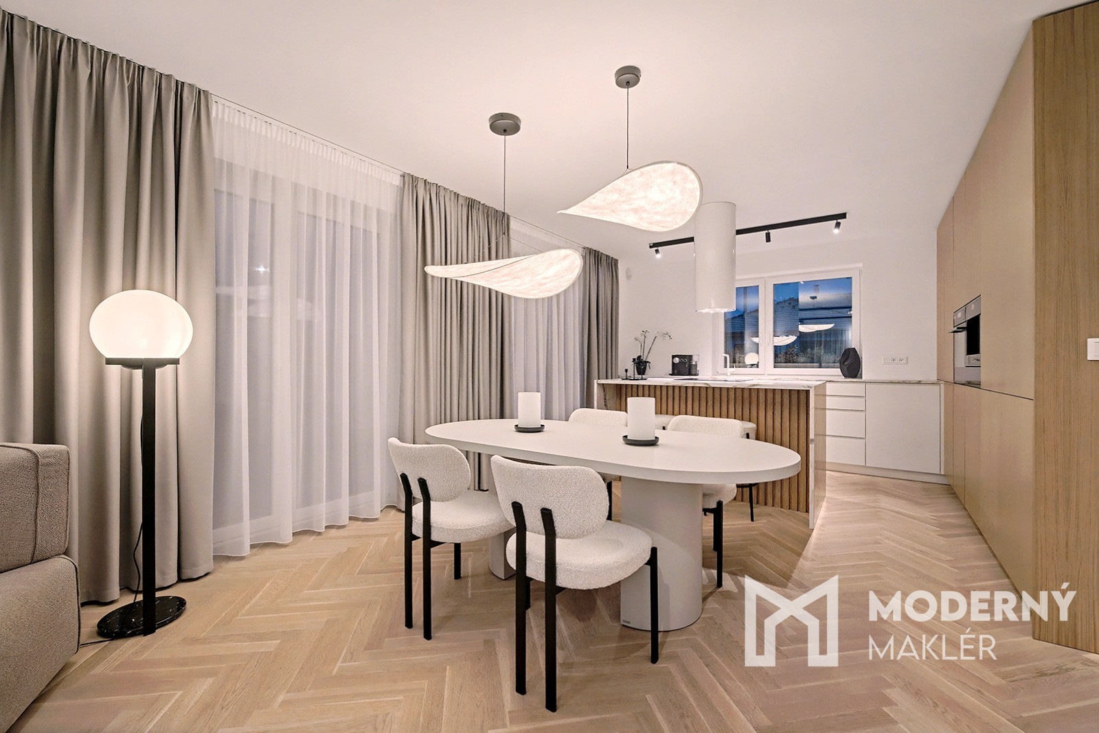 Moderný maklér ponúka na predaj nadštandardnú novostavbu 5-izbového rodinného domu v Hviezdoslavove. Nehnuteľnosť disponuje kvalitným nábytkom na mieru a premyslenou dispozíciou, ktorá prináša maximálny komfort pre celú rodinu. Dom navyše disponuje aj 7-ročnou zárukou. Lokalita sa vyznačuje výbornou dostupnosťou do Bratislavy, vďaka čomu je ideálnou voľbou pre tých, ktorí hľadajú pokojné bývanie s rýchlym spojením do mesta.