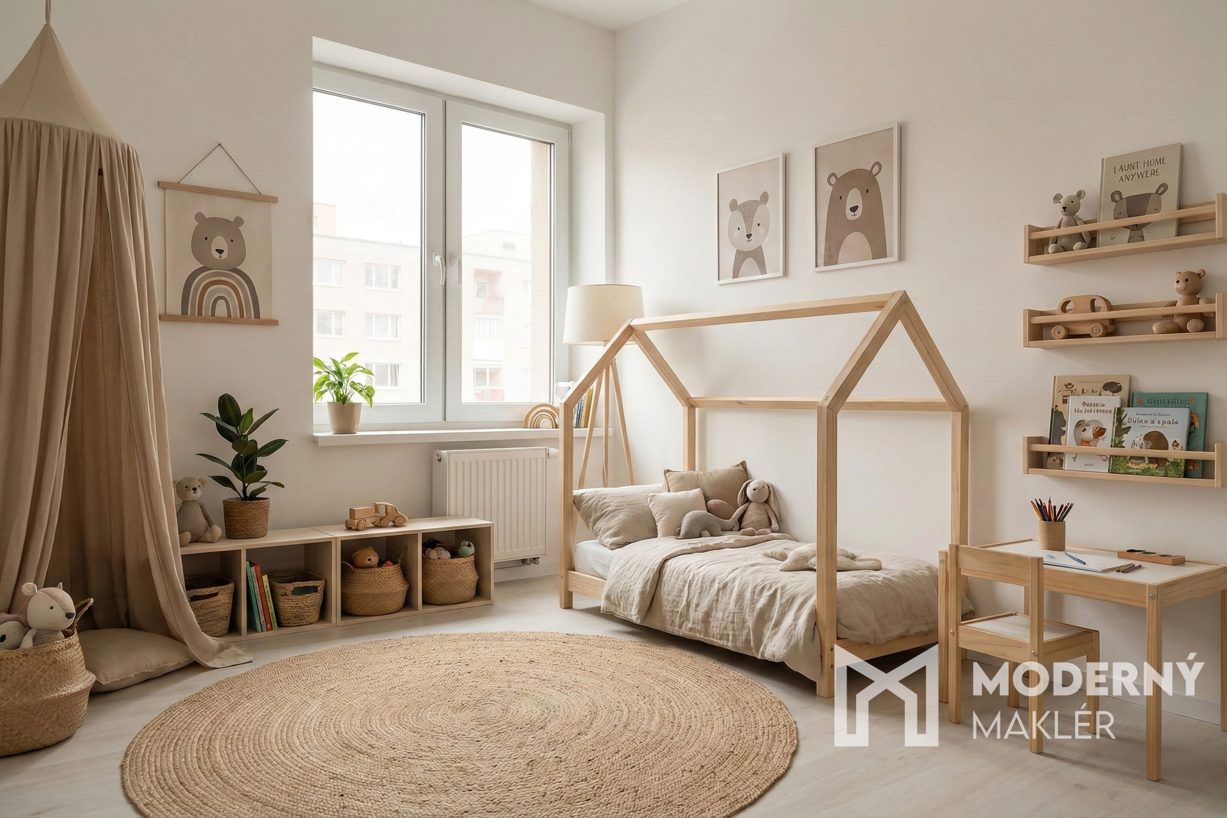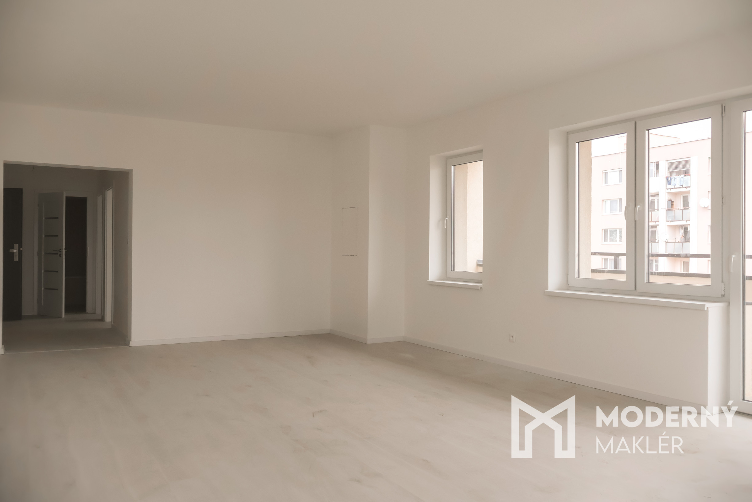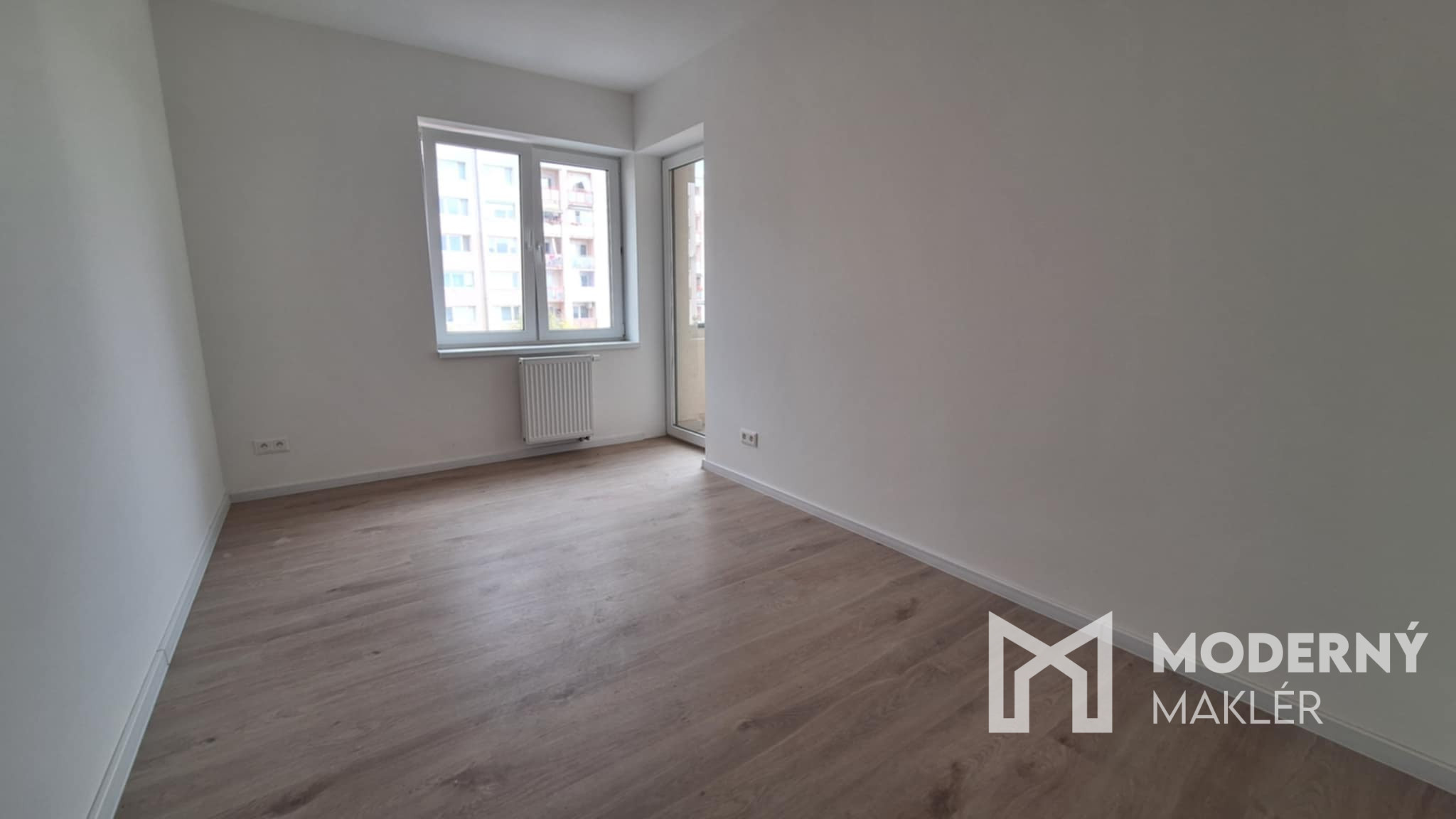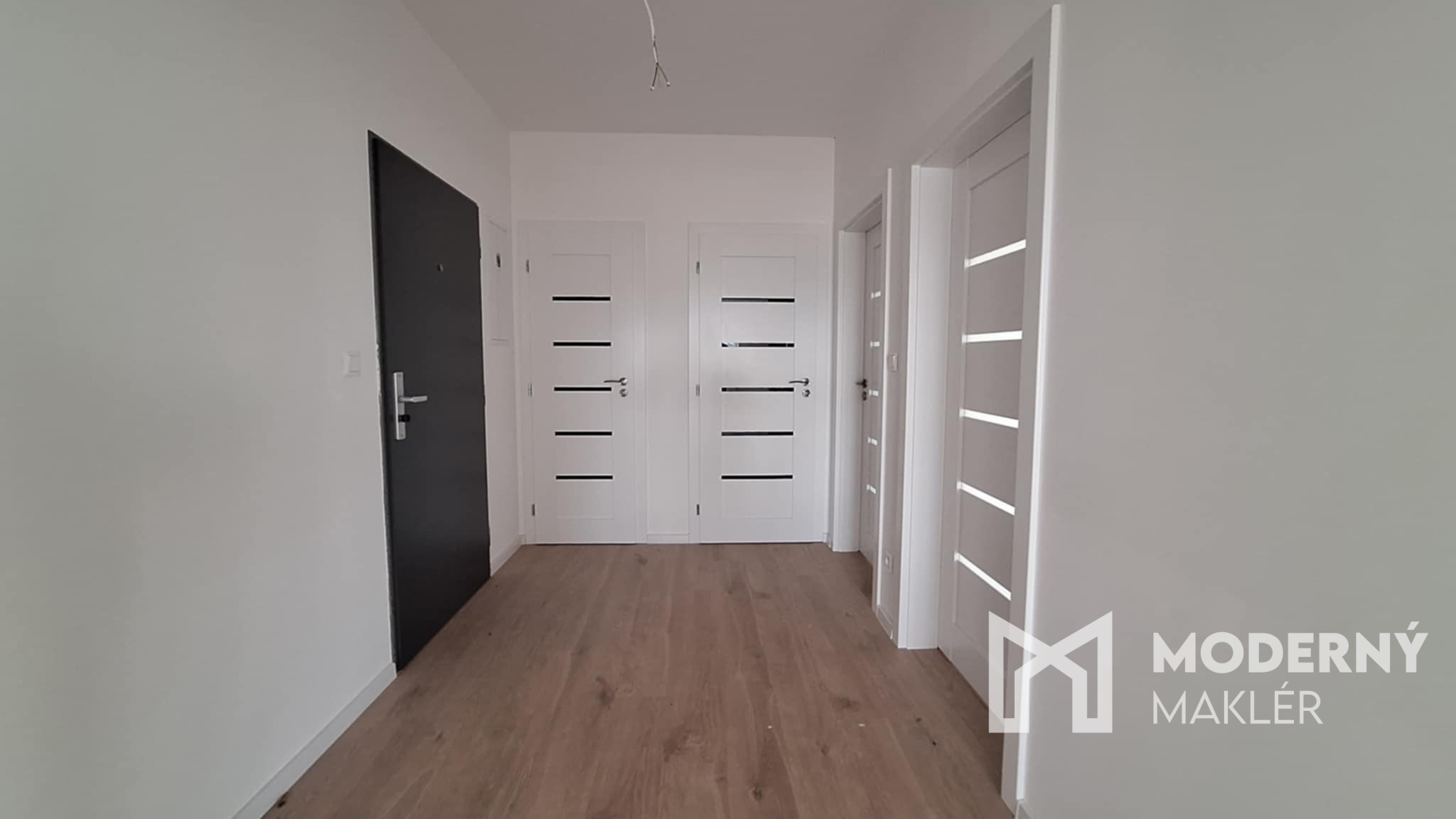 Byt sa predáva nezariadený a skladá sa zo vstupnej chodby, samostatného WC, kúpeľne s vaňou, priestrannej spálne, detskej izby s východom na balkón, ako aj priestrannej kuchyne s obývacou časťou, ktorá má takisto prístup na balkón. Detská izba spolu s obývacou časťou sú orientované smerom k balkónu, čo zabezpečuje dostatočné prirodzené osvetlenie priestorov.
