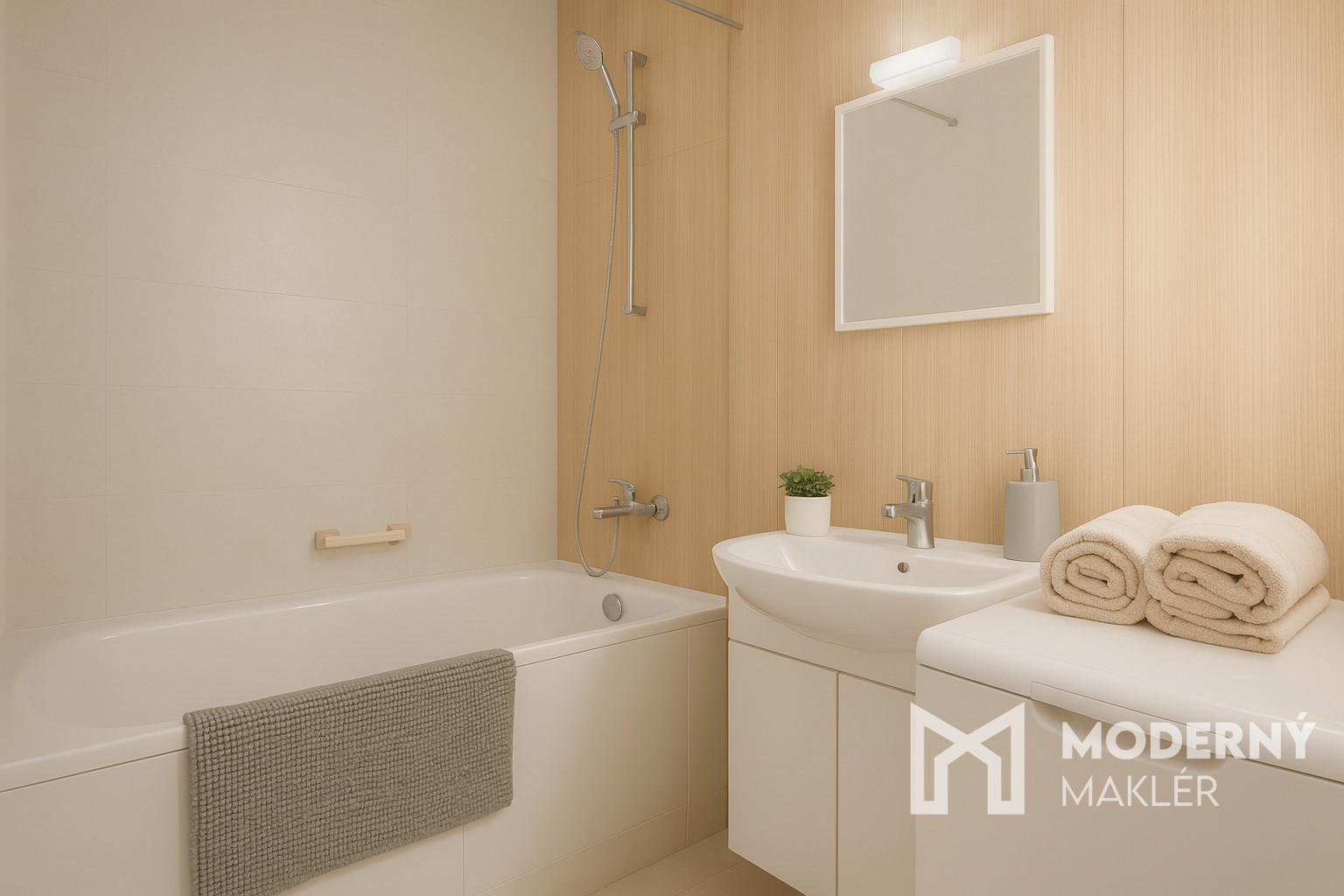 Byt sa skladá z priestrannej vstupnej chodby. Nachádza sa tu praktická špajza poskytujúca dostatok úložného priestoru. Kuchyña je orientovaná na západ a ponúka príjemné svetelné podmienky počas popoludnia. Veľká obývačka, taktiež orientovaná na západ, má výstup na priestranný balkón, ktorý rozširuje obytnú plochu a poskytuje možnosť vonkajšieho relaxu. V byte nájdete kúpeľňu s vaňou pre pohodlnú relaxáciu a samostatné WC pre zvýšený komfort. Súčasťou bytu je spálňa orientovaná na východ, ktorá vám zabezpečí príjemné ranné prebúdzanie s prirodzeným svetlom. Nachádza sa tu aj ďalšia izba orientovaná na východ, ktorá môže slúžiť ako pracovňa, detská izba alebo hosťovská izba podľa vašich potrieb.