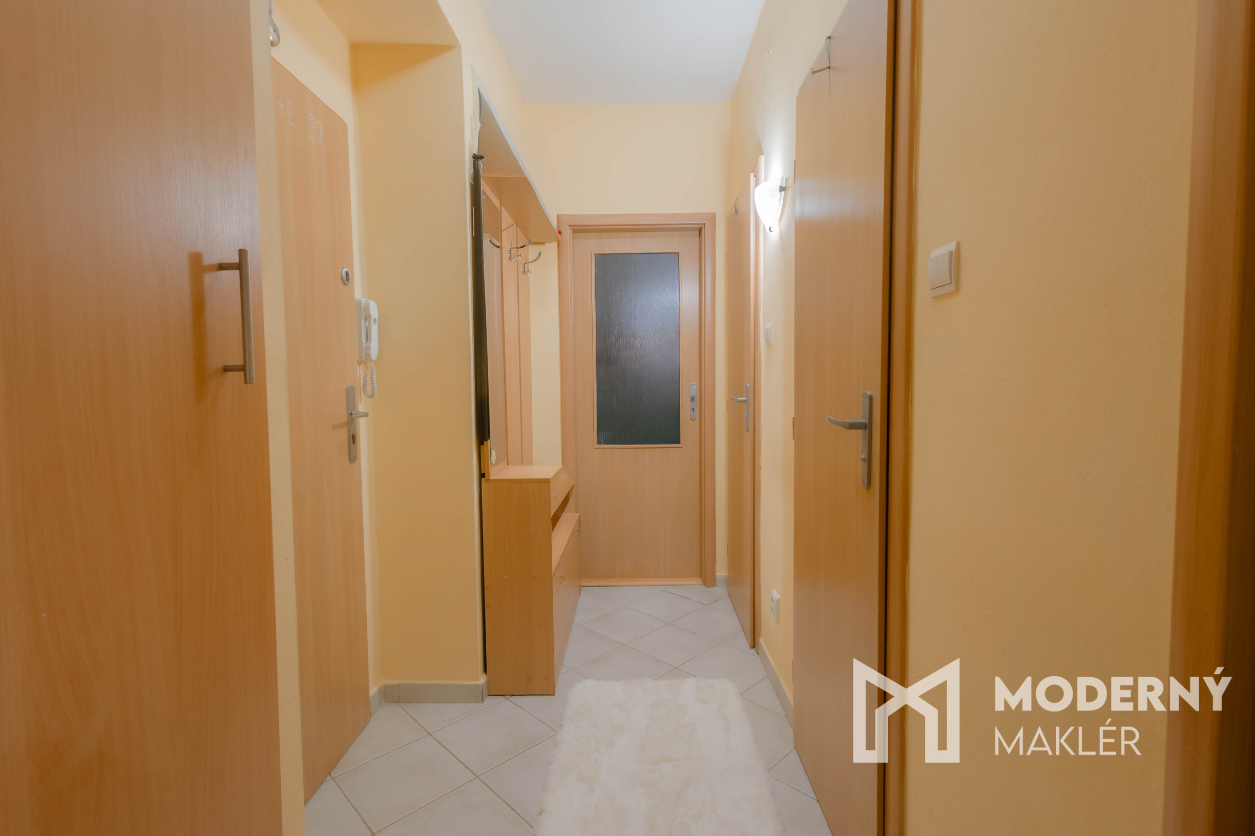 Byt pozostáva zo vstupnej chodby, ktorá vás privíta hneď po vstupe do nehnuteľnosti. Nachádza sa tu priestranná spálňa ponúkajúca dostatok priestoru na oddych. Byt disponuje kúpeľňou so sprchovým kútom a samostatným WC pre vyšší komfort. Hlavný obytný priestor tvorí veľká obývacia izba orientovaná na západ, ktorá poskytuje príjemné miesto na relax aj trávenie voľného času. Kuchyňa je prakticky oddelená od obývačky, čo umožňuje pohodlnú prípravu jedál a efektívne využitie priestoru.