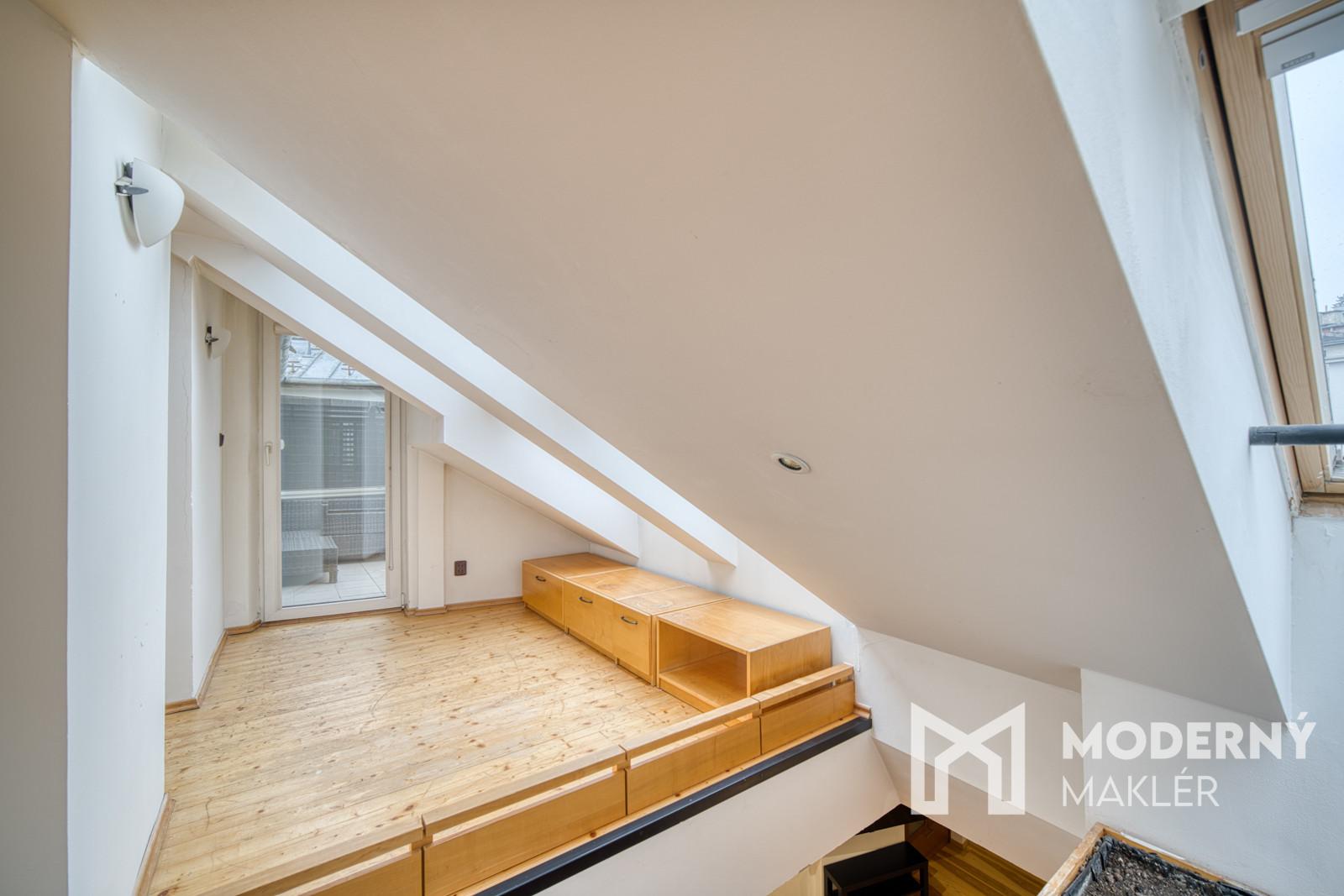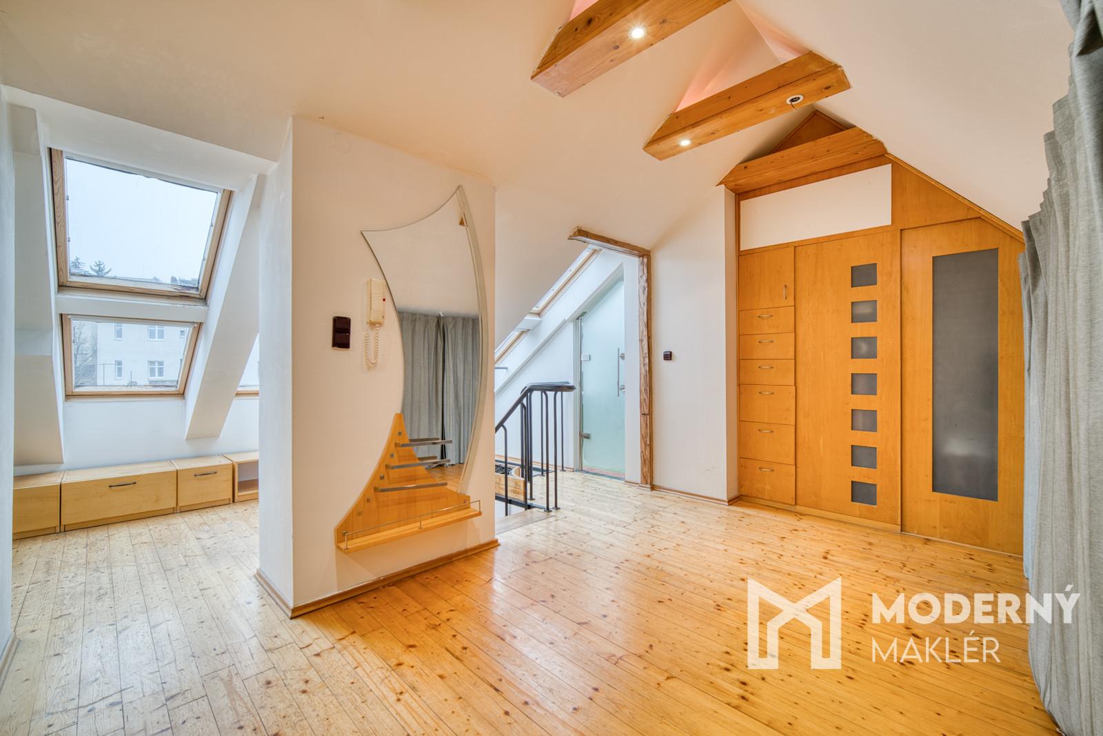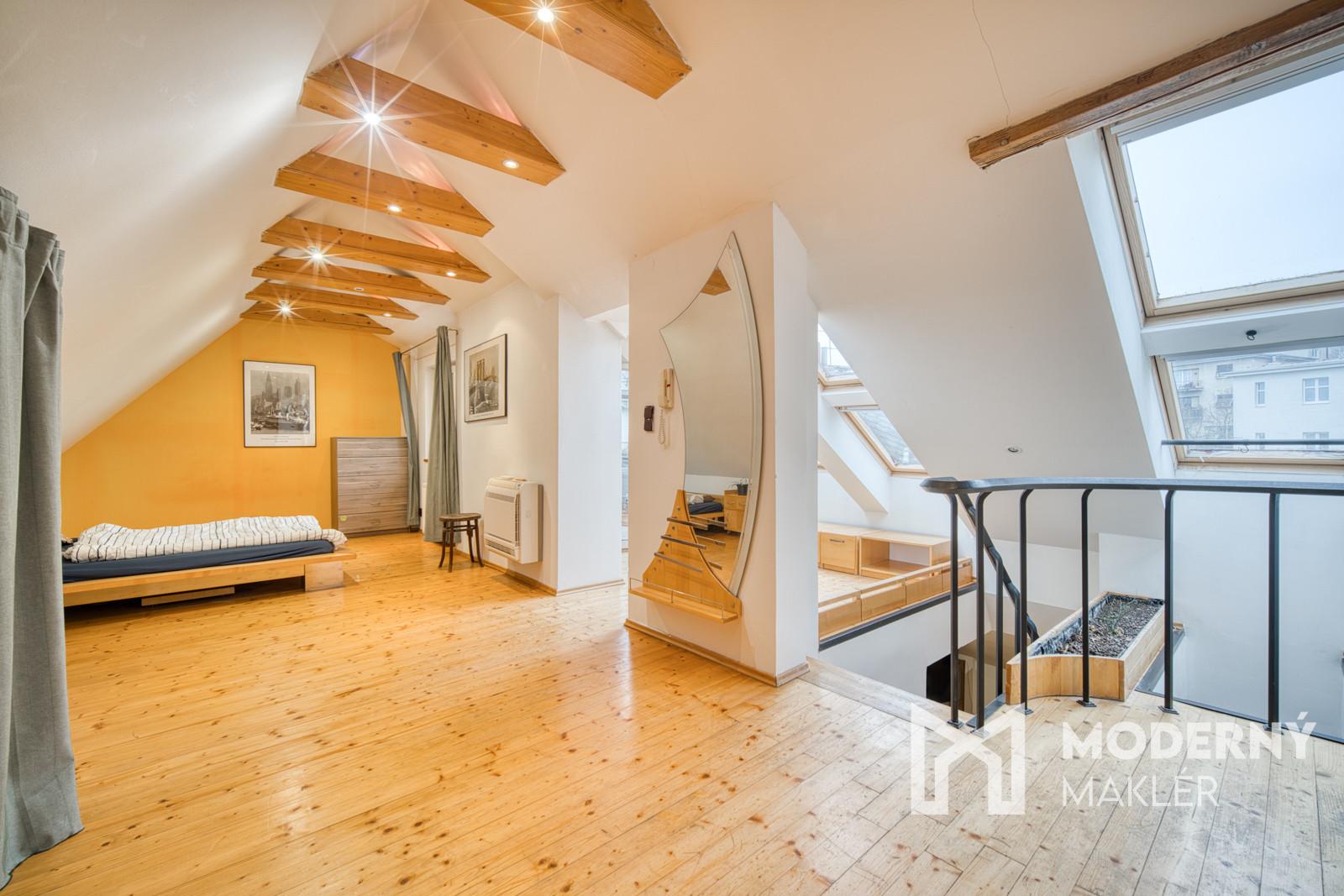 Moderný maklér ponúka exkluzívne na predaj jedinečný open-space podkrovný mezonet na Puškinovej ulici v Bratislave – Starom Meste. Tento originálny 115 m² veľký priestor v historickej budove je ako stvorený pre kreatívnych ľudí, ktorí si chcú vytvoriť vlastné bývanie na prestížnej adrese v centre mesta. Vďaka otvorenej dispozícii a vysokým šikmým stropom poskytuje nehnuteľnosť mimoriadnu slobodu pri tvorbe ideálneho domova či investičného projektu. Súčasťou inzerátu sú aj vizualizácie pre inšpiráciu ako sa dá byt prerobiť na 3-izbový.