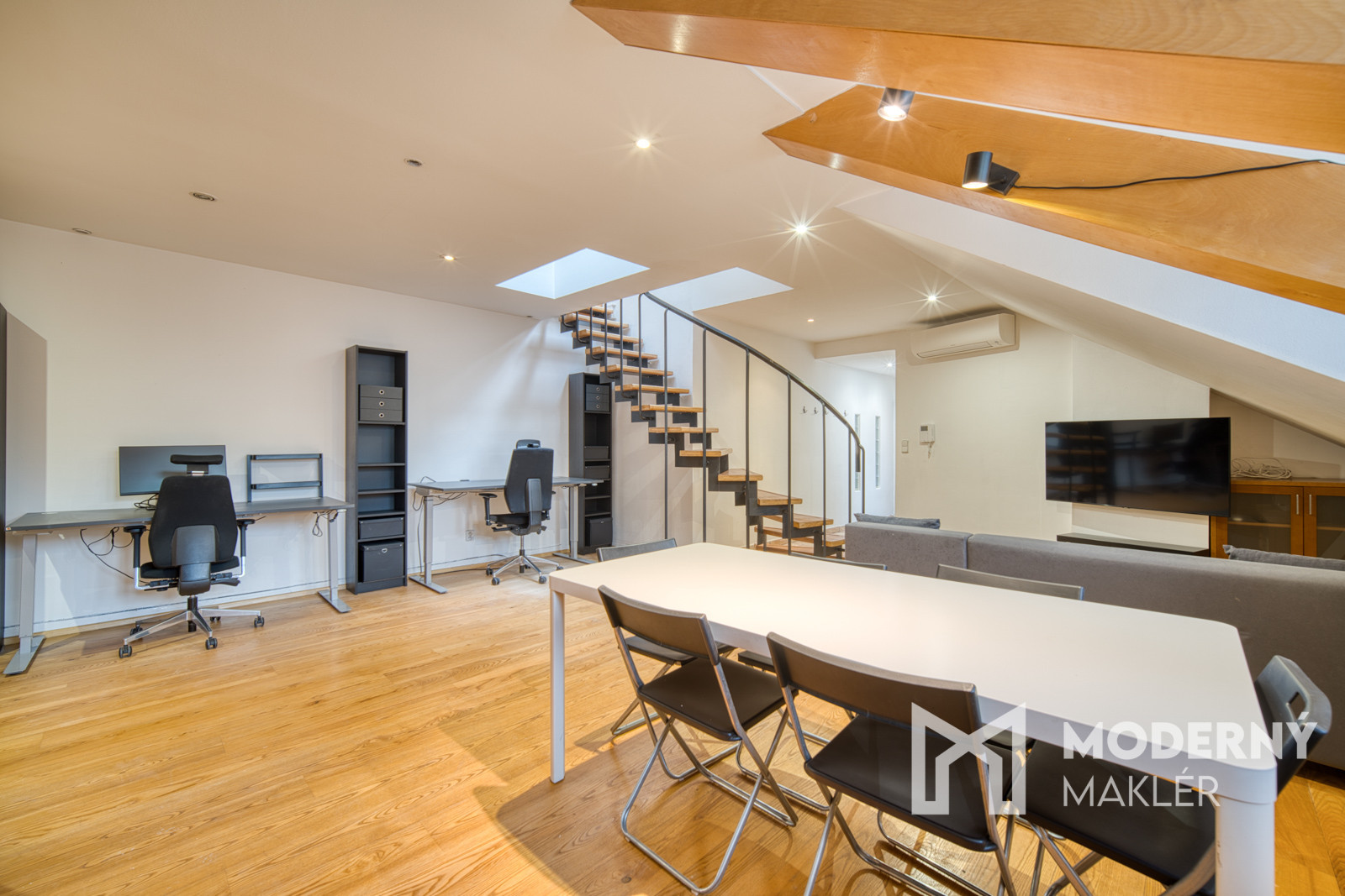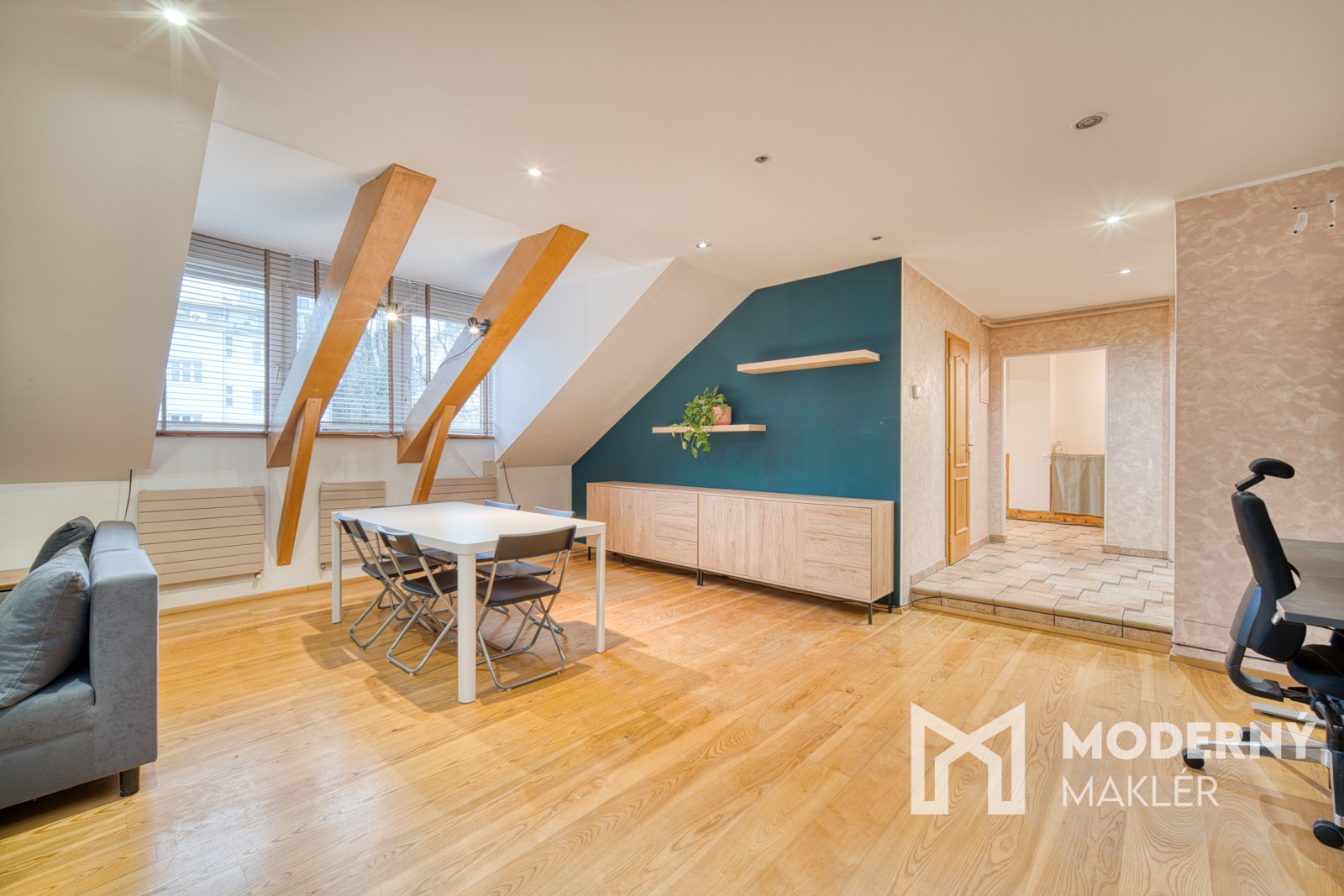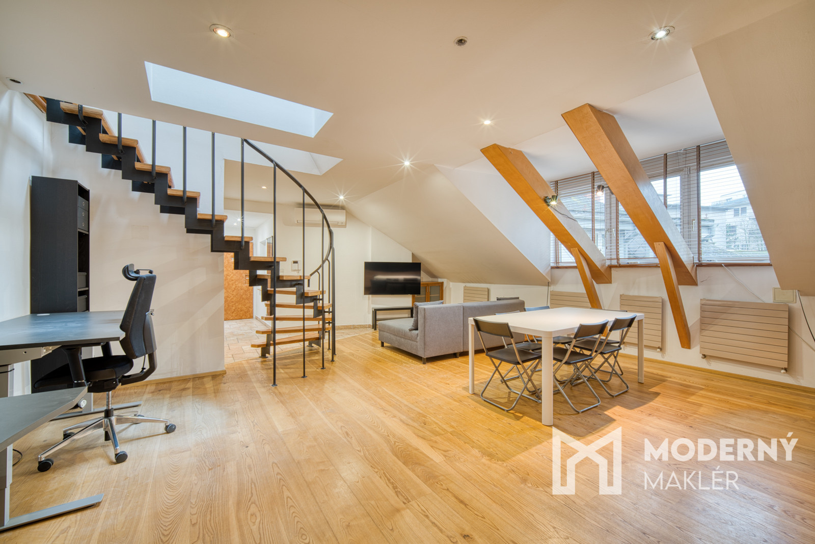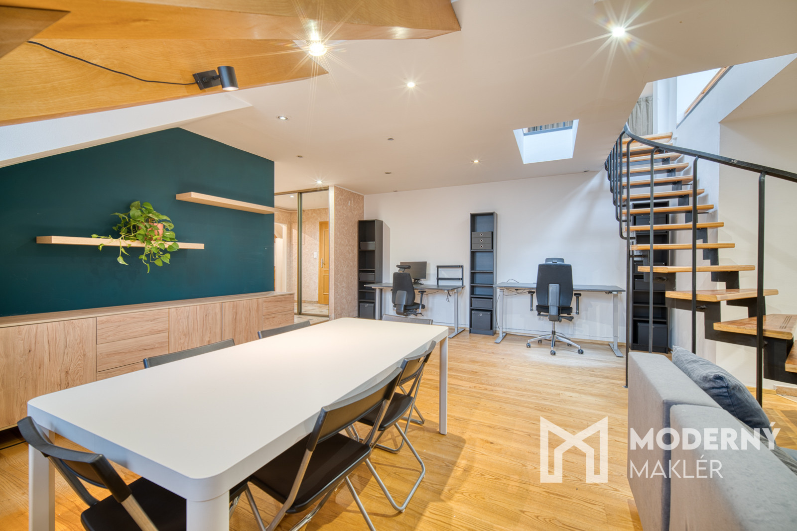 Moderný maklér ponúka exkluzívne na predaj jedinečný open-space podkrovný mezonet na Puškinovej ulici v Bratislave – Starom Meste. Tento originálny 115 m² veľký priestor v historickej budove je ako stvorený pre kreatívnych ľudí, ktorí si chcú vytvoriť vlastné bývanie na prestížnej adrese v centre mesta. Vďaka otvorenej dispozícii a vysokým šikmým stropom poskytuje nehnuteľnosť mimoriadnu slobodu pri tvorbe ideálneho domova či investičného projektu. Súčasťou inzerátu sú aj vizualizácie pre inšpiráciu ako sa dá byt prerobiť na 3-izbový.