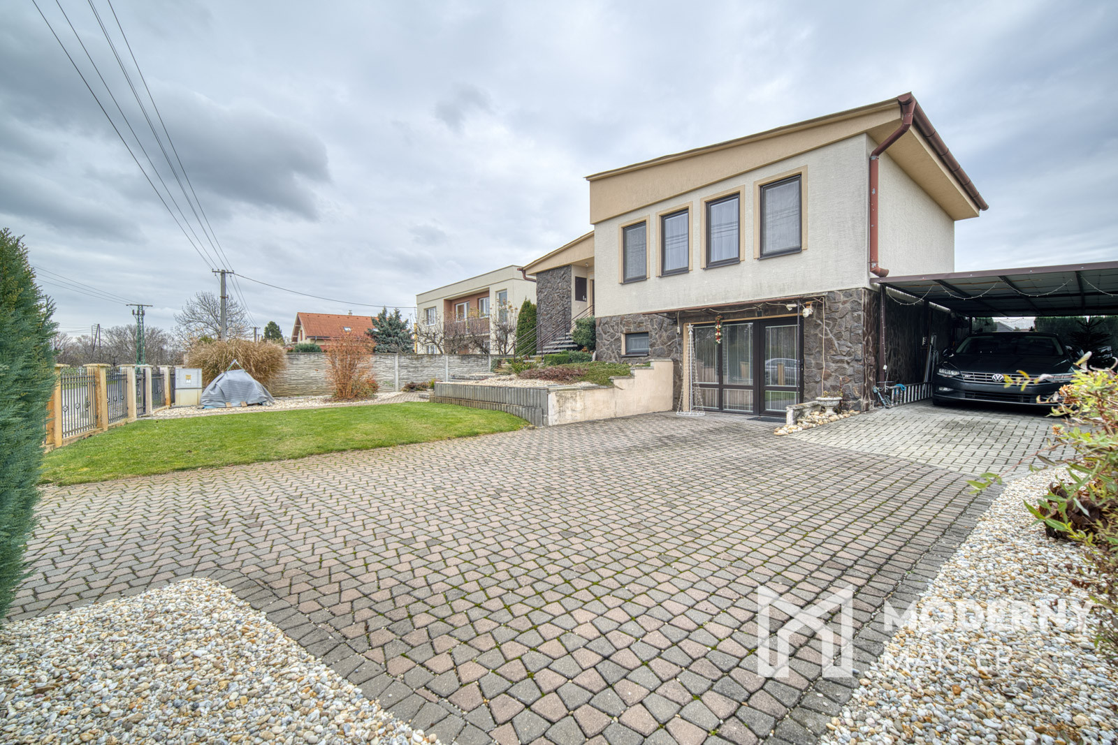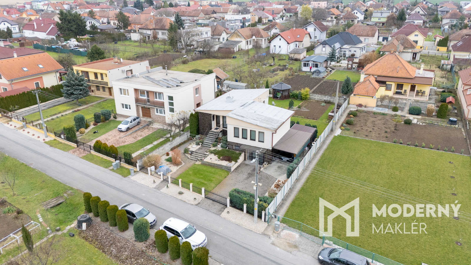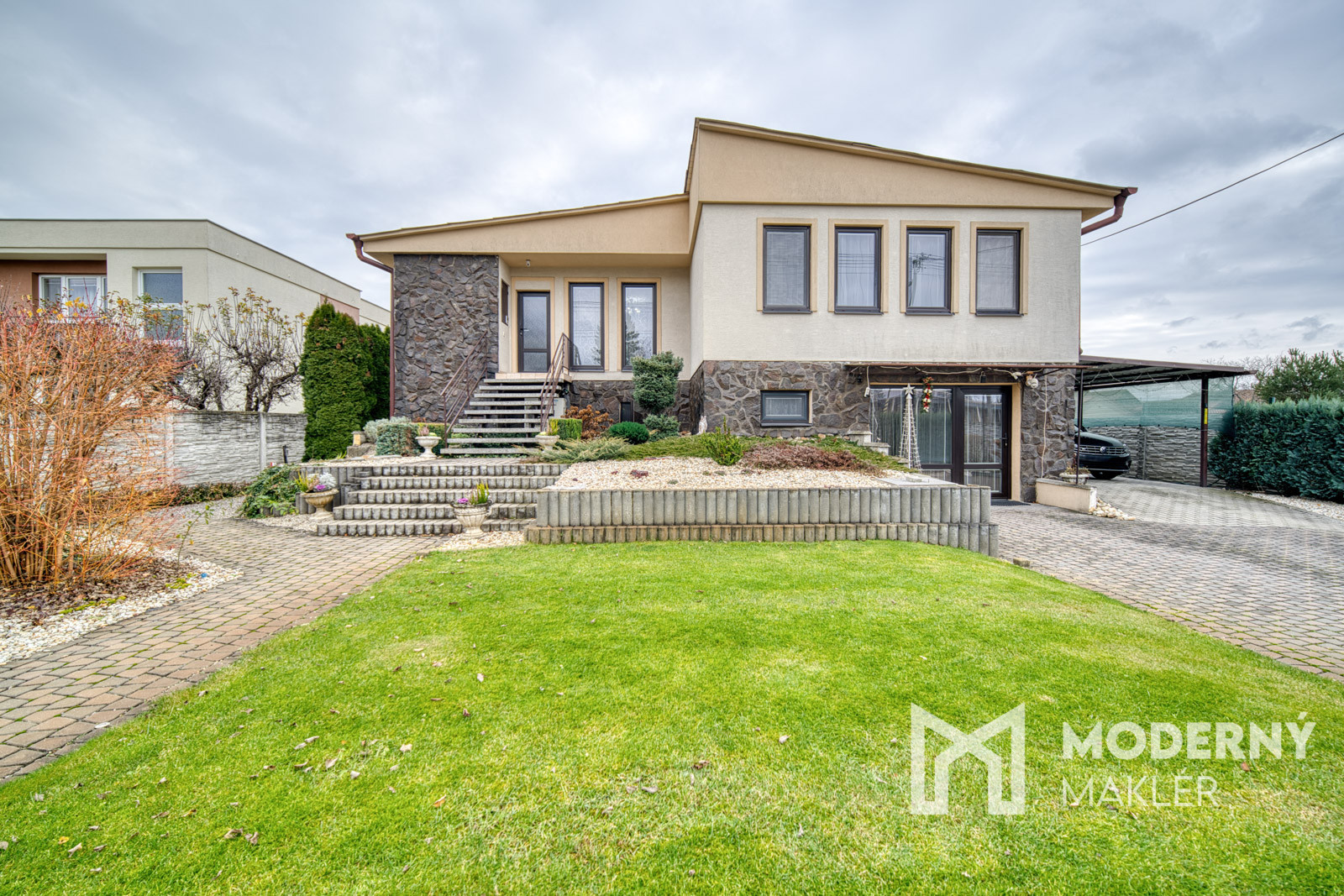 Dom disponuje rozsiahlu terasou, na ktorej je možné umiestniť bazén či jacuzzi. Súčasťou je altánok s krbom a pre milovníkov pestovania aj vyvýšené záhony. Okolie domu je upravené okrasnými drevinami, kvetmi a kvalitným trávnikom so zavlažovaním. Pri terase sa nachádza aj vonkajšia sprcha. V prednej časti pozemku je vybudovaná dlažba a priestranný prístrešok pre dve autá. Naproti domu, cez cestu, sa nachádza pozemok využívaný ako ovocný sad so zavlažovaním. V dome je nainštalovaná klimatizácia pre maximálny komfort bývania.