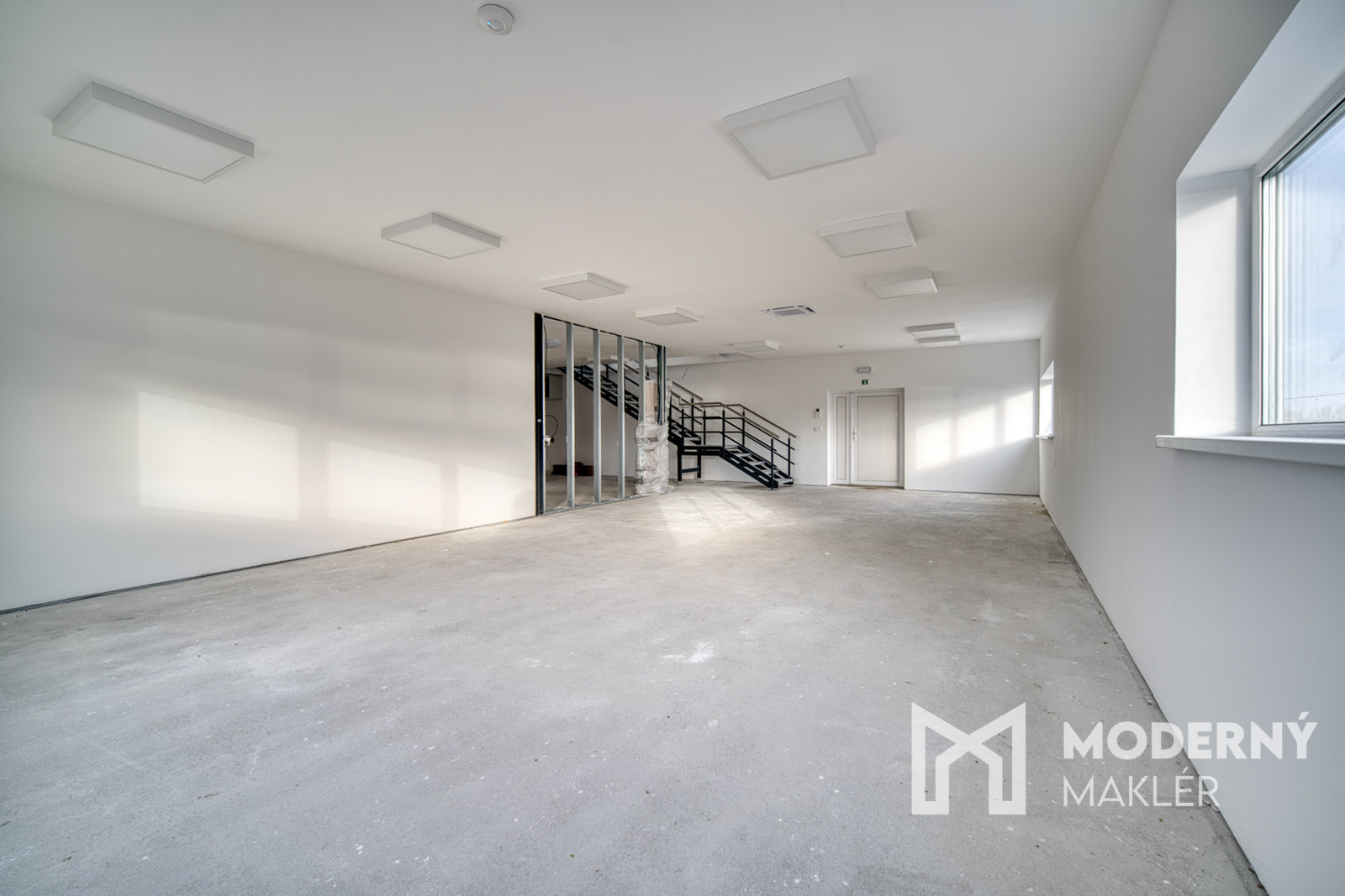 Moderný maklér ponúka na prenájom administratívny a skladový priestor v Stupave na Cementárenskej ulici. K priestoru prislúcha 12 parkovacích miest.