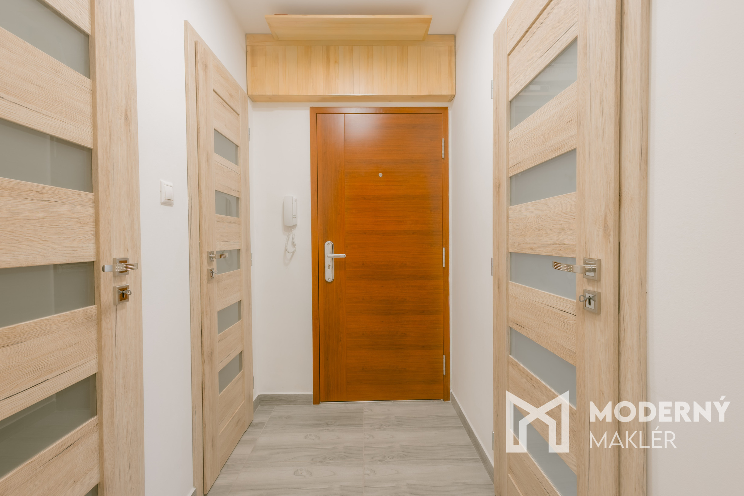 Byt sa skladá zo vstupnej chodby. Nachádza sa tu prakticky riešený priestor s dvoma špajzami, ktoré poskytujú dostatok úložného miesta. K dispozícii je moderná vybavená kúpeľňa so sprchovým kútom a samostatné WC pre väčšie pohodlie. Byt disponuje s novou kuchyňou a samostatnou priestrannou obývačkou s výstupom na zasklený balkón, ktorý rozširuje obytný priestor a poskytuje príjemné miesto na relaxáciu. V bytovej jednotke sa ďalej nachádza spálňa a svetlá detská izba.