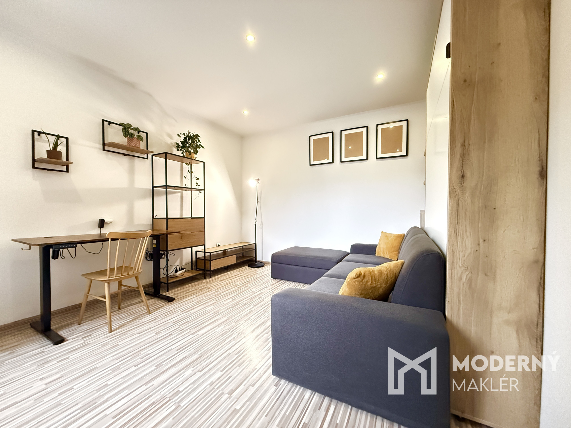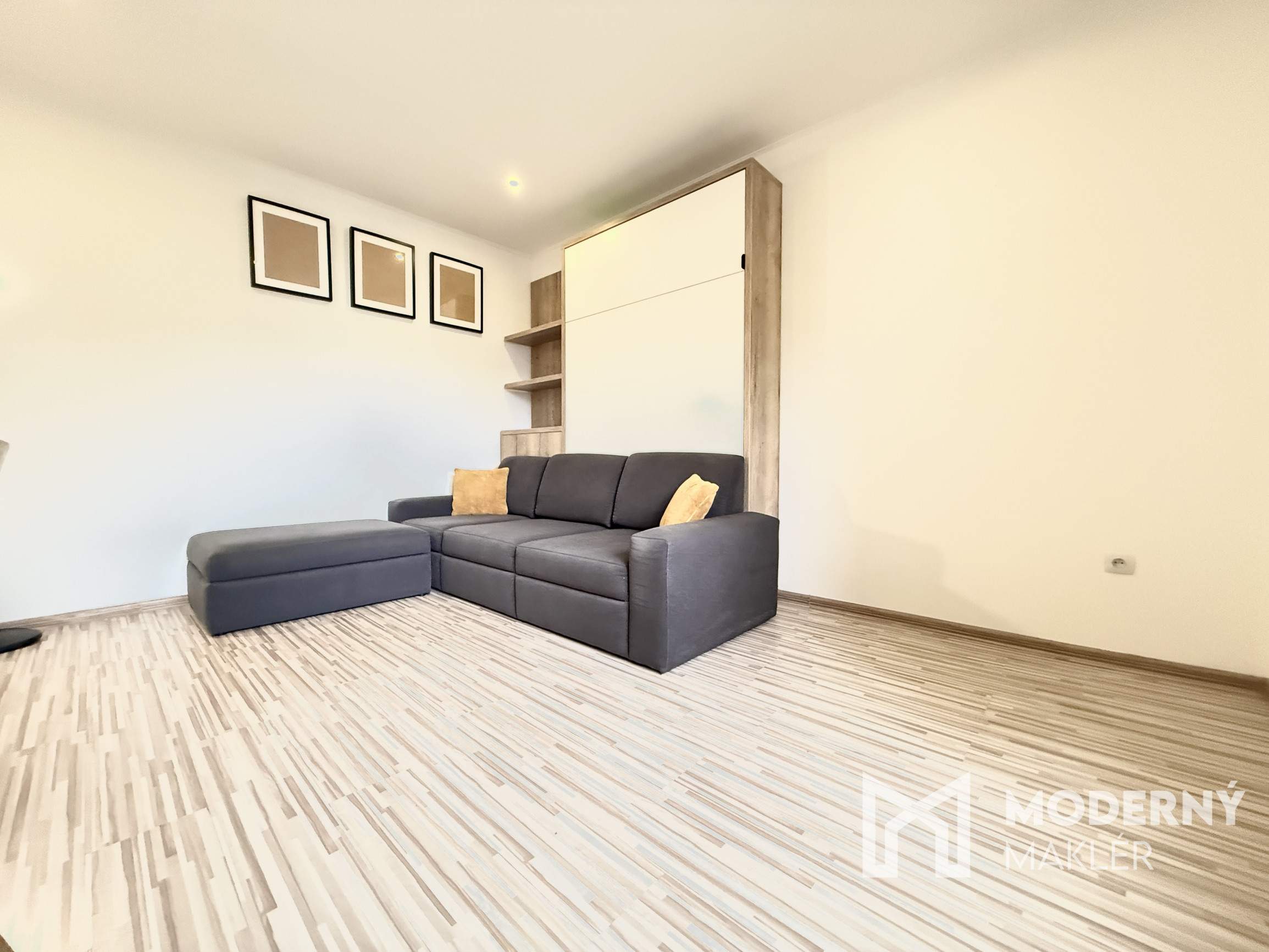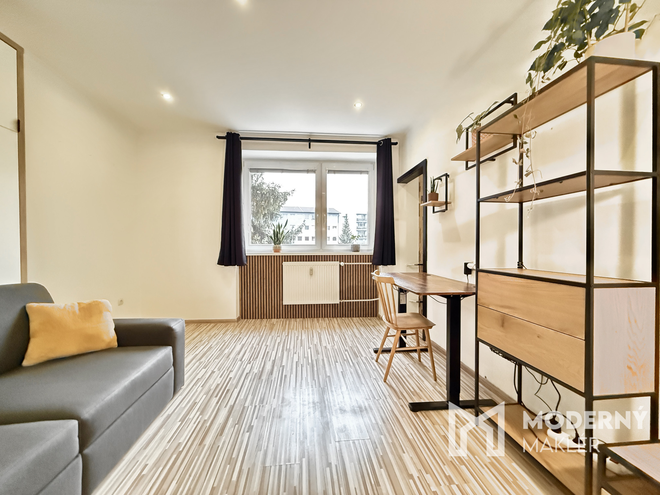 Moderný maklér ponúka na prenájom zariadený 1-izbový byt v Martine časti Podháj. Byt sa nachádza na 2/5 podlaží bytového domu s výťahom. Parkovanie je možné v okolí nehnuteľnosti.