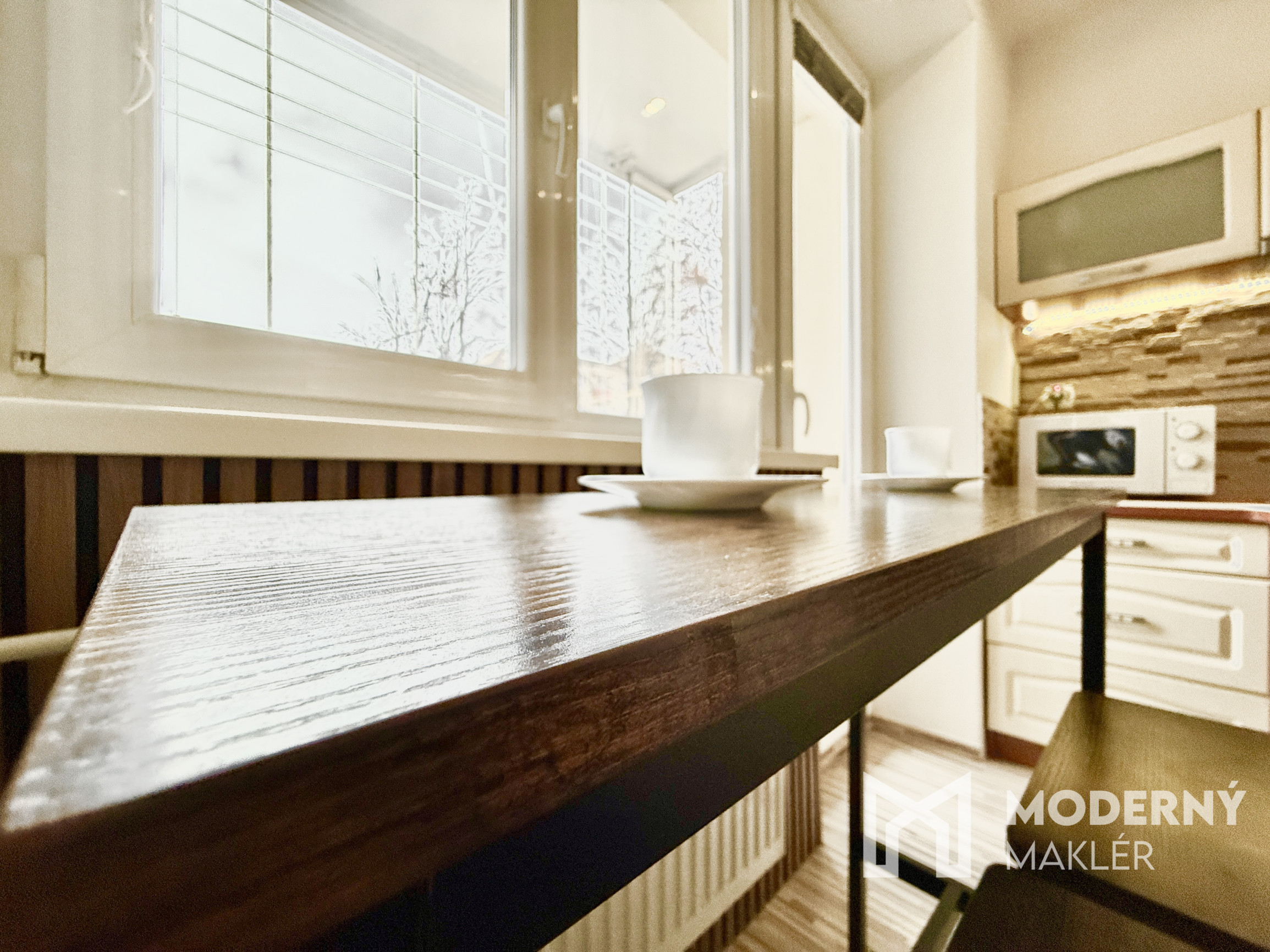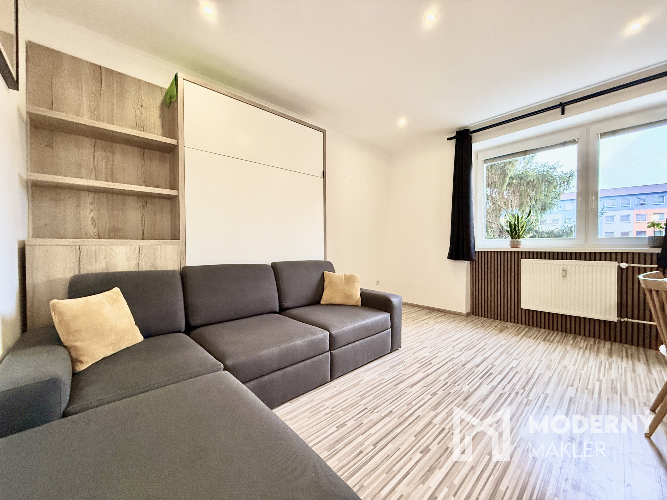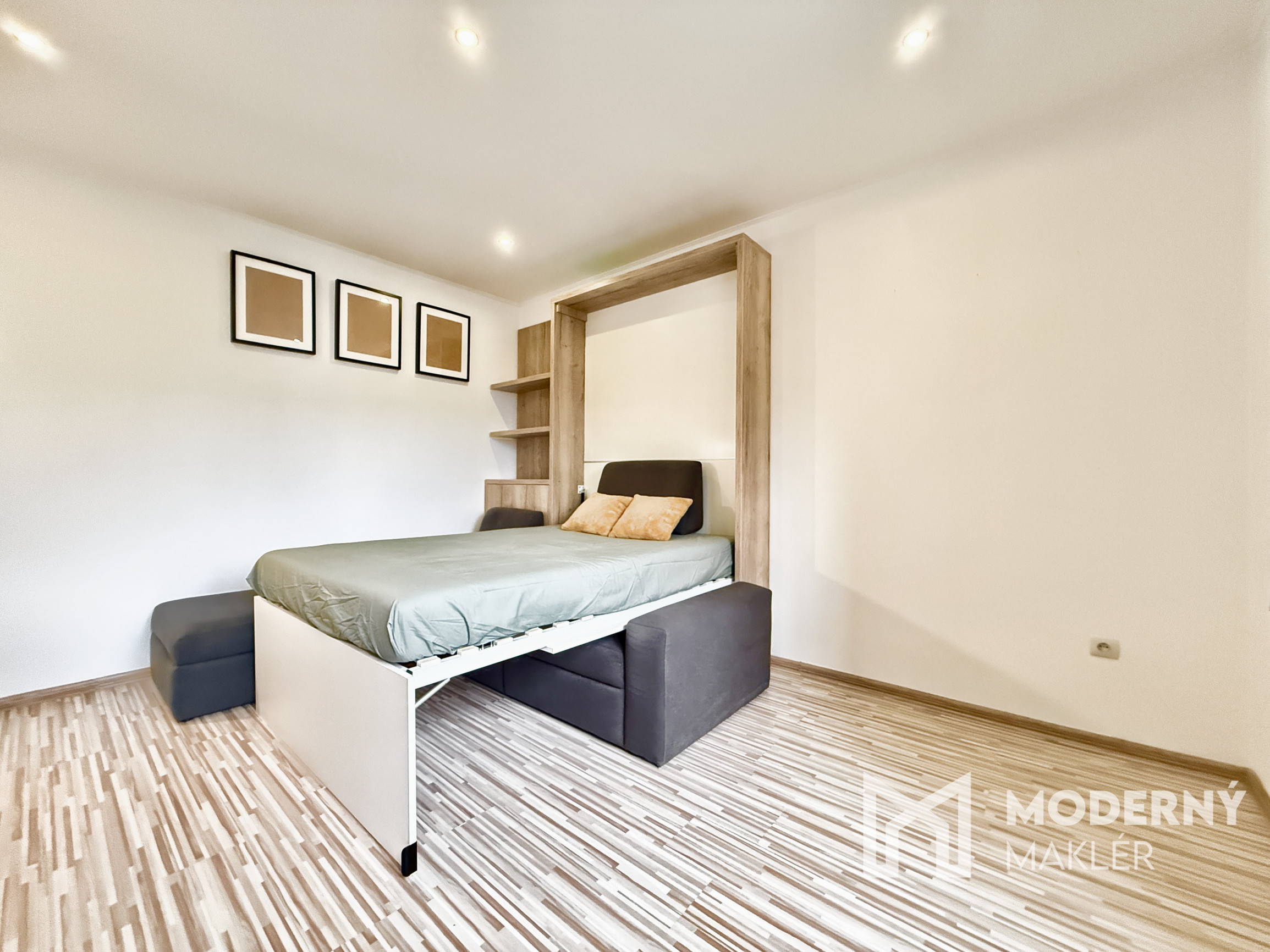 Moderný maklér ponúka na prenájom zariadený 1-izbový byt v Martine časti Podháj. Byt sa nachádza na 2/5 podlaží bytového domu s výťahom. Parkovanie je možné v okolí nehnuteľnosti.