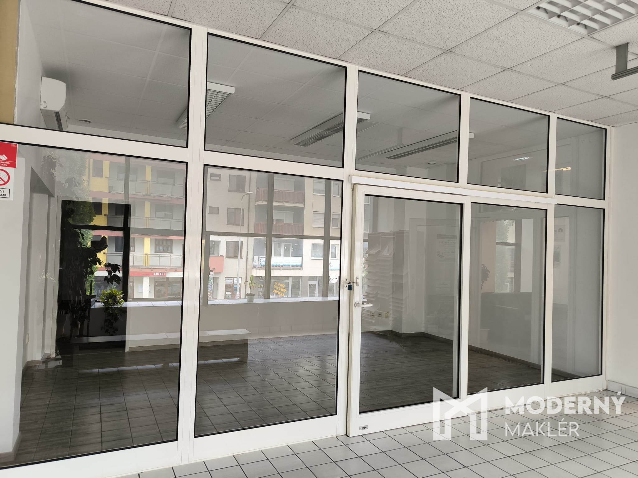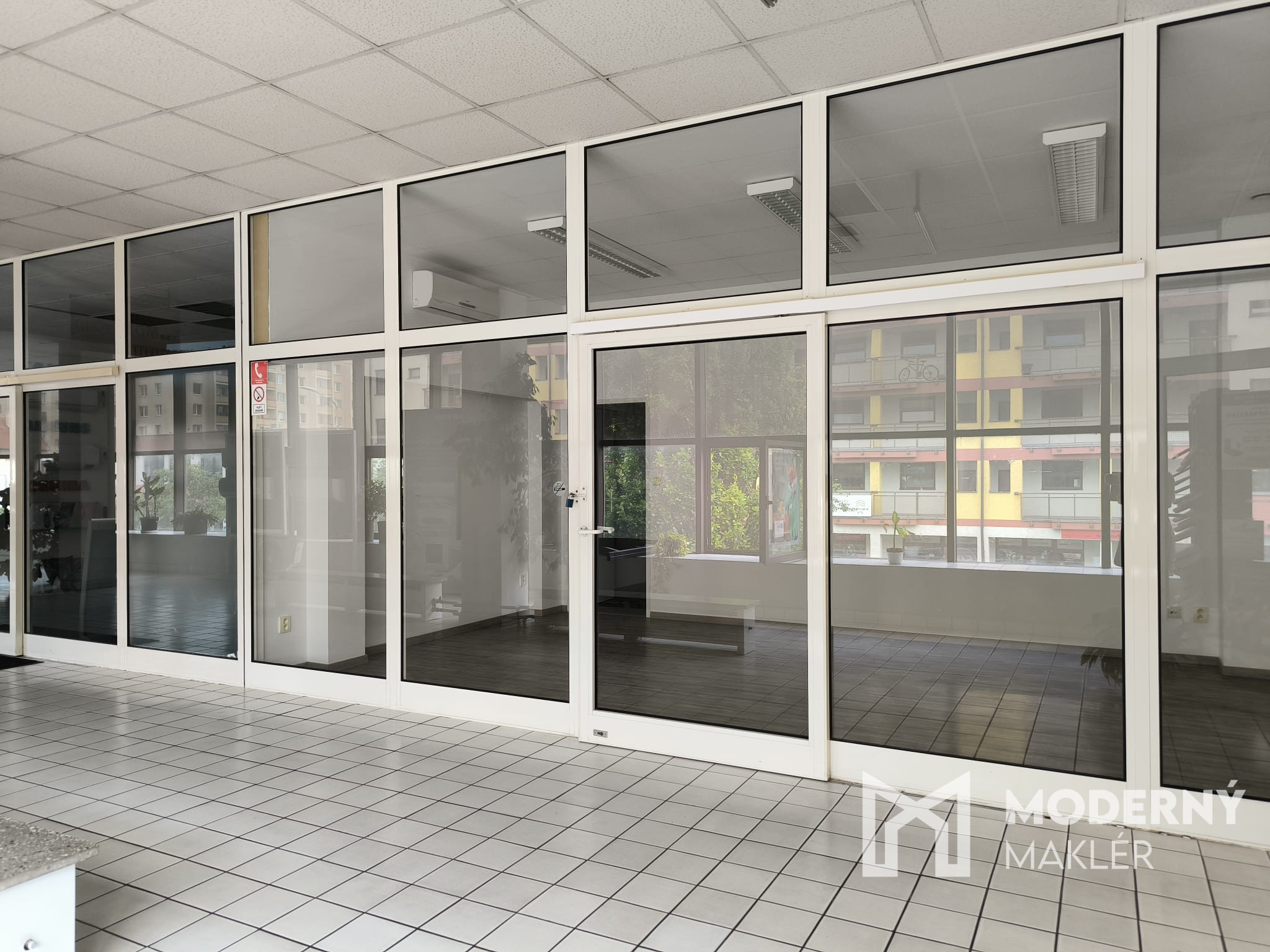 Priestory disponujú vinylovou podlahou na chodbe aj vo vnútri. Dostatok prirodzeného svetla zabezpečujú presklené steny v prednej časti. V zadnej miestnosti sa nachádza umývadlo a k priestorom prislúchajú tiež dámske a pánske toalety a kuchynka, ktoré nájdete na poschodí.