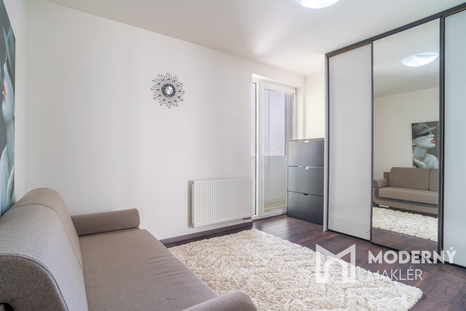 Byt ponúka premyslené a funkčné rozloženie. Vstupná chodba, samostatná toaleta, kúpeľňa so sprchovým kútom, priestranná spálňa a ďalšia izba, ktorú možno využiť ako detskú izbu, pracovňu alebo hosťovskú miestnosť. Dominantou bytu je otvorený obytný priestor, ktorý plynulo prepája kuchyňu na mieru, jedálenský kút a obývaciu časť. Z nej vedie priamy výstup na loggiu, ktorá poskytuje ideálne miesto na rannú kávu alebo večerný oddych.
