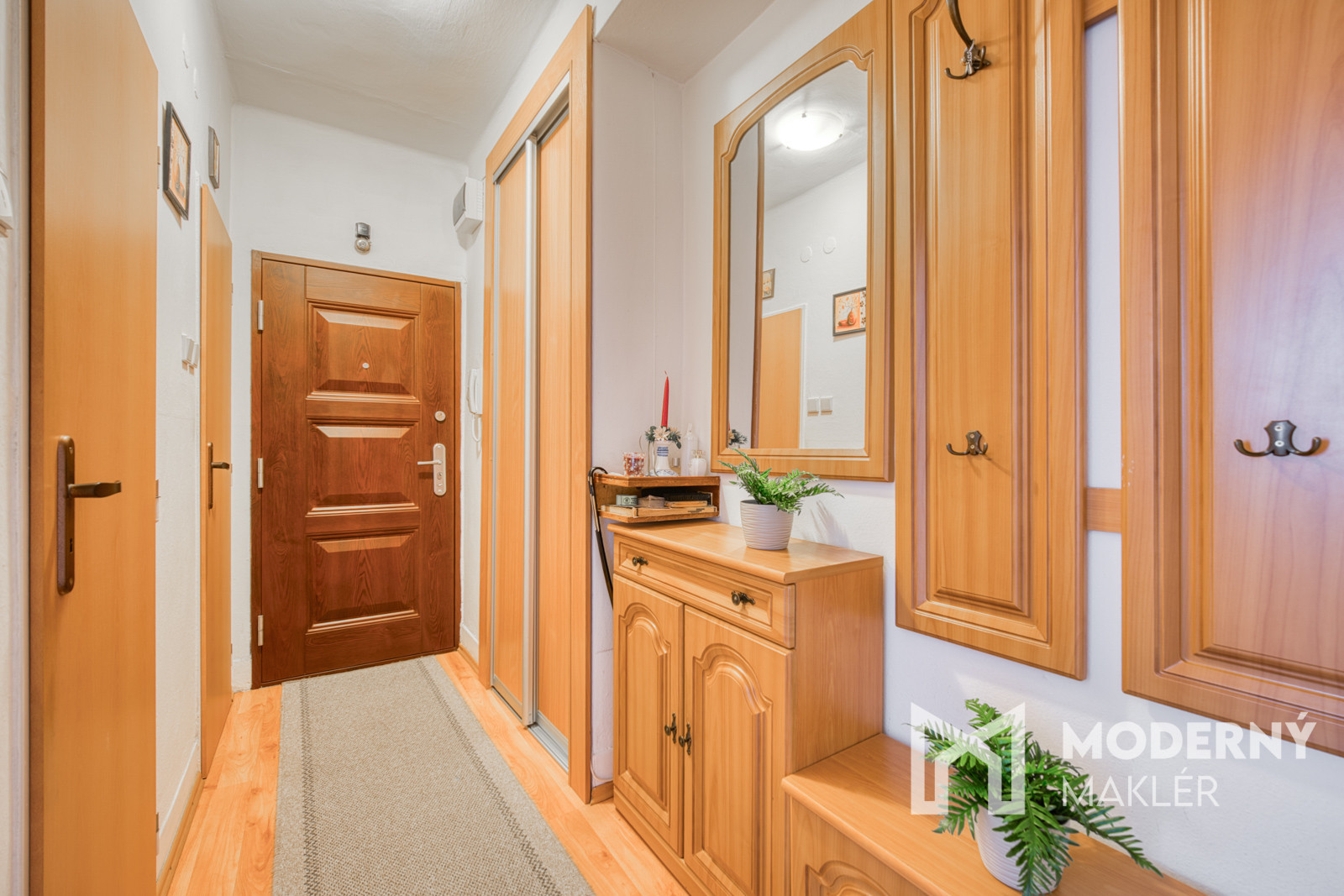 V chodbe vás privíta vstavaná skriňa, praktický botník a vešiak, aby vaše vstupy a odchody boli vždy elegantne upravené. Obývacia izba sa pýši novou modernou rohovou sedačkou, novým nábytkom a priamym vstupom na balkón, kde môžete ráno začať deň s kávou alebo večer relaxovať pri západe slnka. Kúpeľňa je vybavená práčkou, skrinkou pod umývadlo, sprchovým kútom a praktickou odkladacou skrinkou, takže všetko máte po ruke.